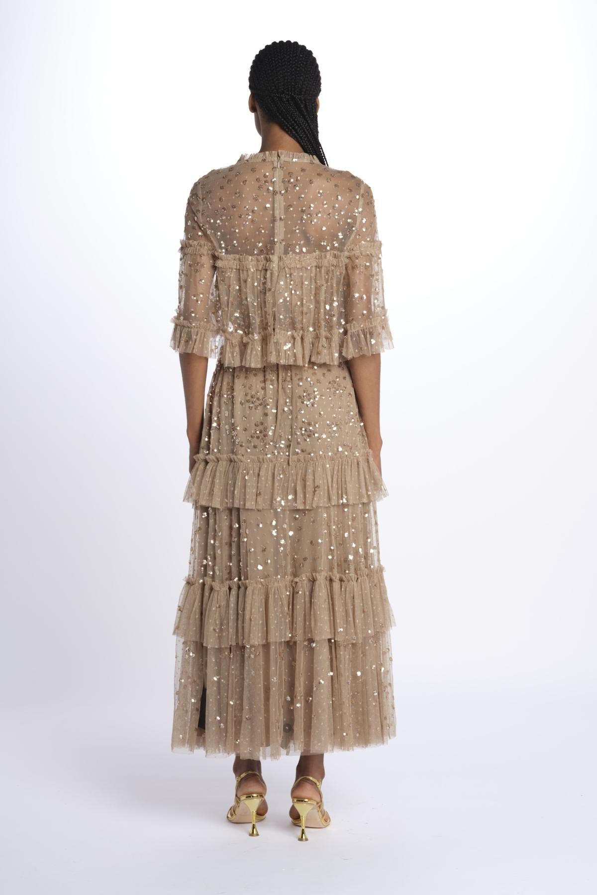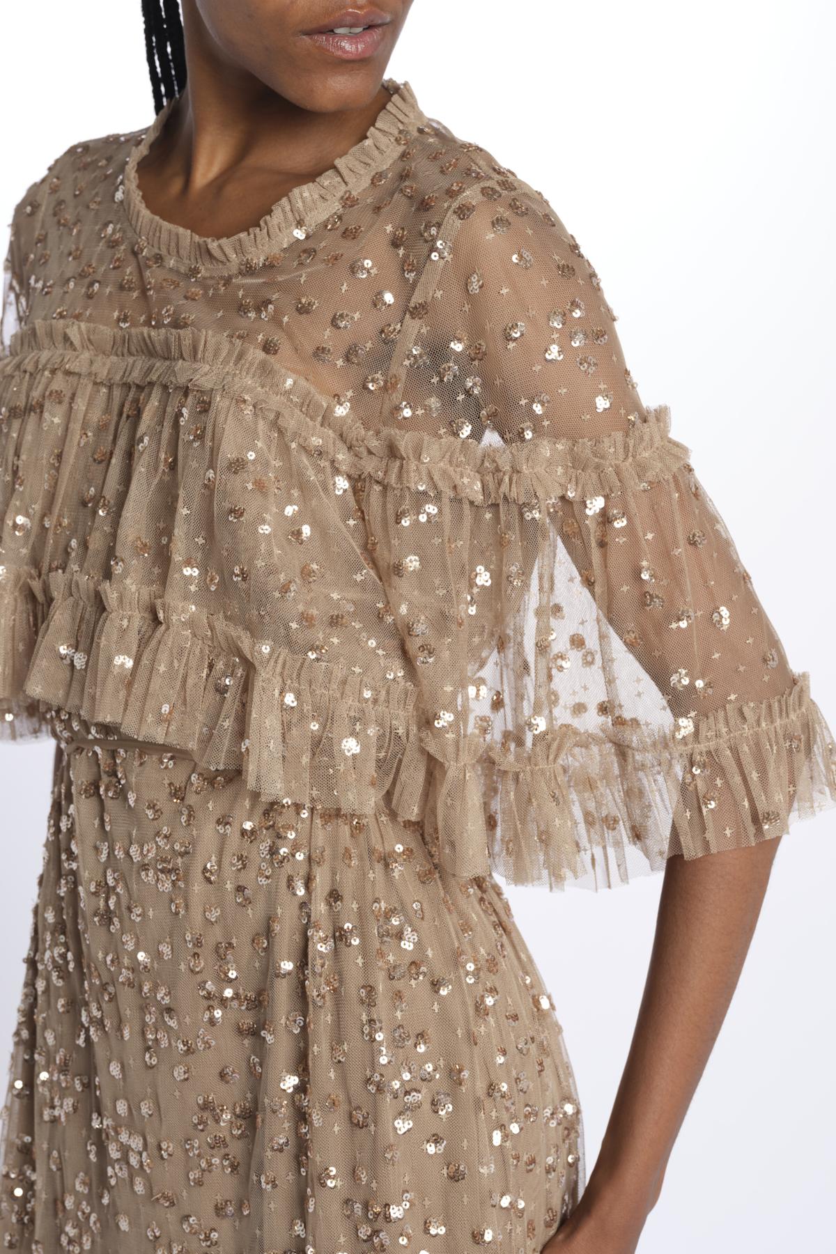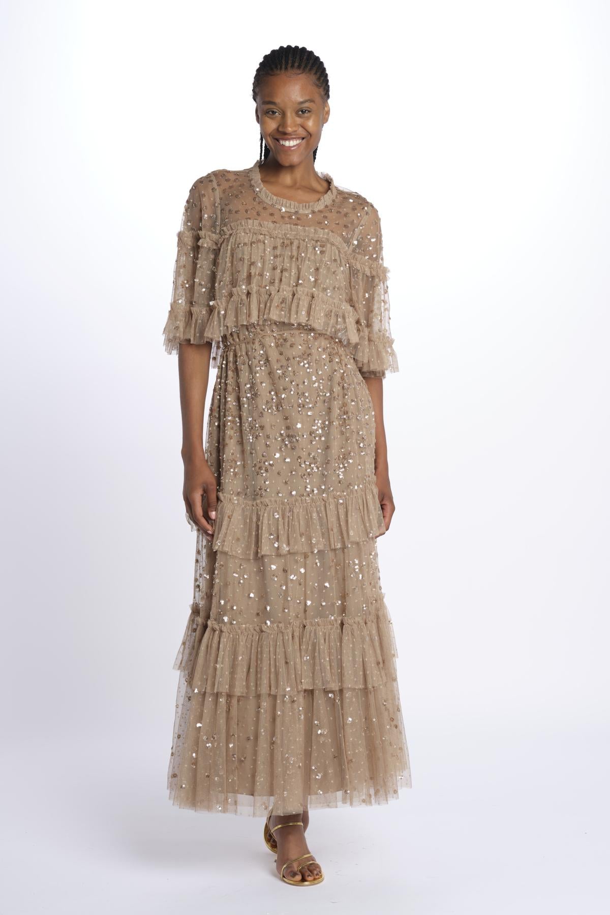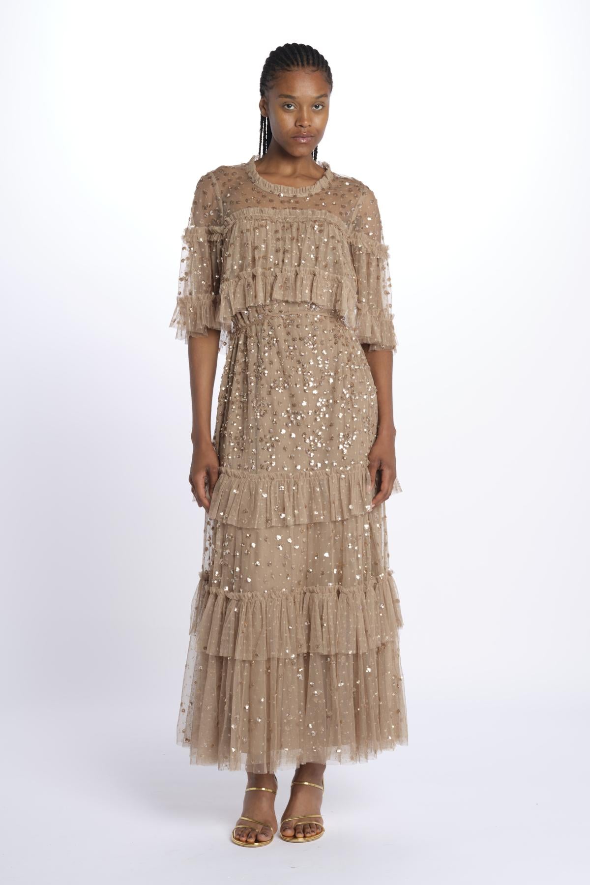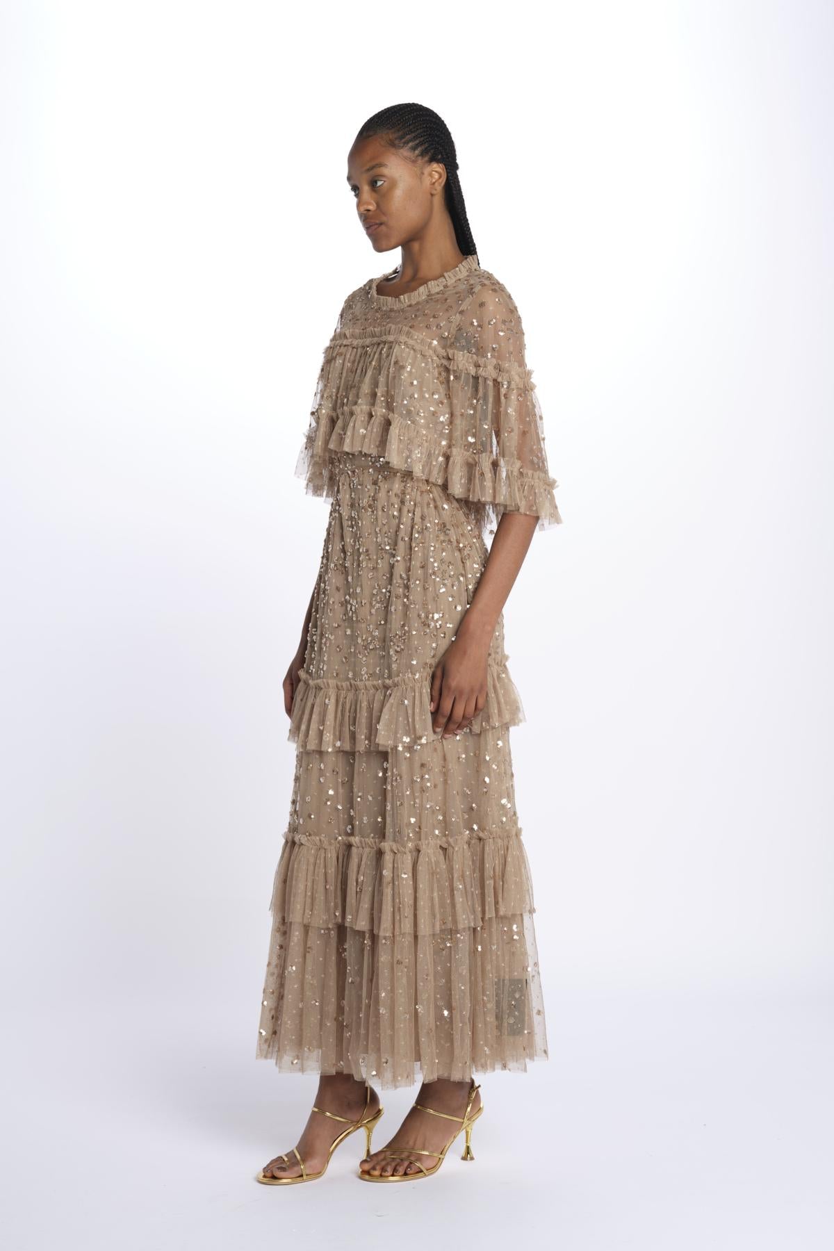 LEILA DOT TIERED by eedle & tread. The model is 174 cm tall and wears a size 10. Composition: 100% polyester.