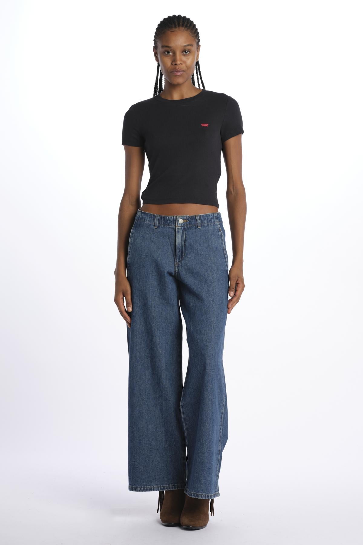 ESSENTIAL SPORTY T-SHIRT by levi's. The model is 174 cm tall and wears a size S. Composition: 96% cotton, 4% elastane.