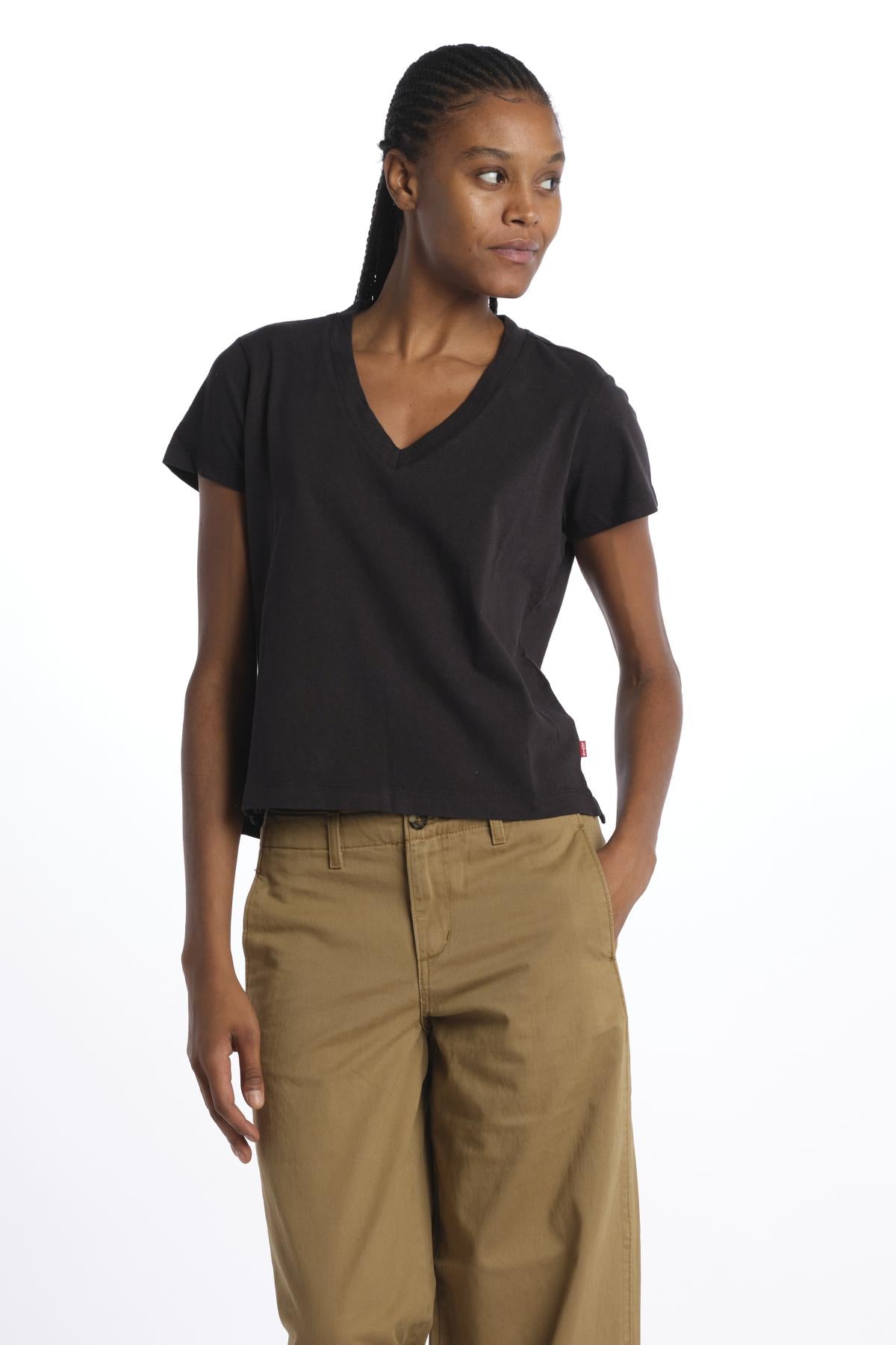 BOXY VNECK TEE by levi's. The model is 174 cm tall and wears a size S. Composition: 100% cotton.