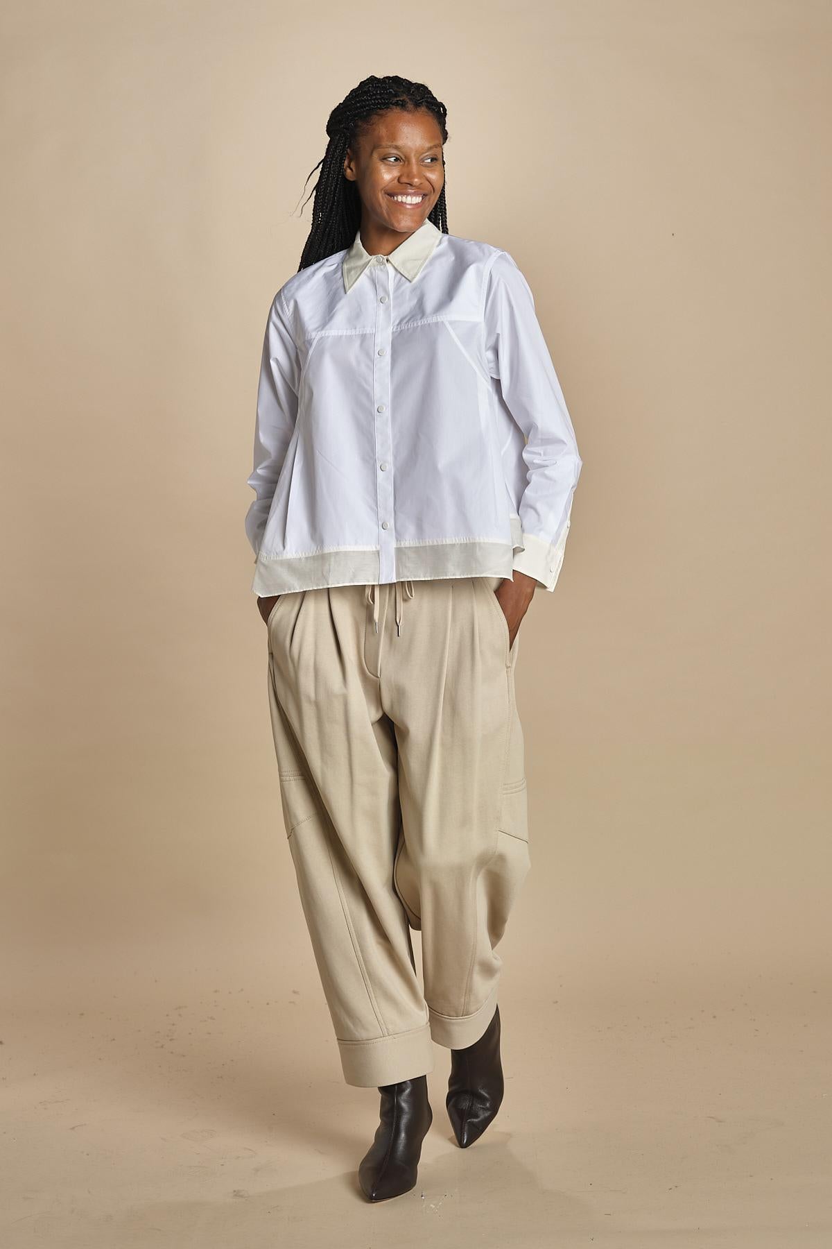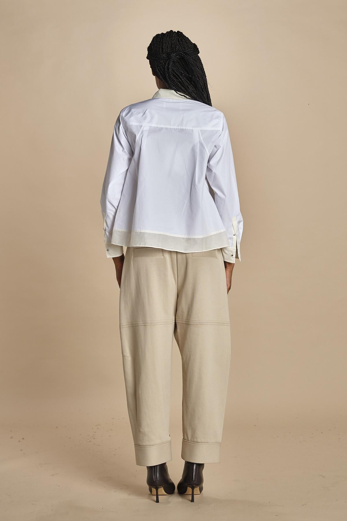 camicia con bordi a contrasto by phillip lim. La modella è alta 174 cm e indossa una taglia 2. Composizione: 70%cotone, 30% poliestere.