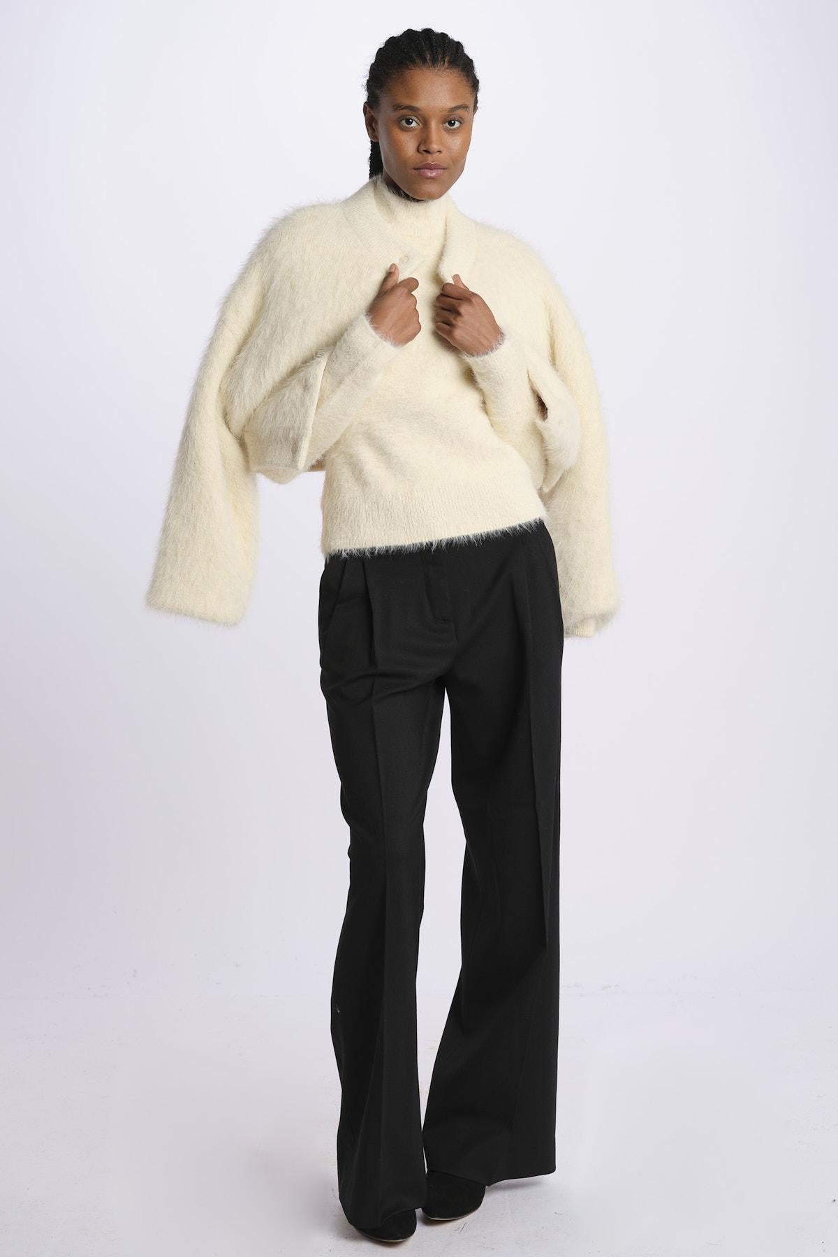 Sweater by Lvir with back neckline. The model is 174 cm tall and wears size S. Composition: 100% Nylon.