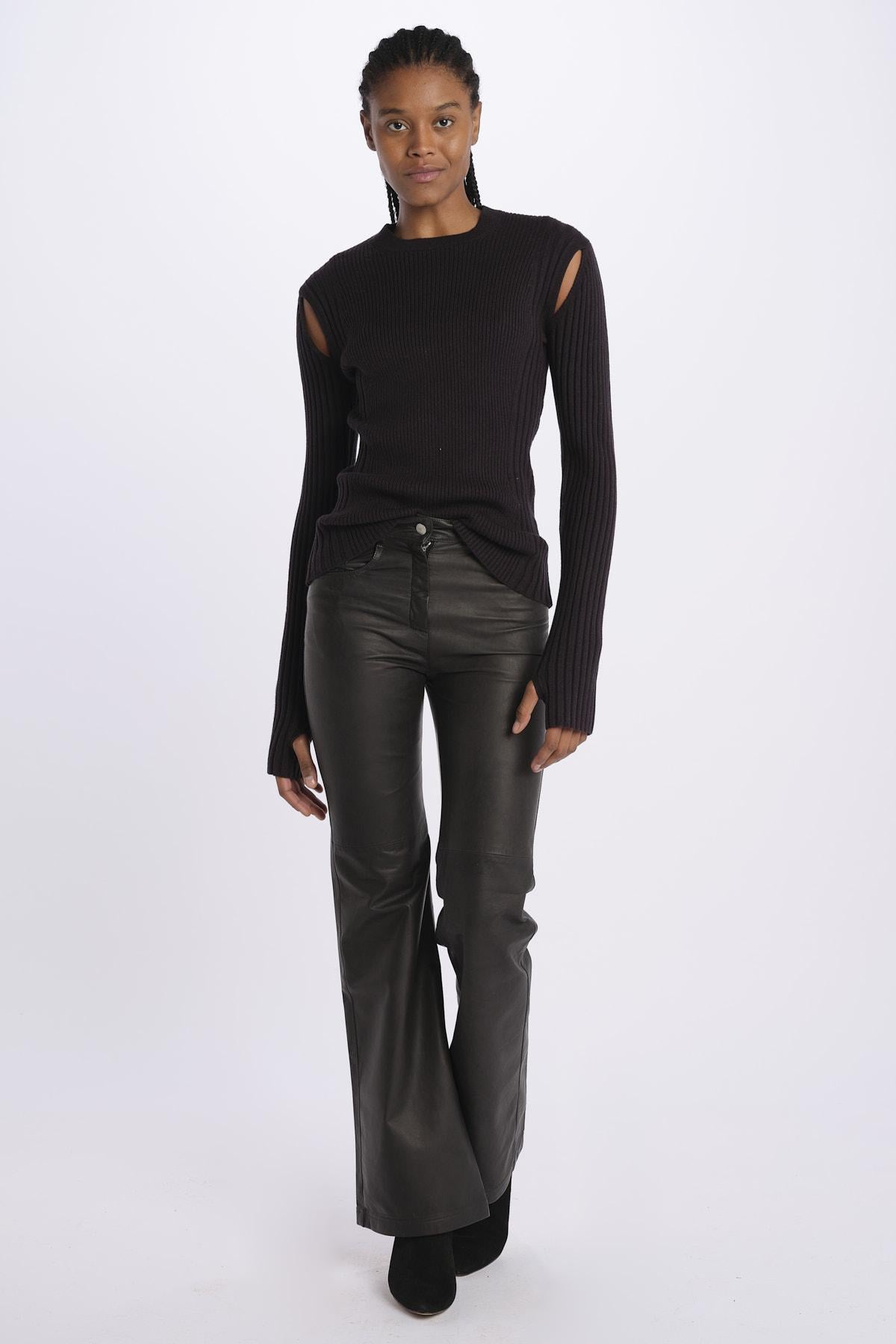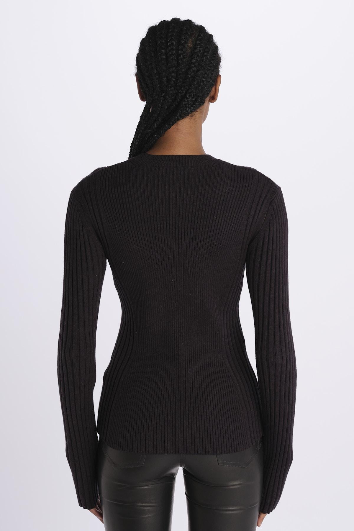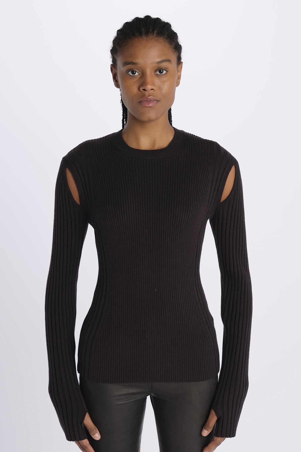 Sweater by Lvir crew neck open on the shoulders. The model is 174 cm tall and wears size S. Composition: 50% Acrylic, 30% Wool, 20% Polyester.