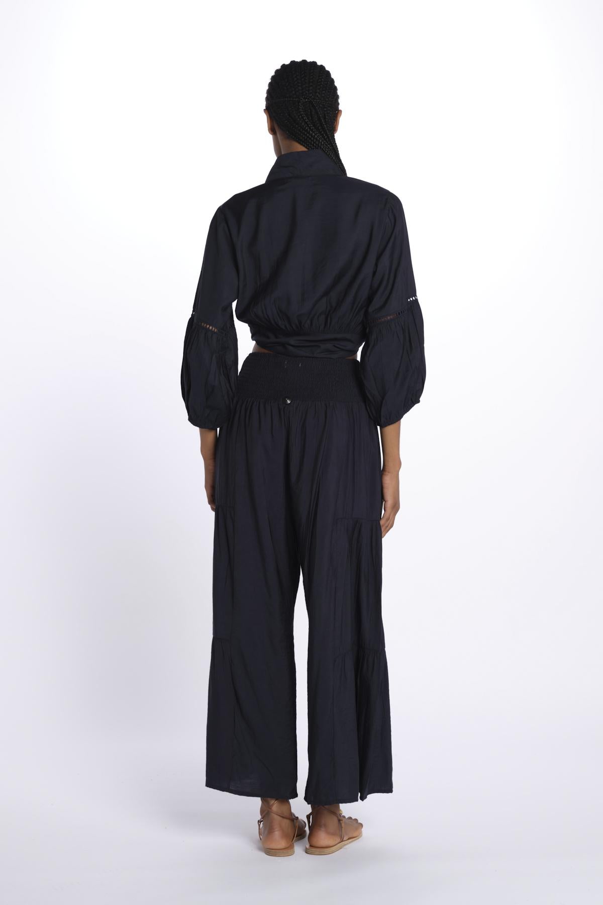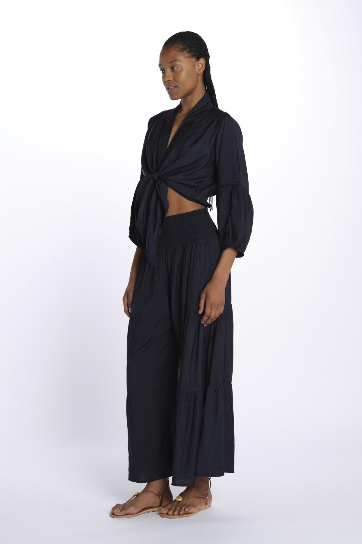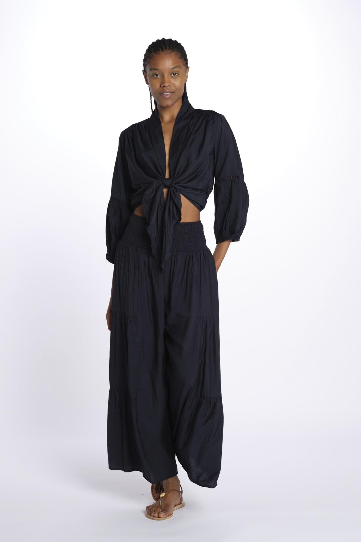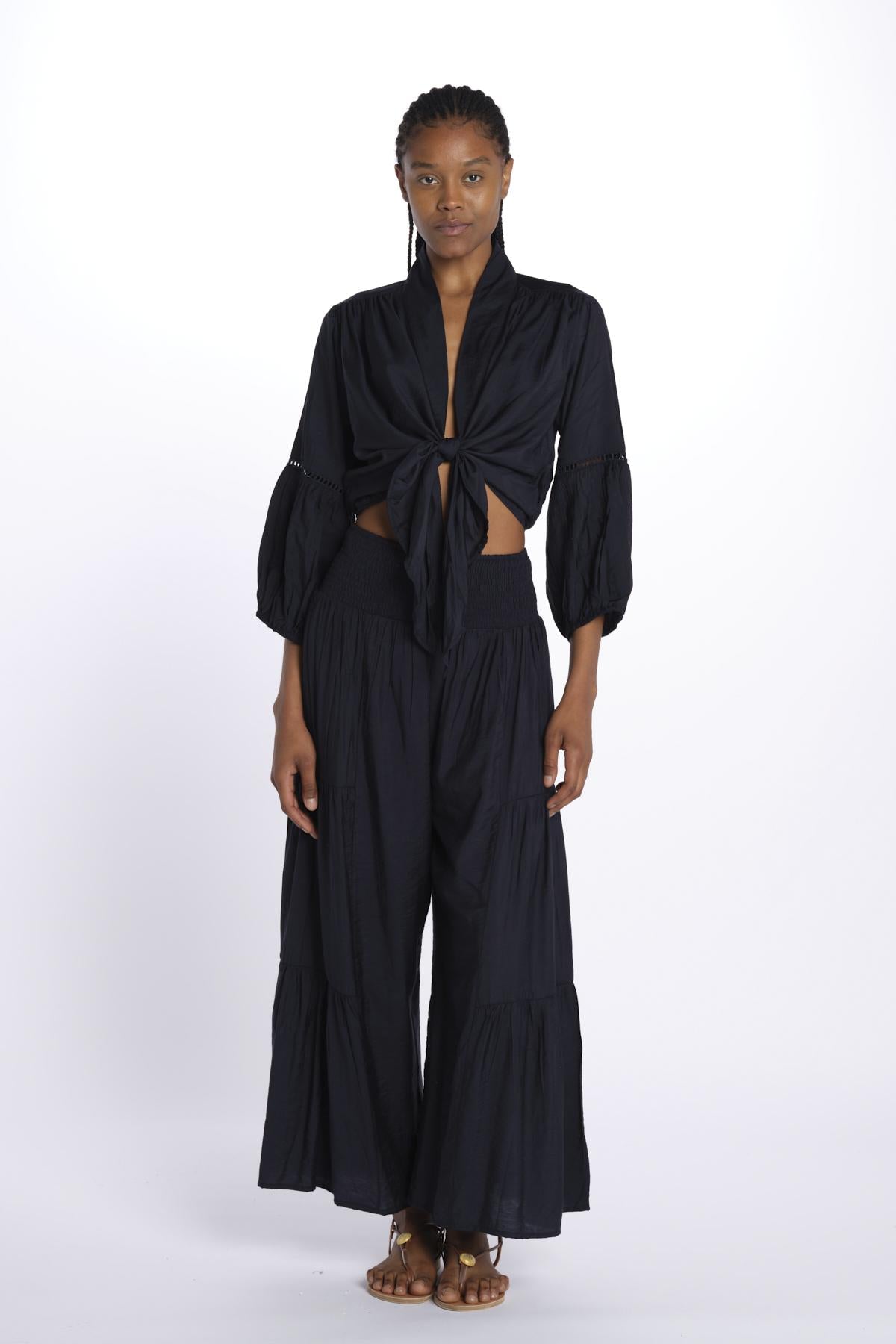 MARIA top with knot and long sleeves by laraethnics. The model is 174 cm tall and wears a ONE size. Composition: 82% viscose, 18% nylon.
