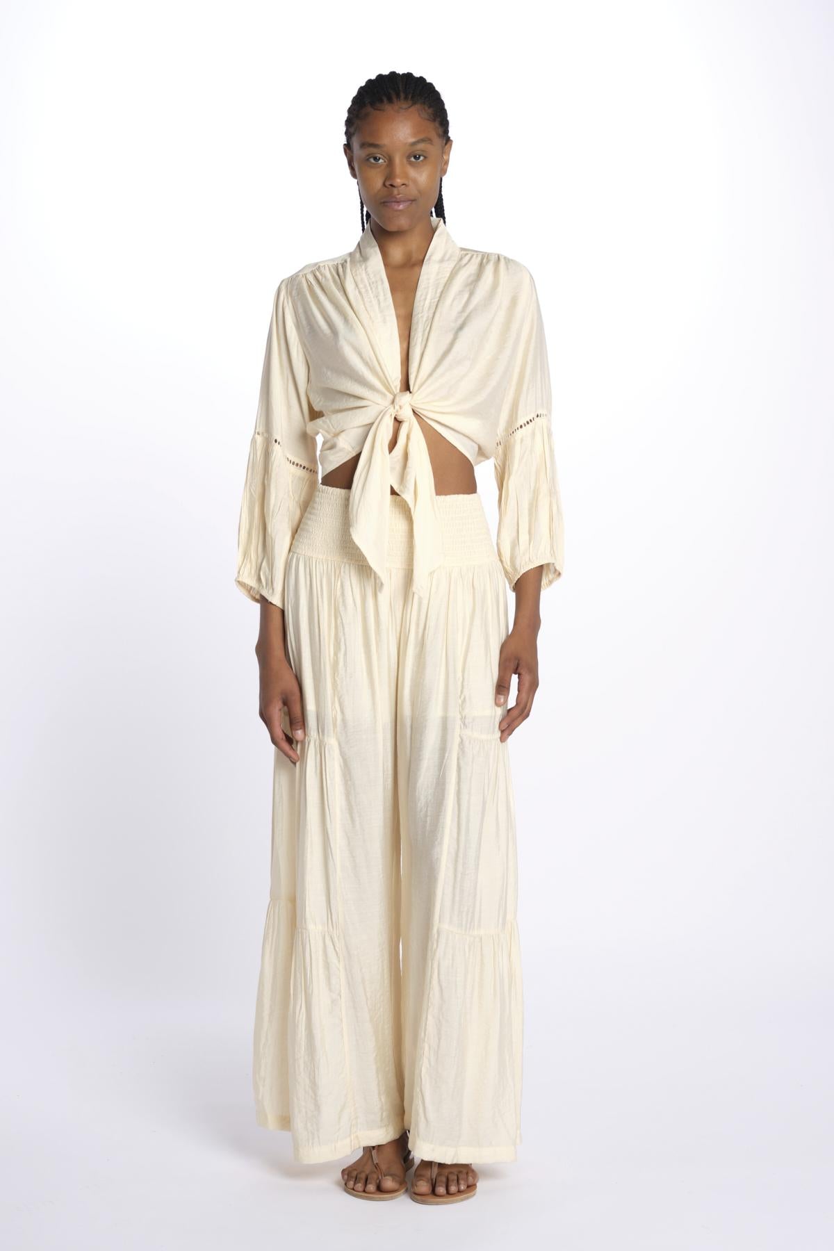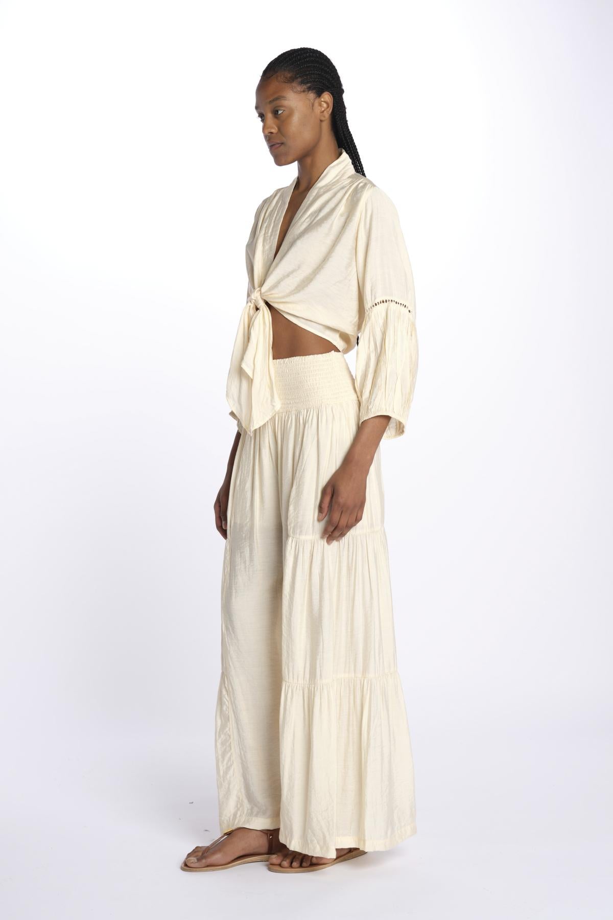 MARIA top con nodo e maniche lunghe MARIA SAND laraethnics