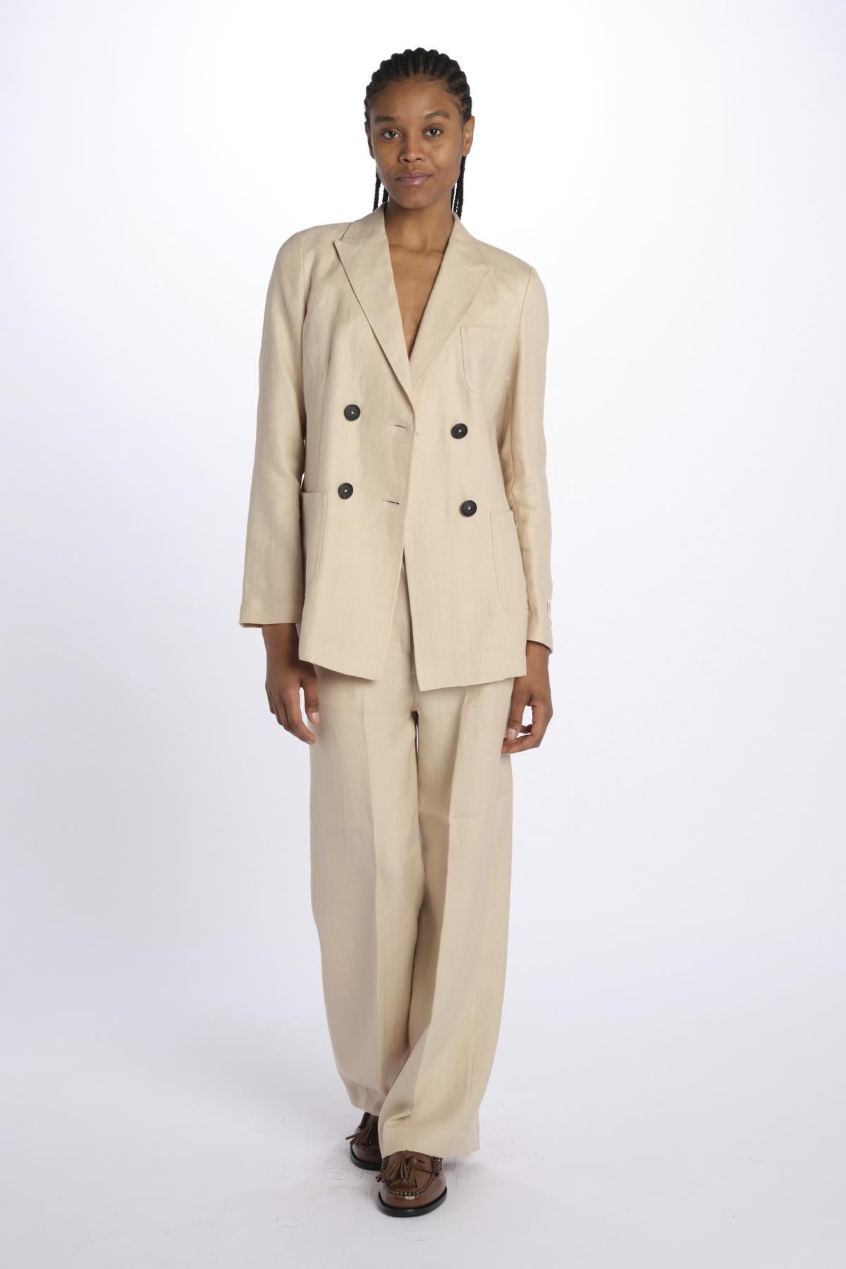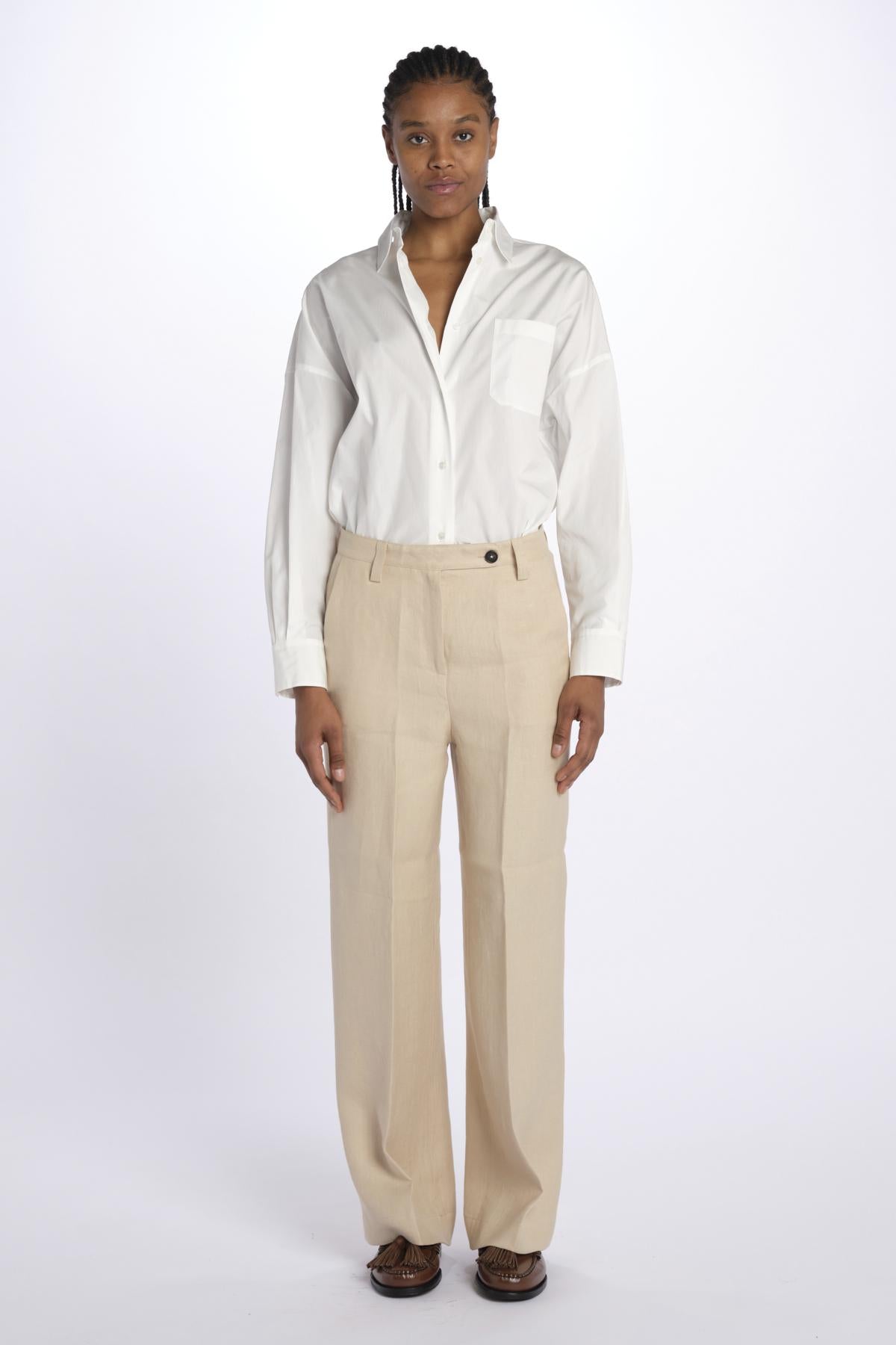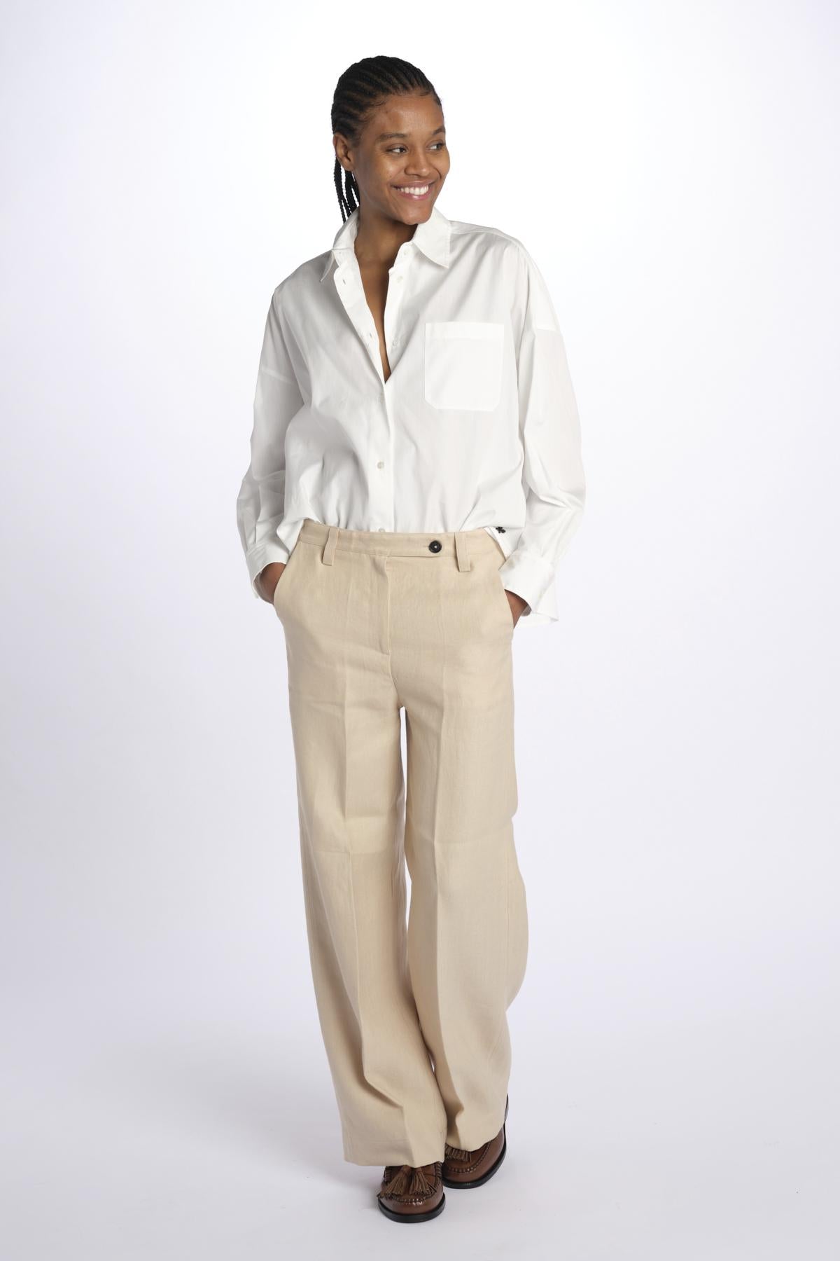 Massimo Alba herringbone linen trousers. The model is 174 cm tall and wears a size 38. Composition: 100% linen.