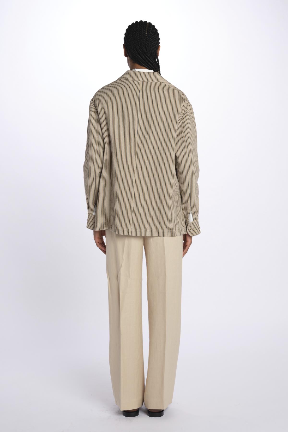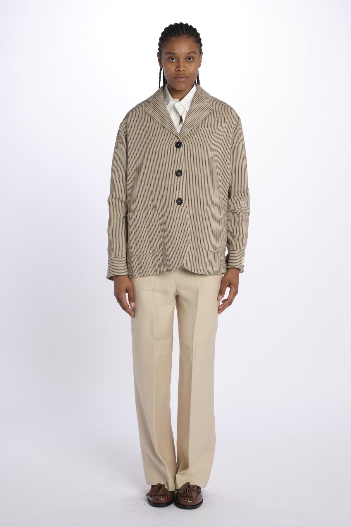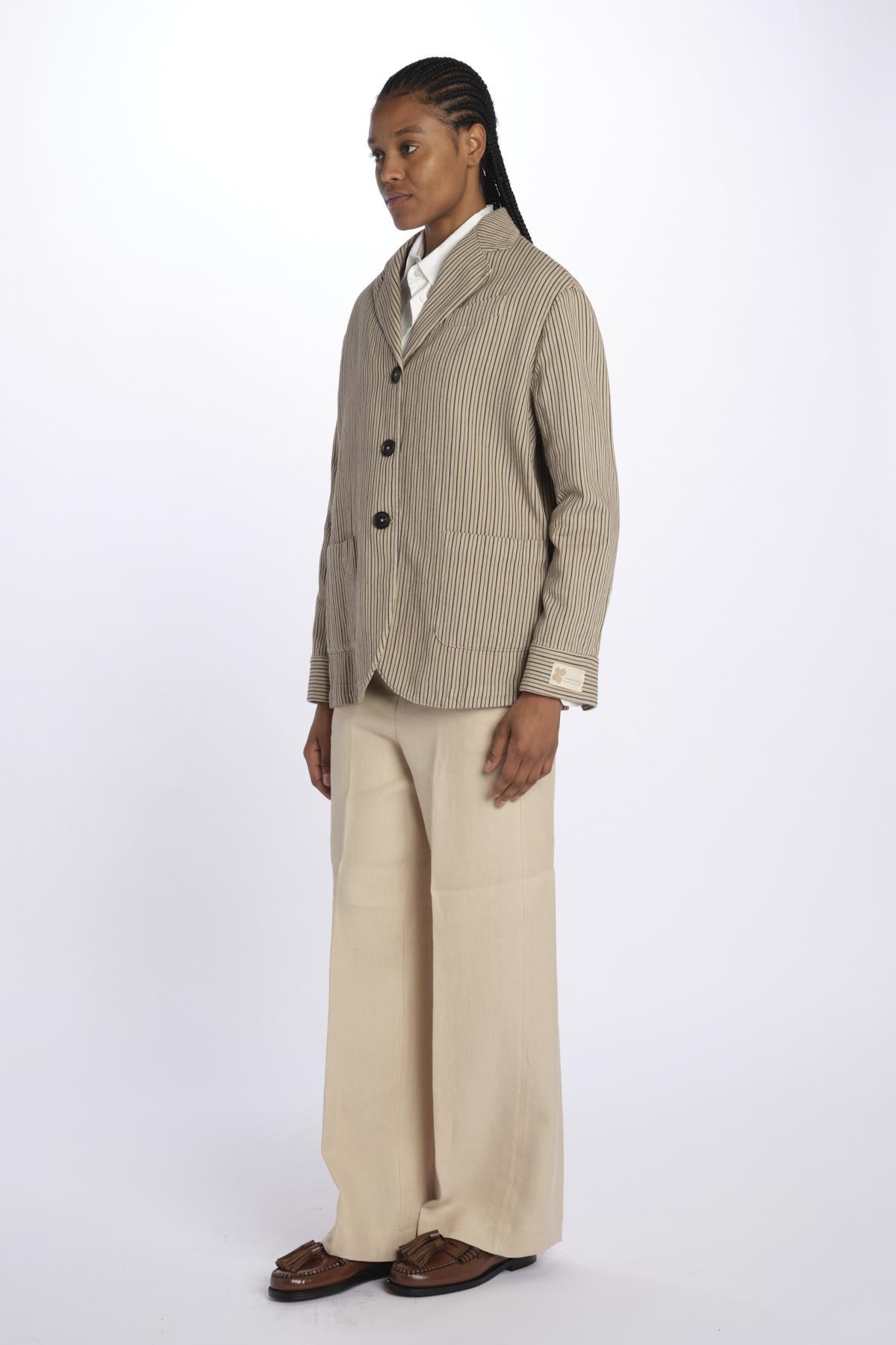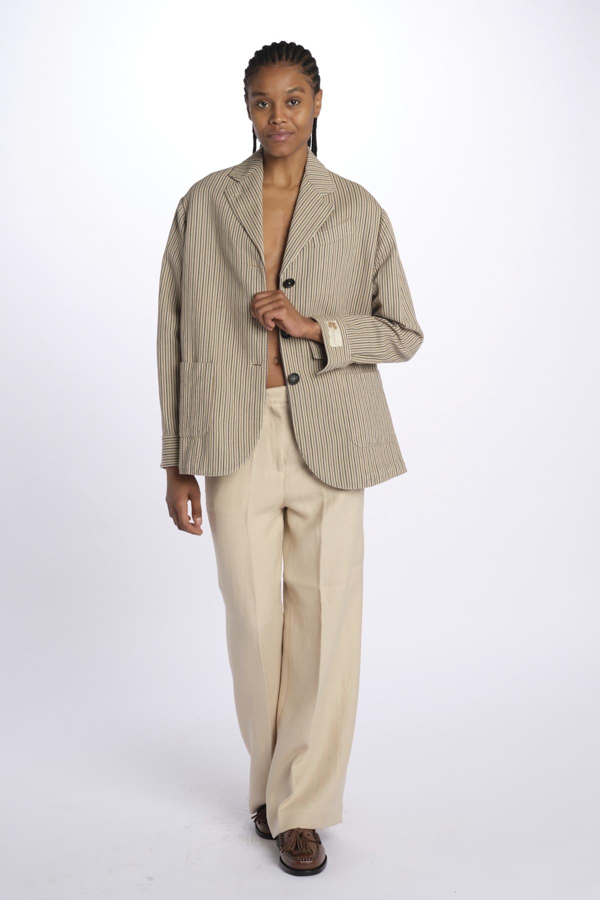 Peacot MILLY stripes Massimo Alba. The model is 174 cm tall and wears an XS. Composition: 68% cotton, 32% linen.