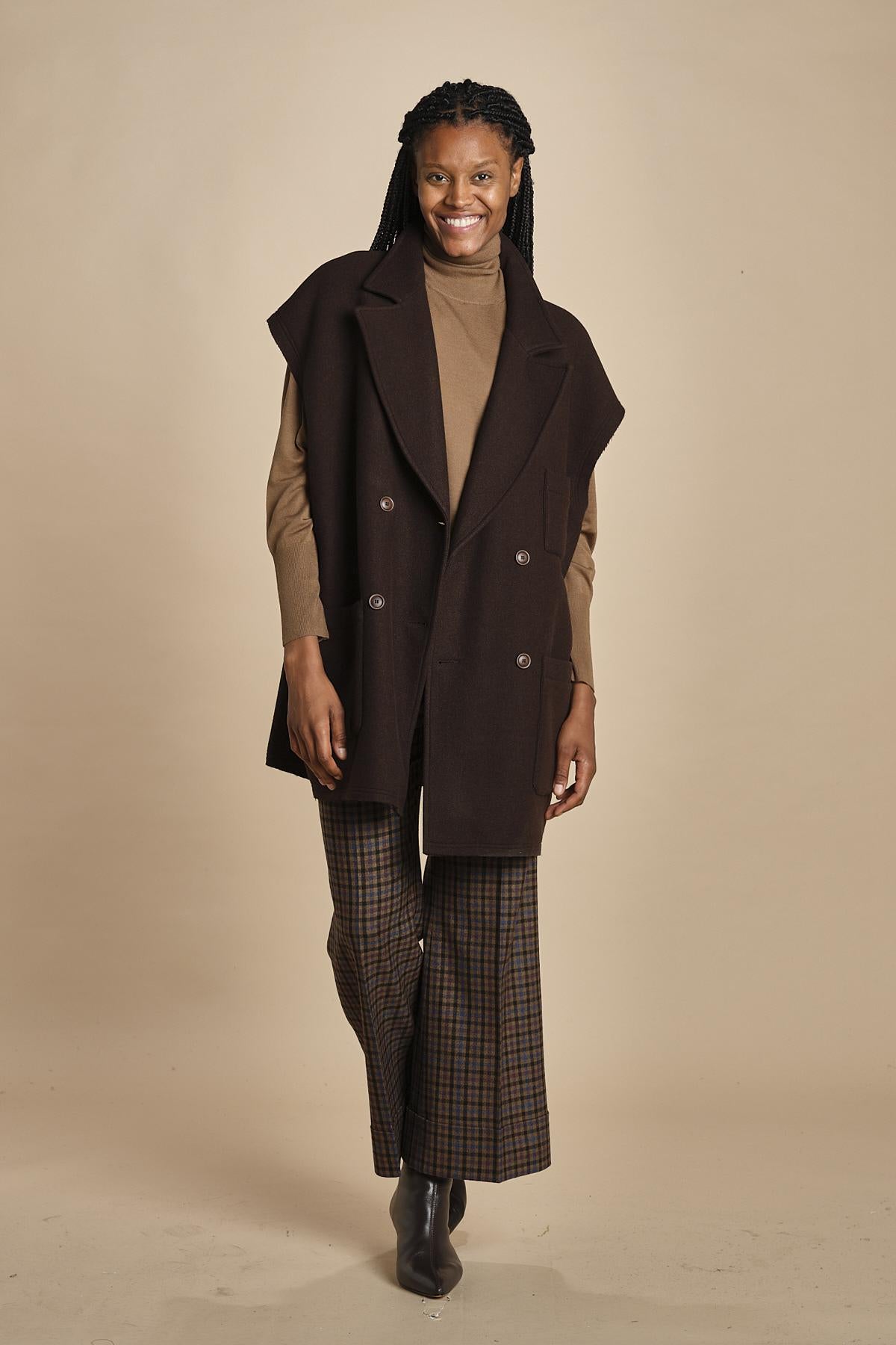 pantalone cropped a quadretti con risvolto by quelledue. La modella è alta 174 cm e indossa una taglia 40.