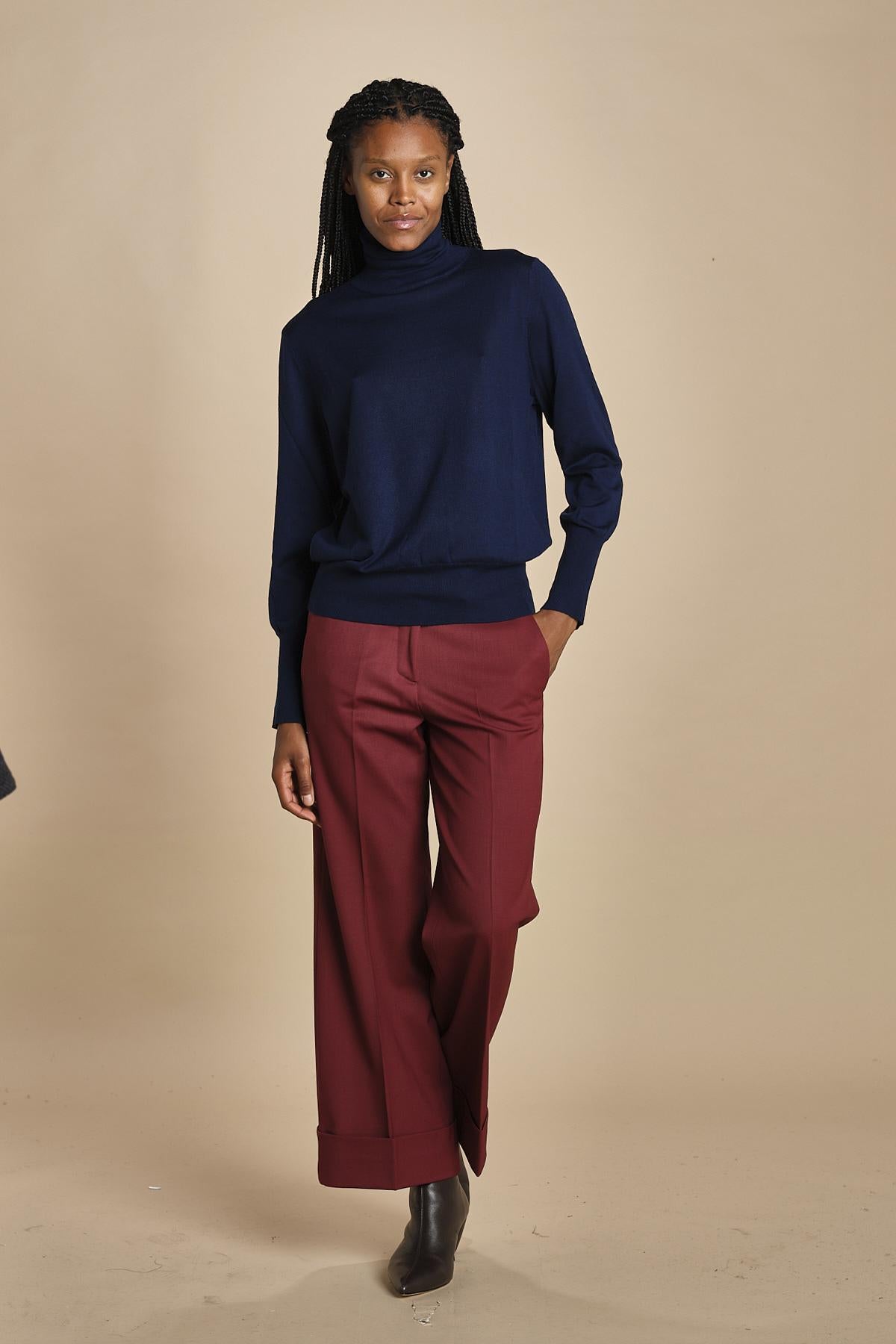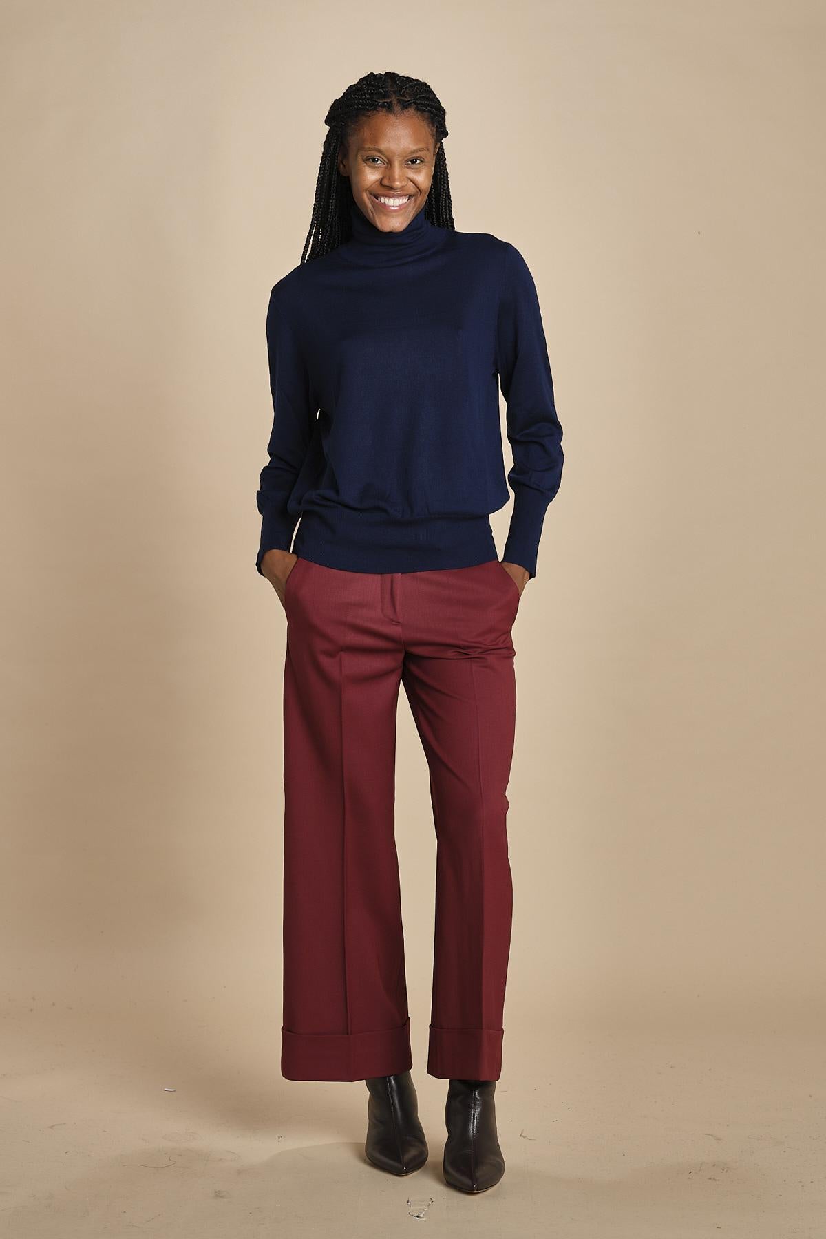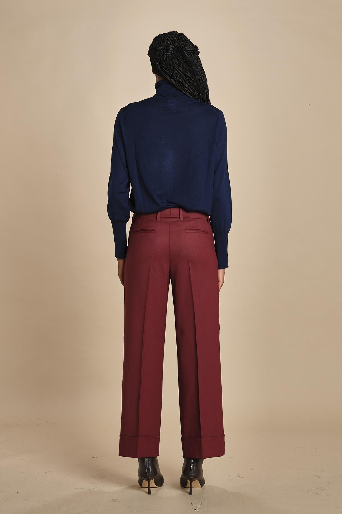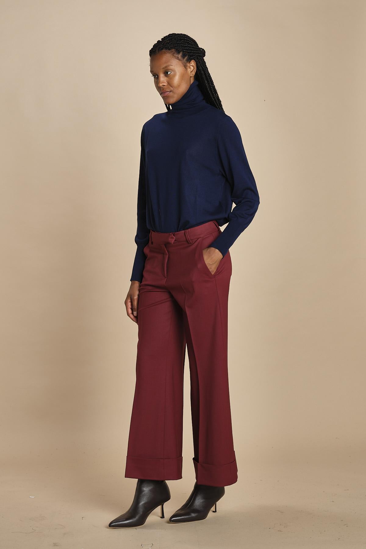 pantalone cropped con risvolto in gabardina by quelledue. La modella è alta 174 cm e indossa una taglia 40.