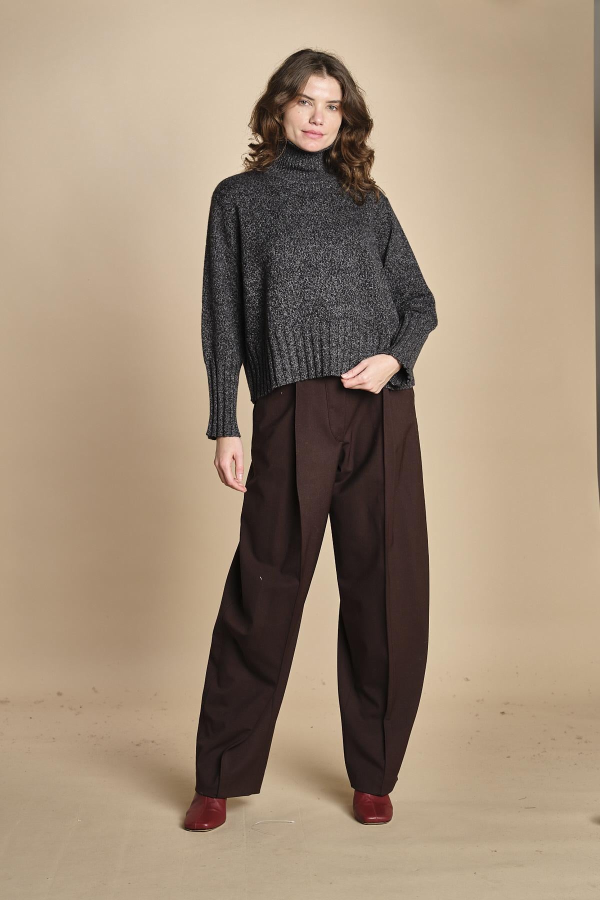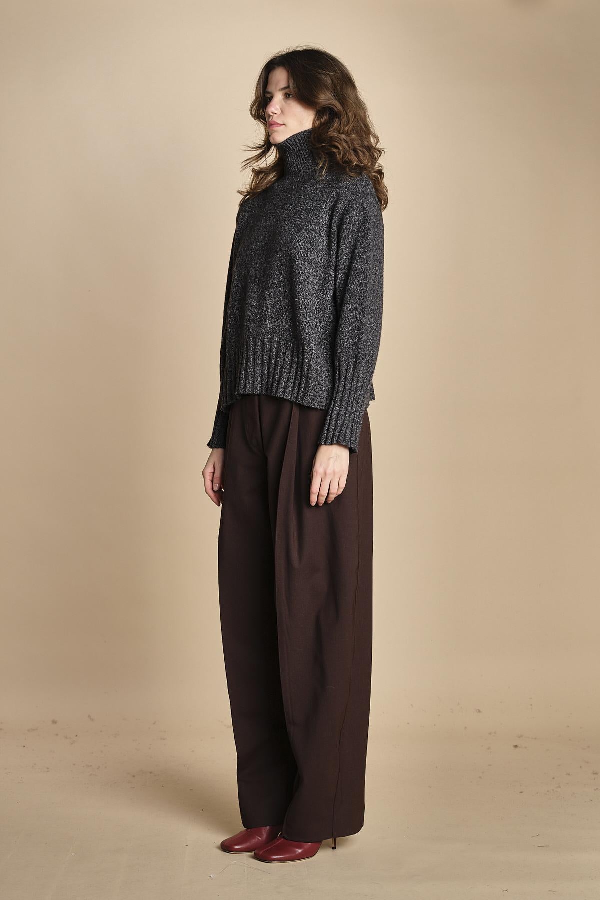 maglia dolcevita in moulinè MIL1 MOULINE 14036 NERO milaura