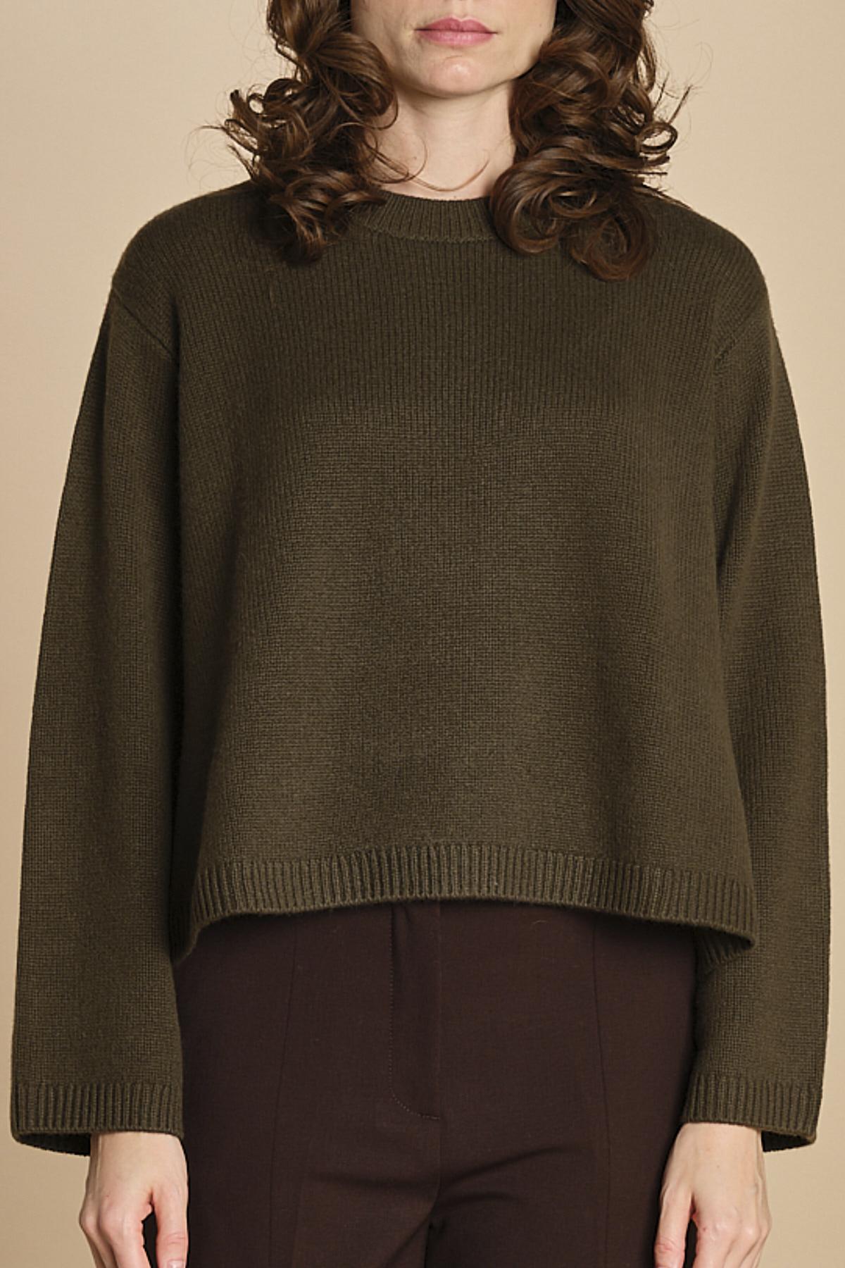 girocollo rasato. La modella è alta 174 cm e indossa una taglia S. 100% cachemire
