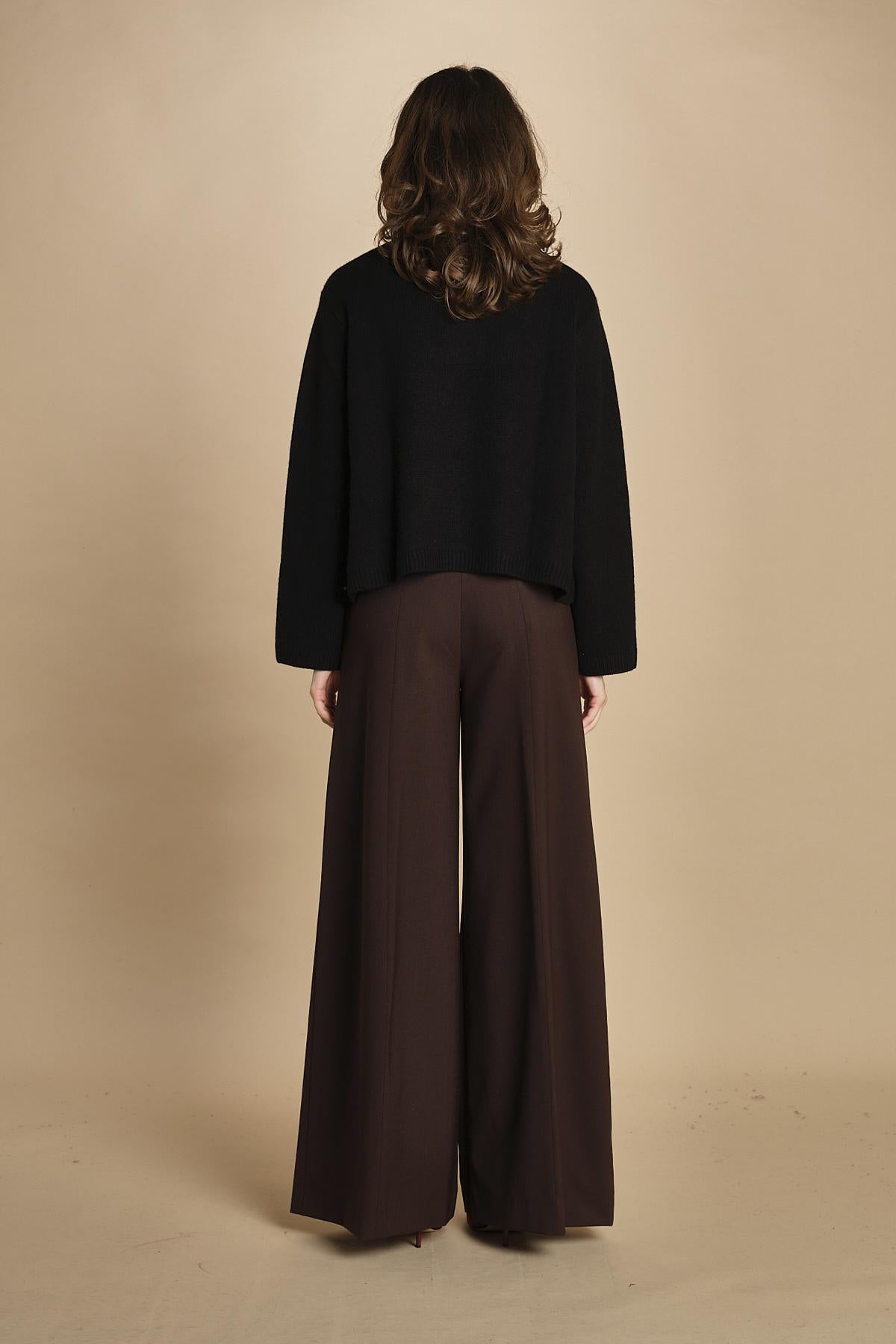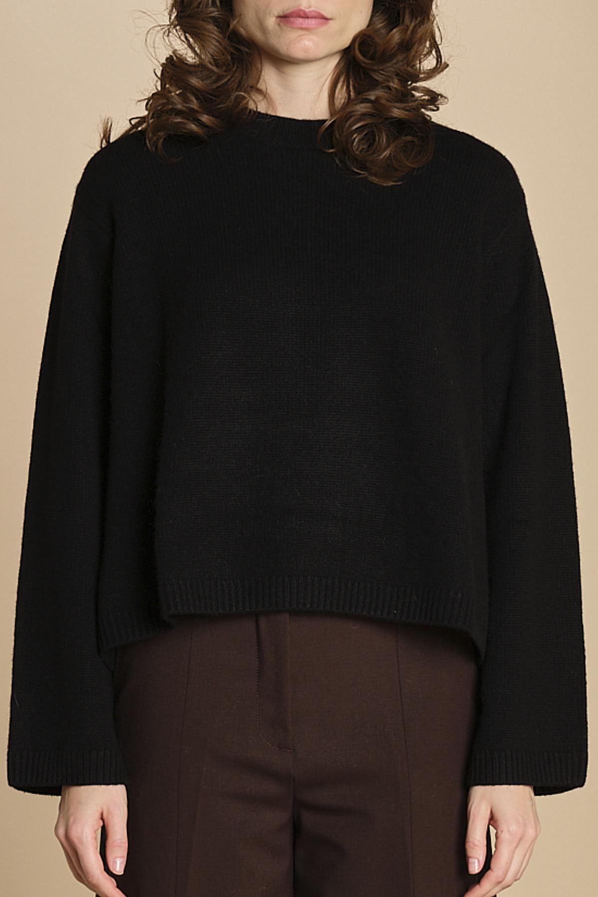 girocollo rasato. La modella è alta 174 cm e indossa una taglia S. 100% cachemire