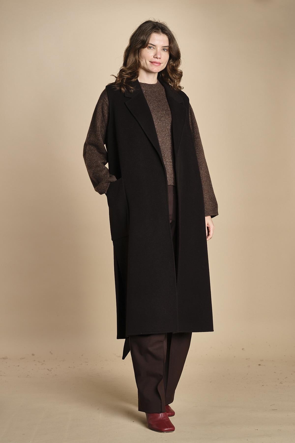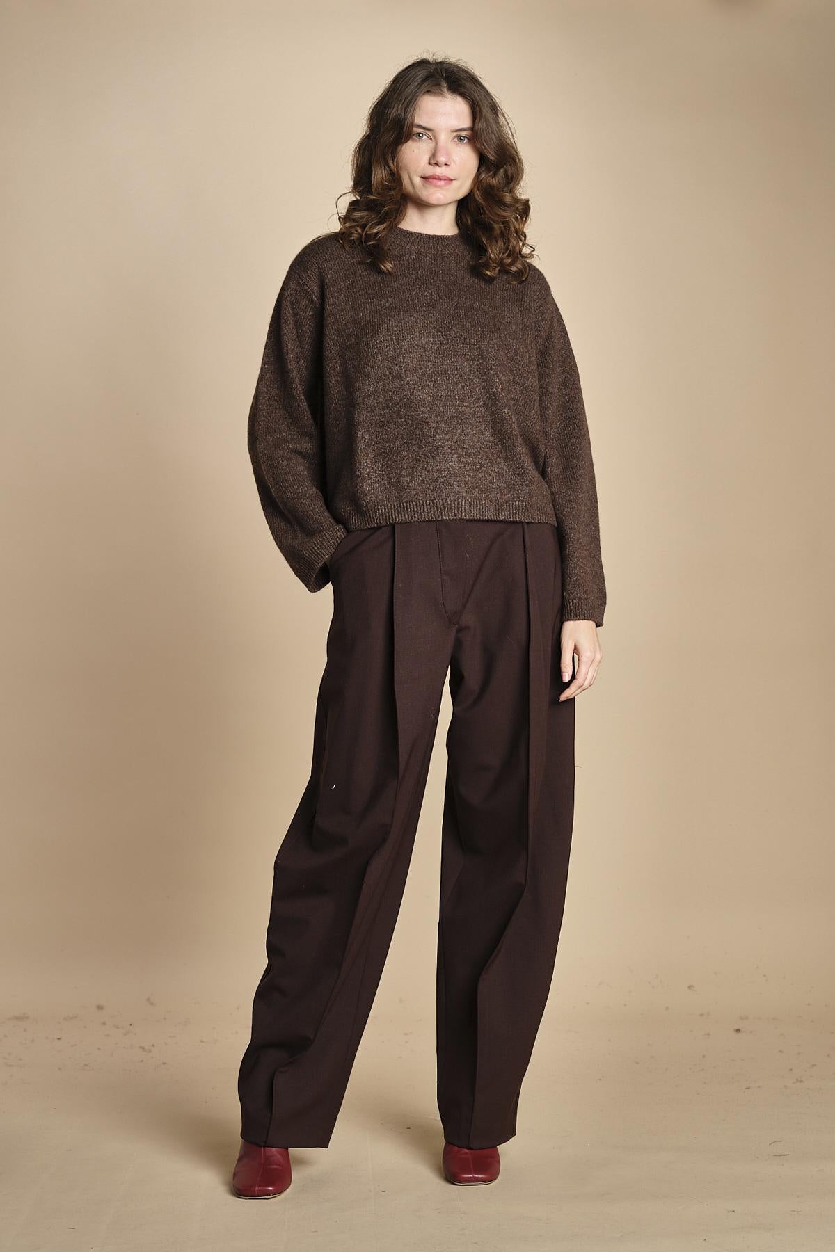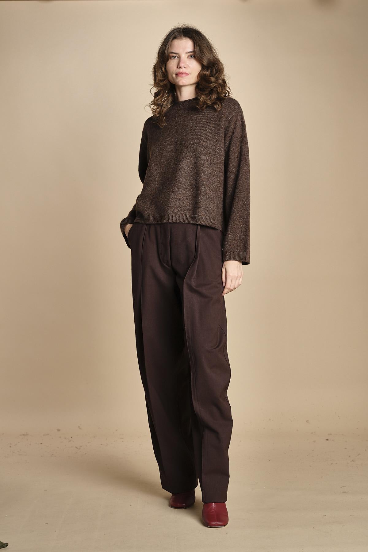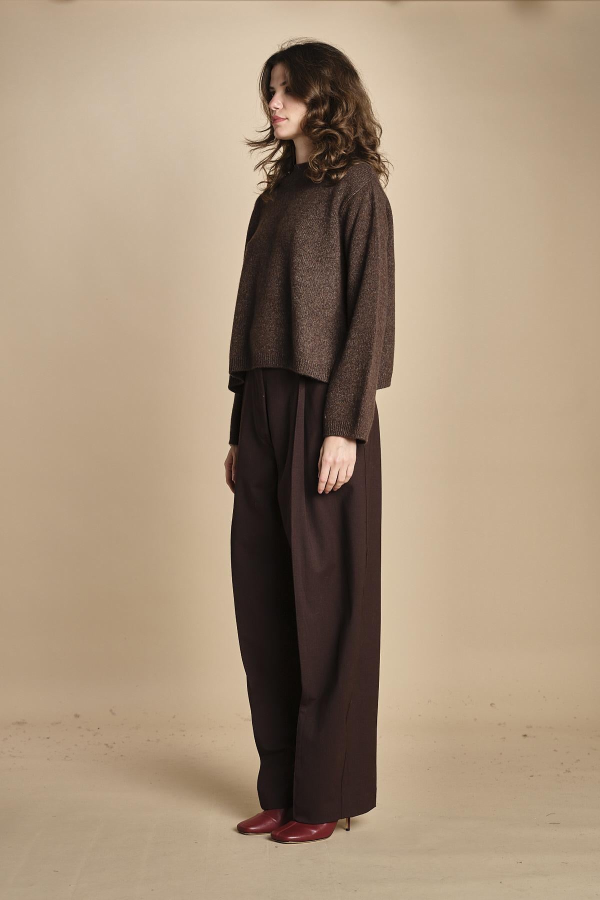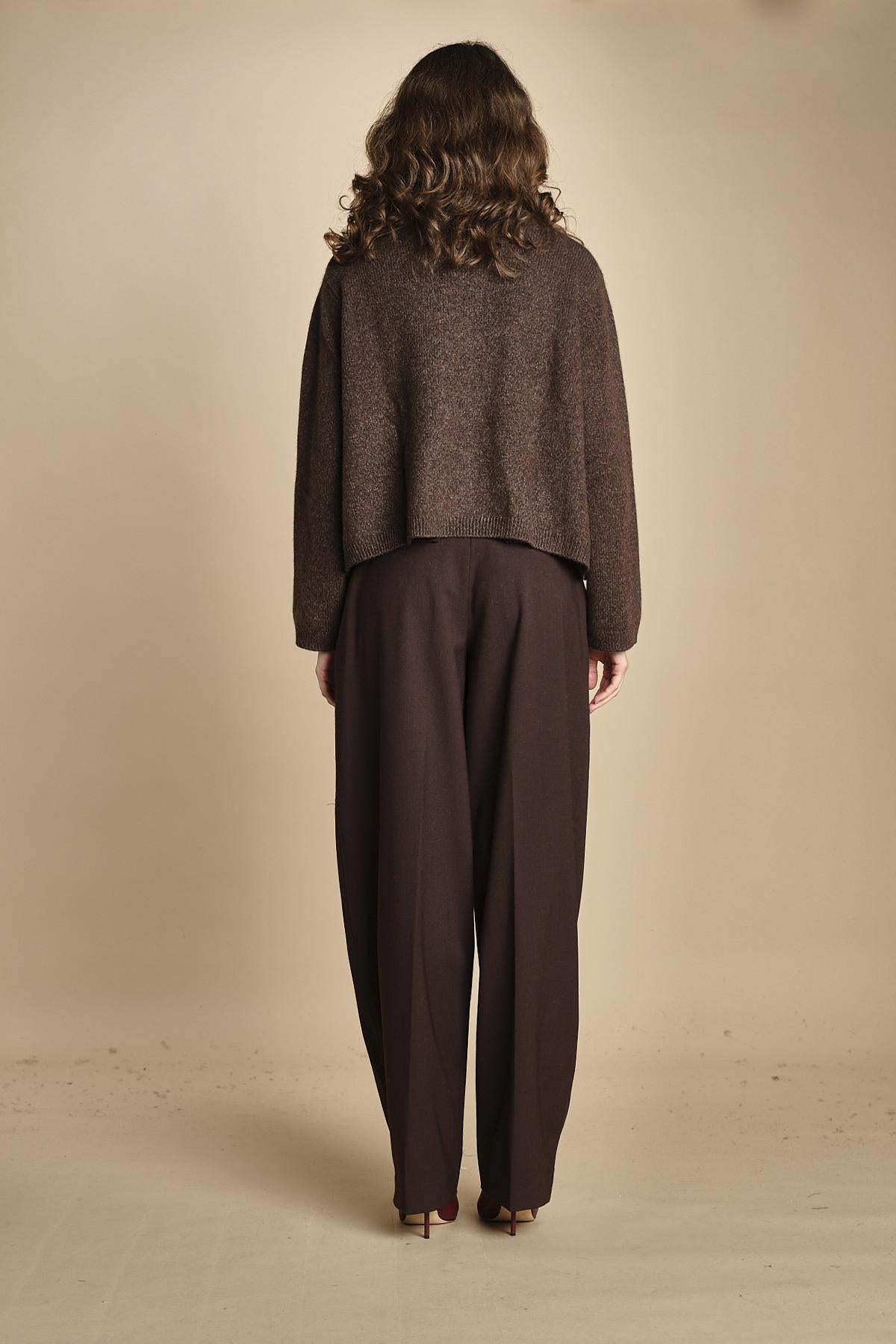 girocollo rasato in moulinè. La modella è alta 176 cm e indossa una taglia S. 100% cachemire