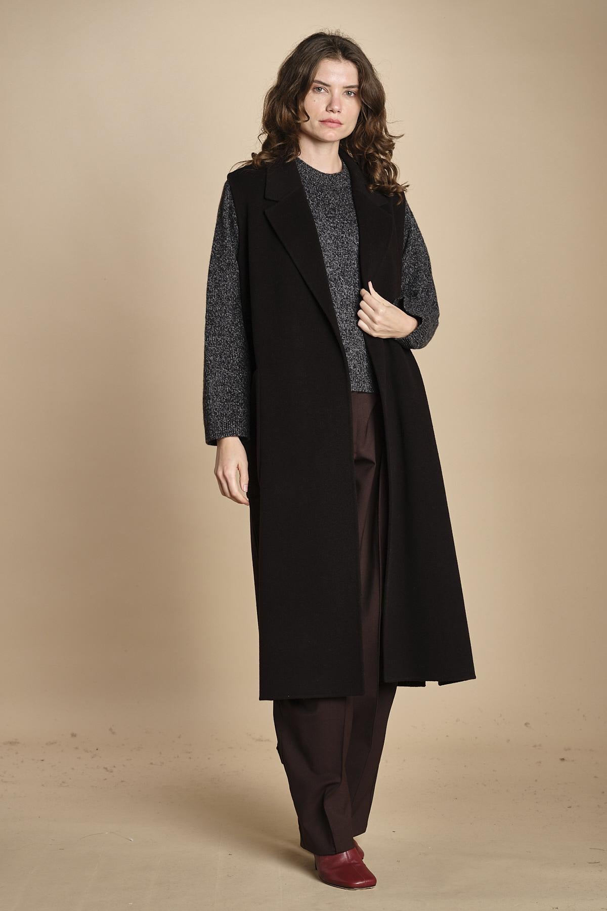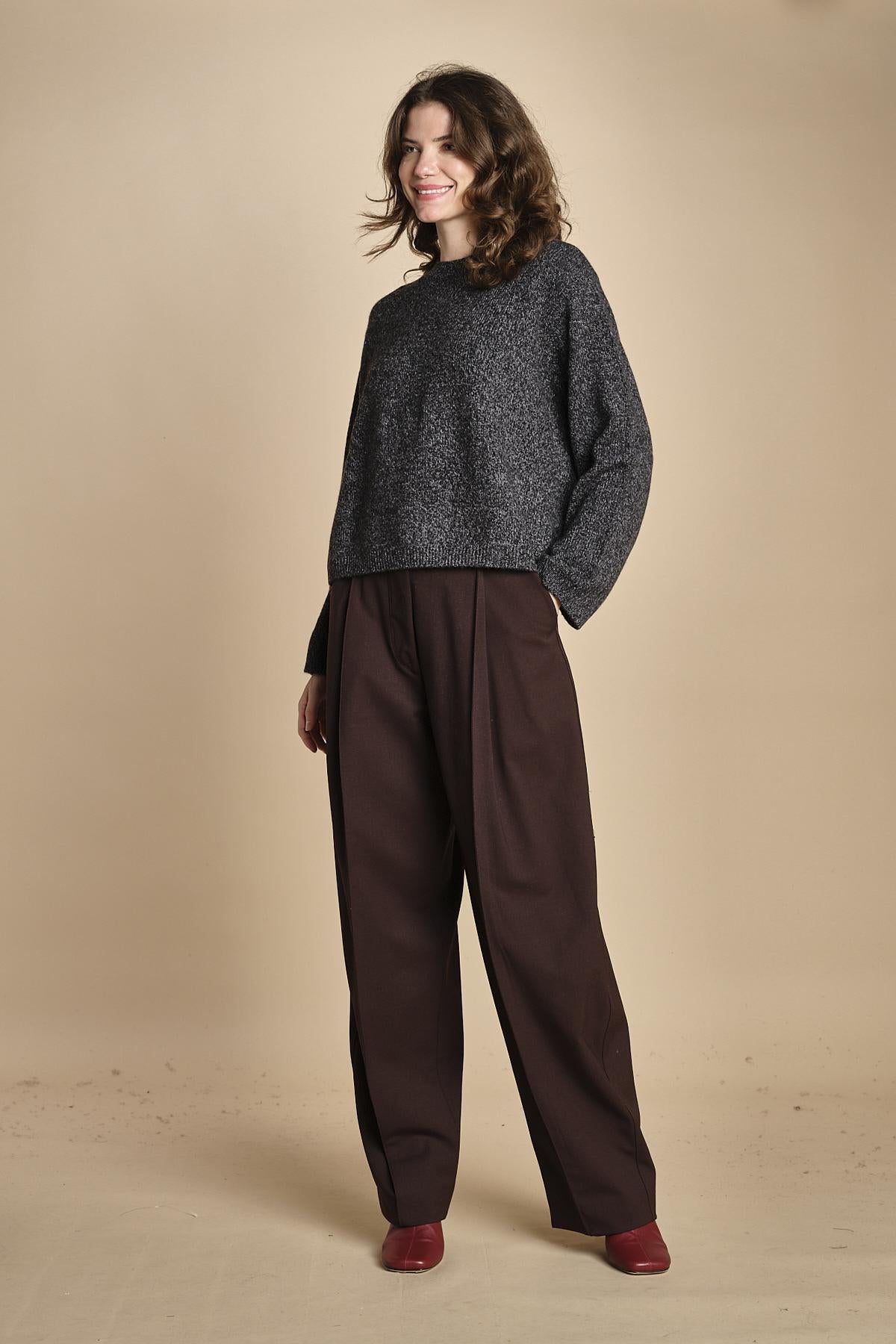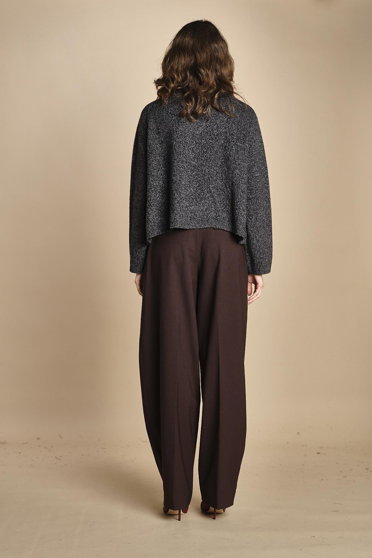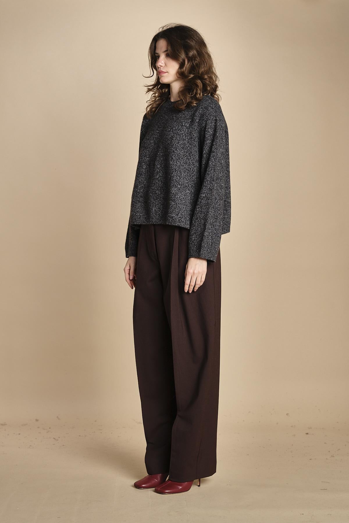 girocollo rasato in moulinè. La modella è alta 176 cm e indossa una taglia S. 100% cachemire