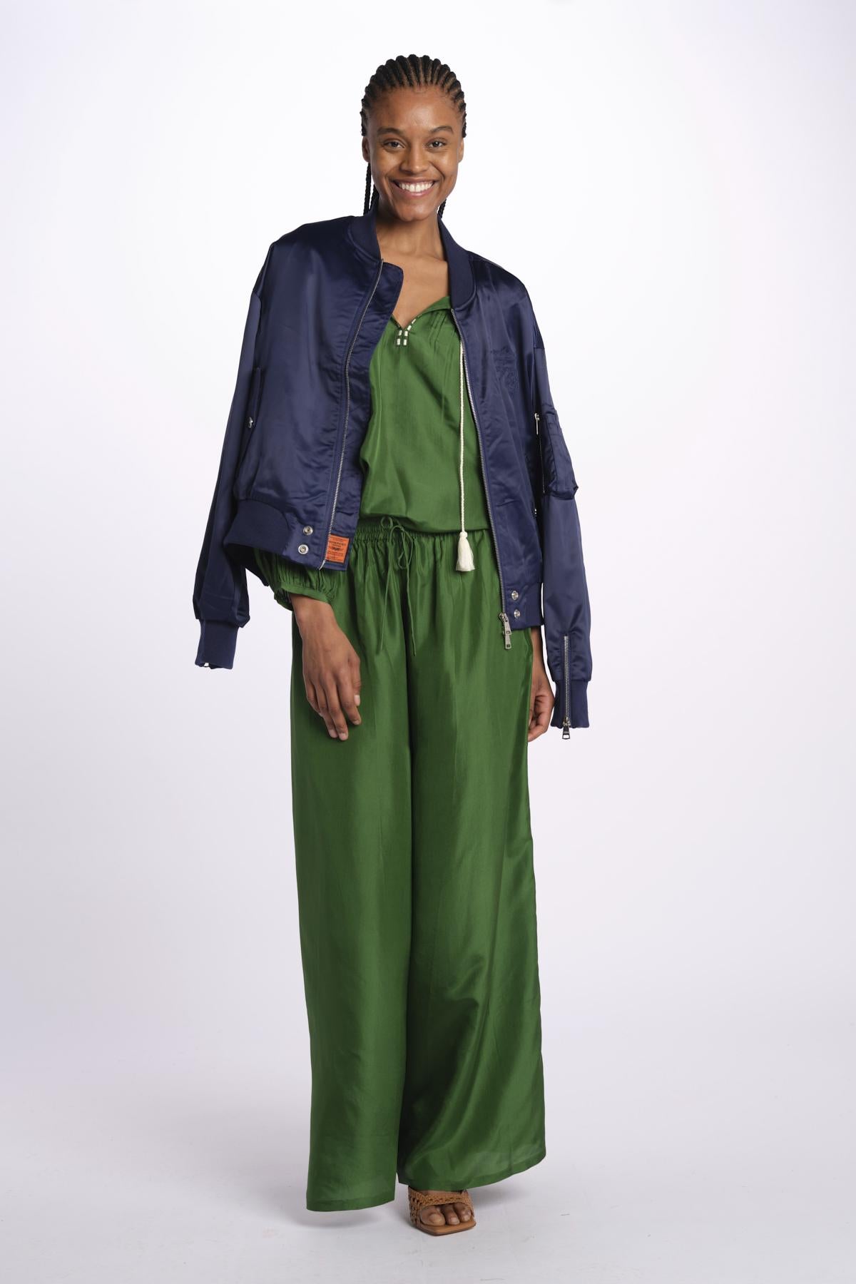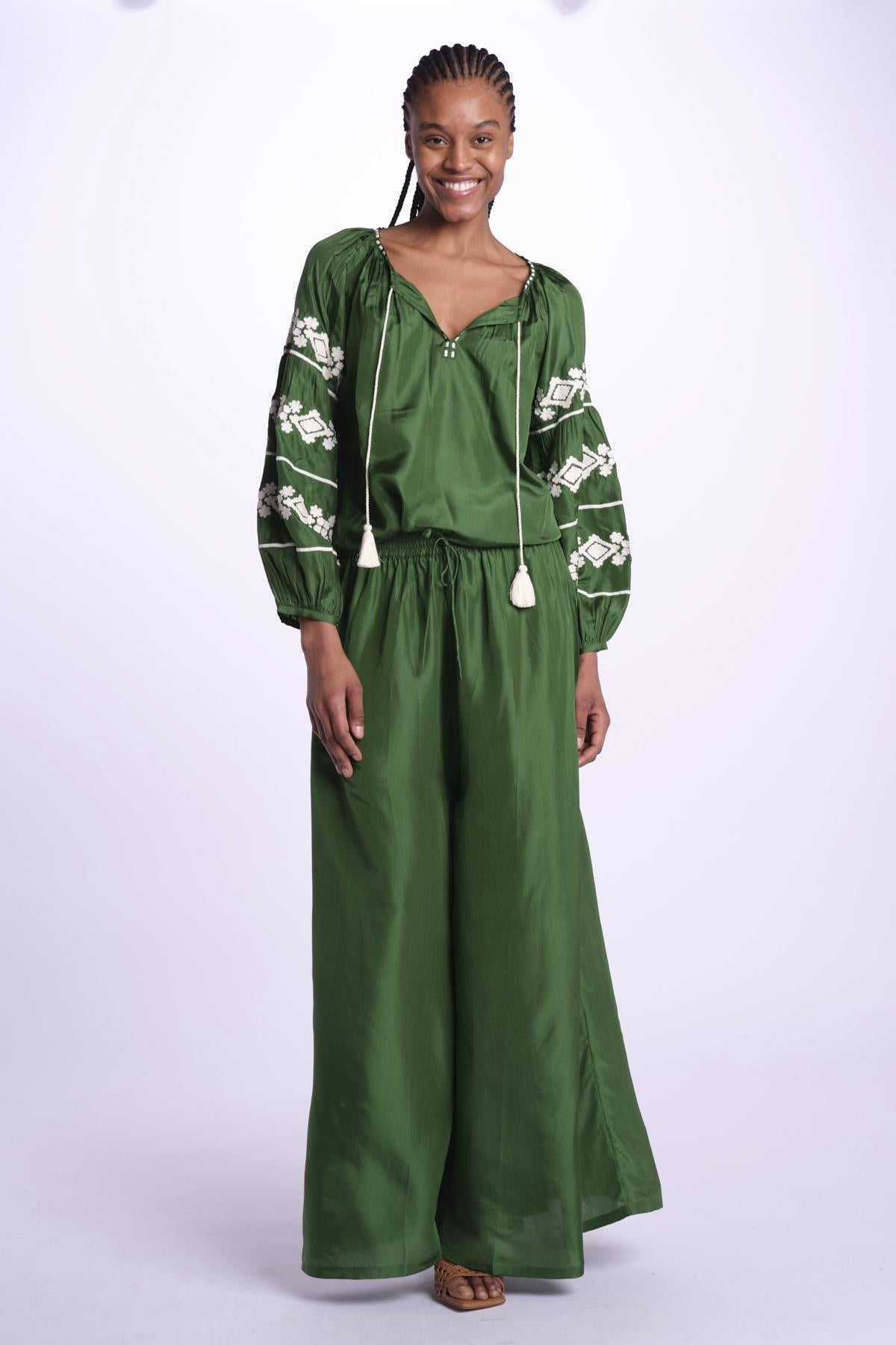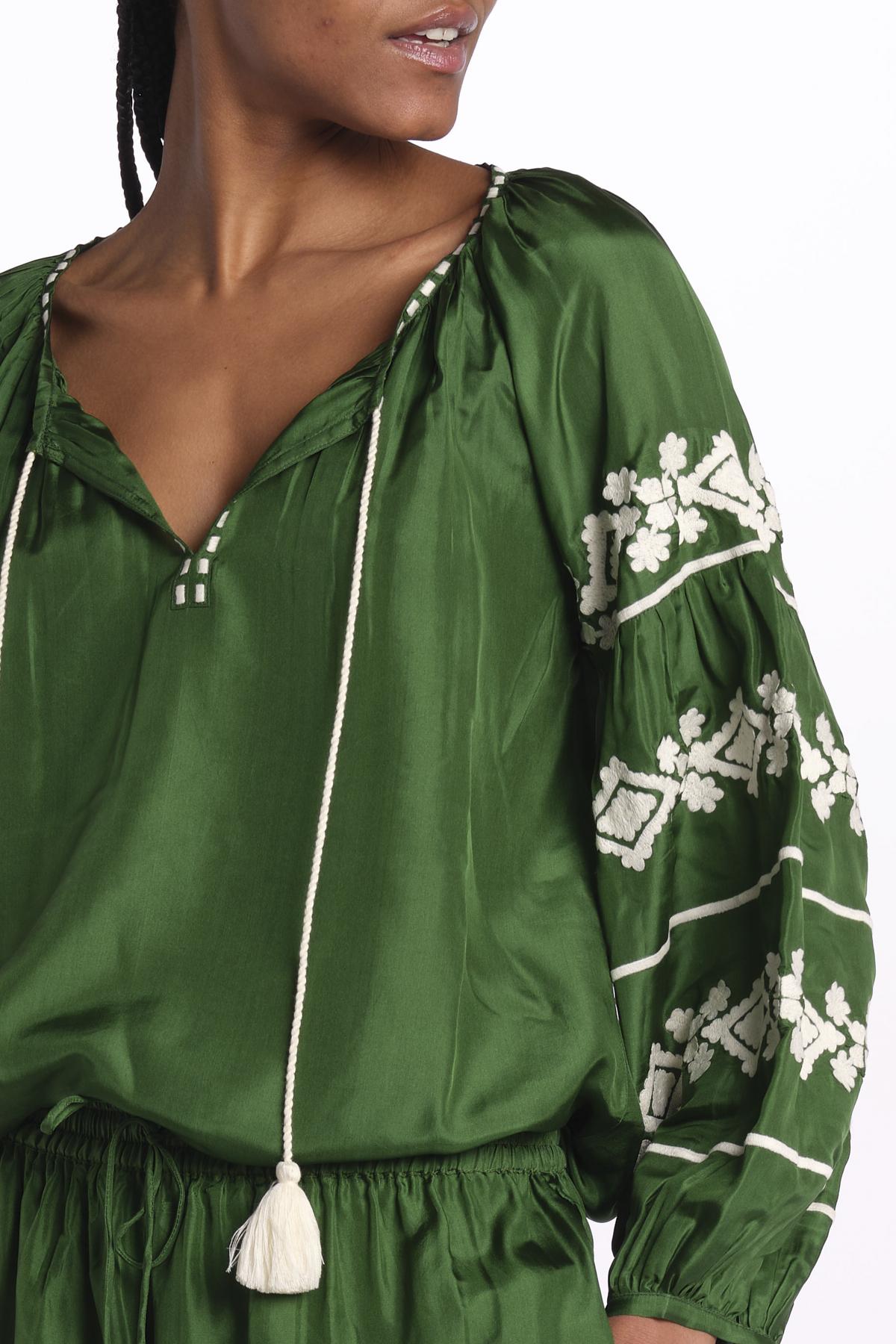 BYBLOS silk shirt with embroidered sleeve by milaura. The model is 174 cm tall and wears a size XS. Composition: 100% silk.
