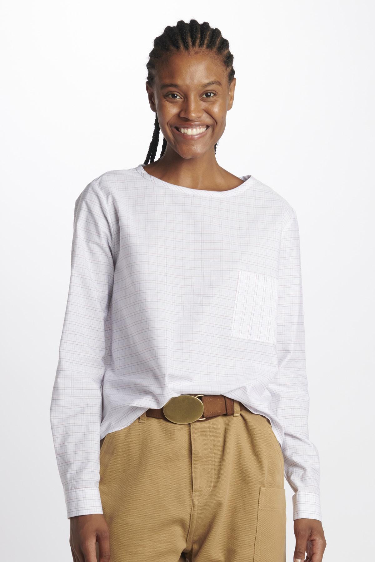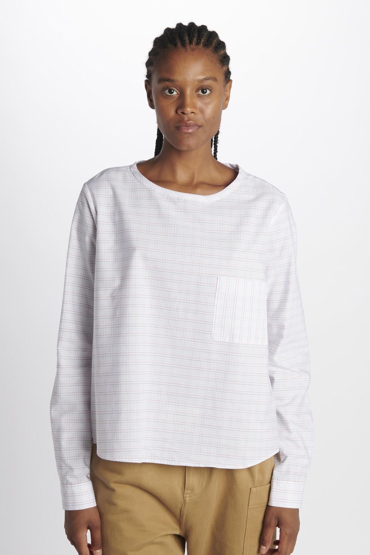 Shirt by Milaura rtw long sleeves with one pocket. The model is 174 cm tall and wears size 38. Composition: 100% Cotton.