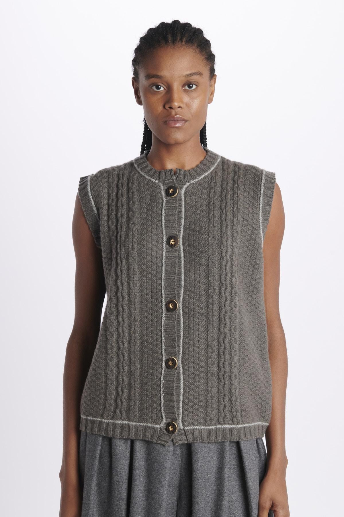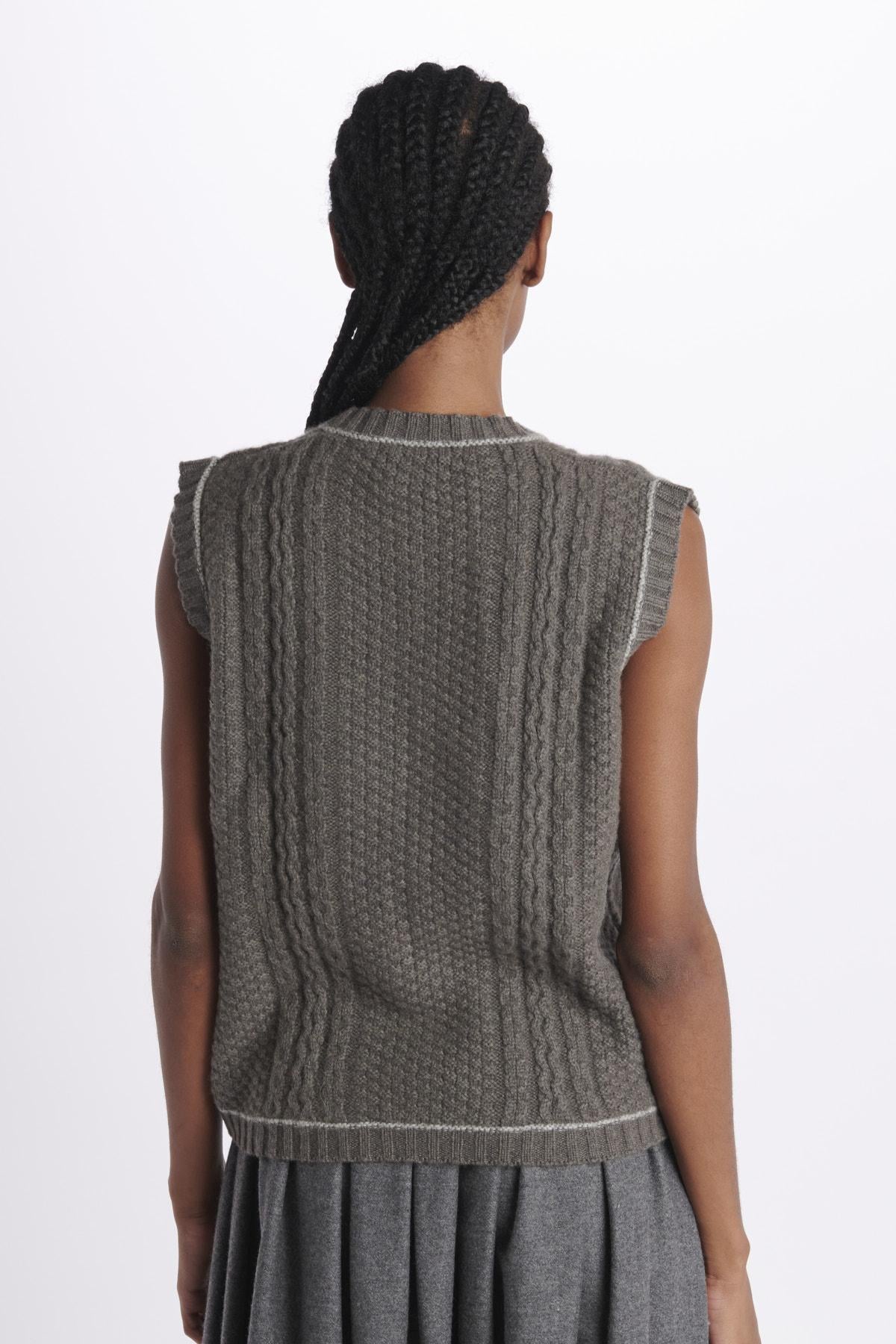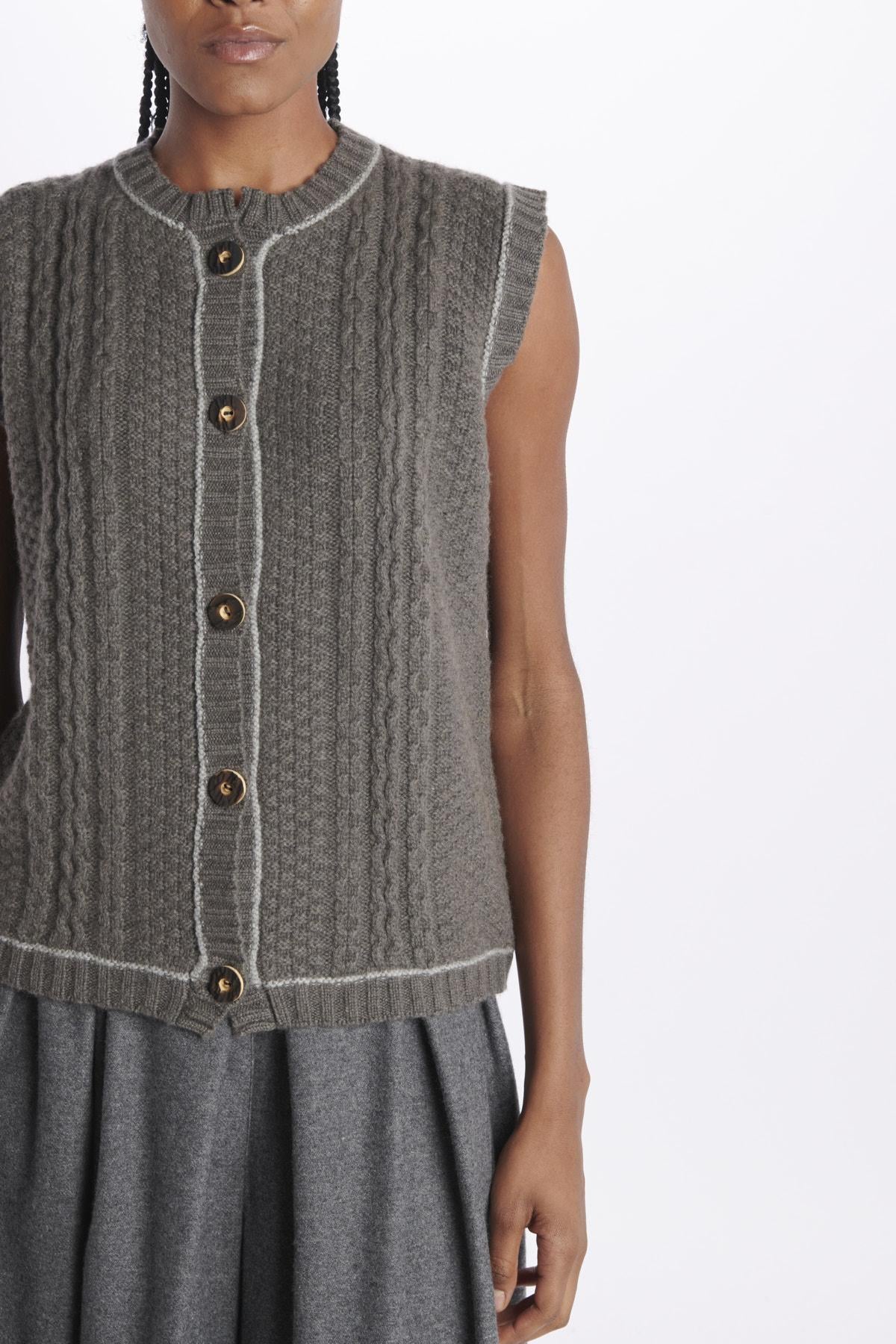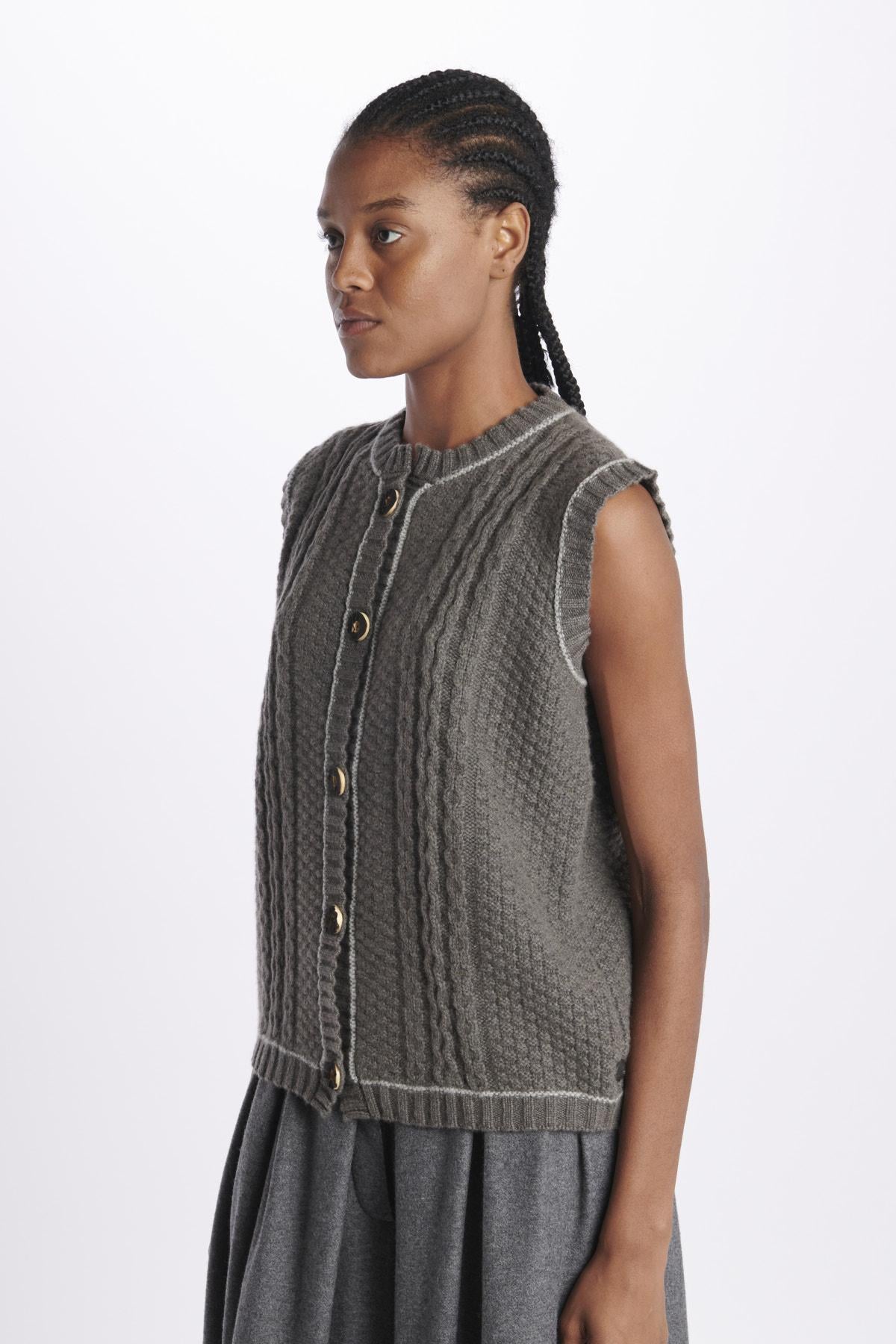 Sweater by Milaura gilet saruer. The model is 174 cm tall and wears size S. Composition: 100% Cashmere.