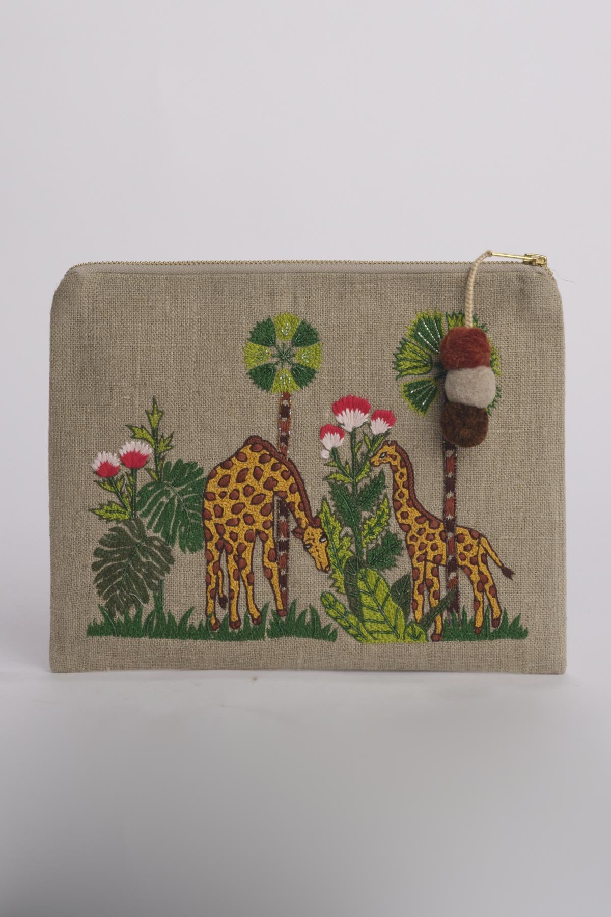 GIRAFFE large clutch bag by milaura. Handmade. 100% linen. Size: 28x20 cm.