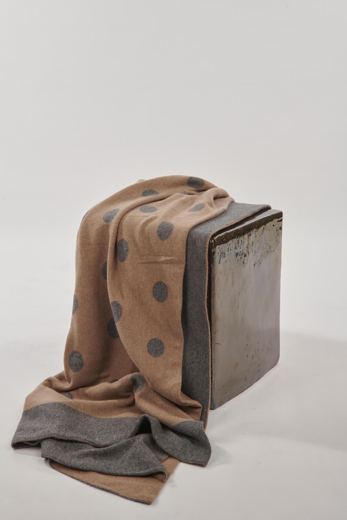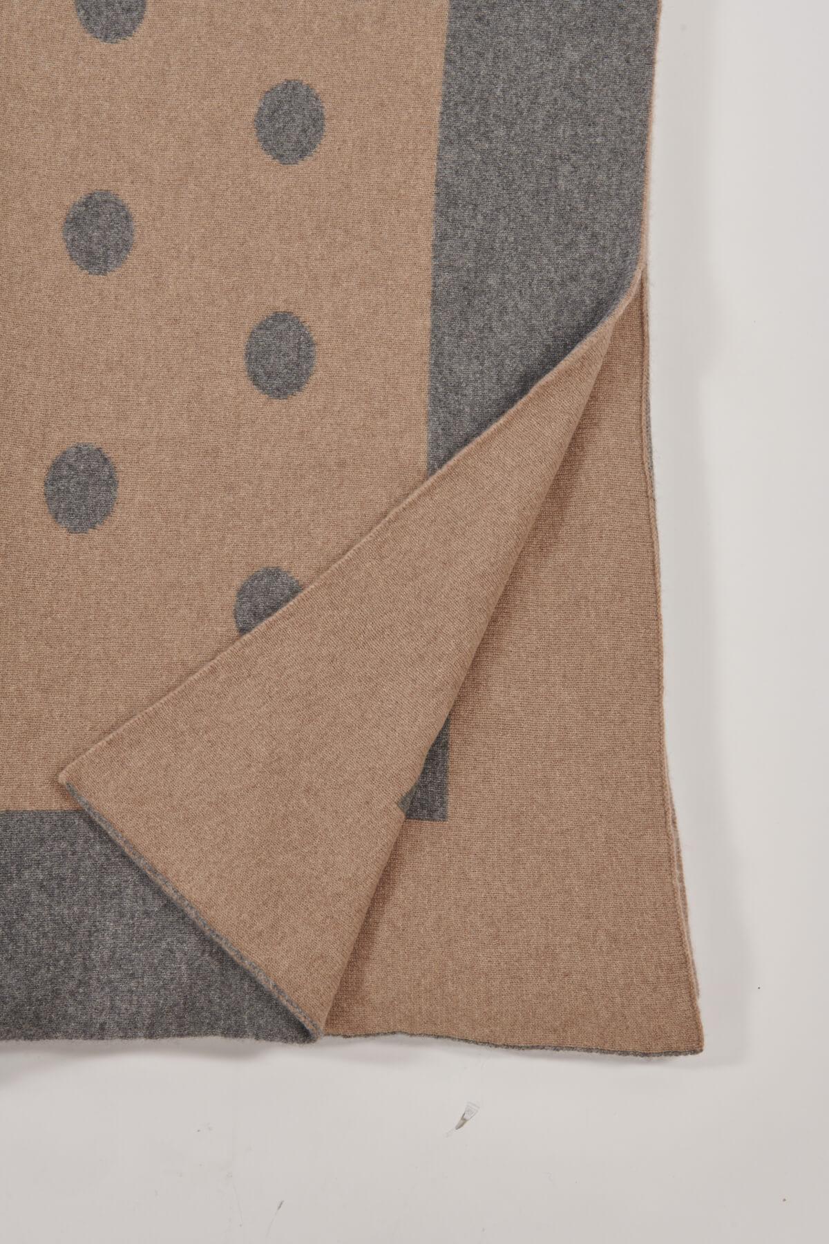 Cashmere blanket by Milaura Home. Grey and cumin polka dot pattern. Composition: 100% cashmere. Size 150x180 cm.