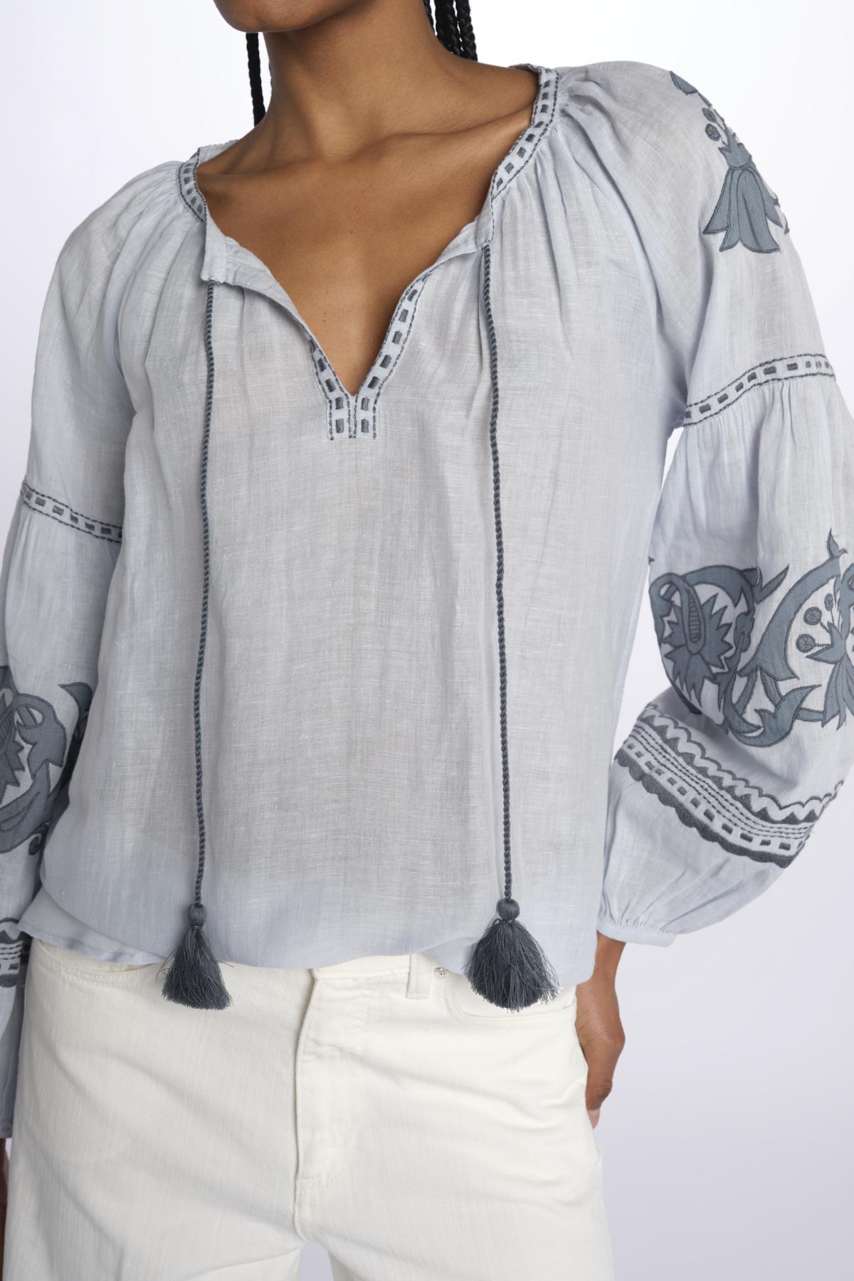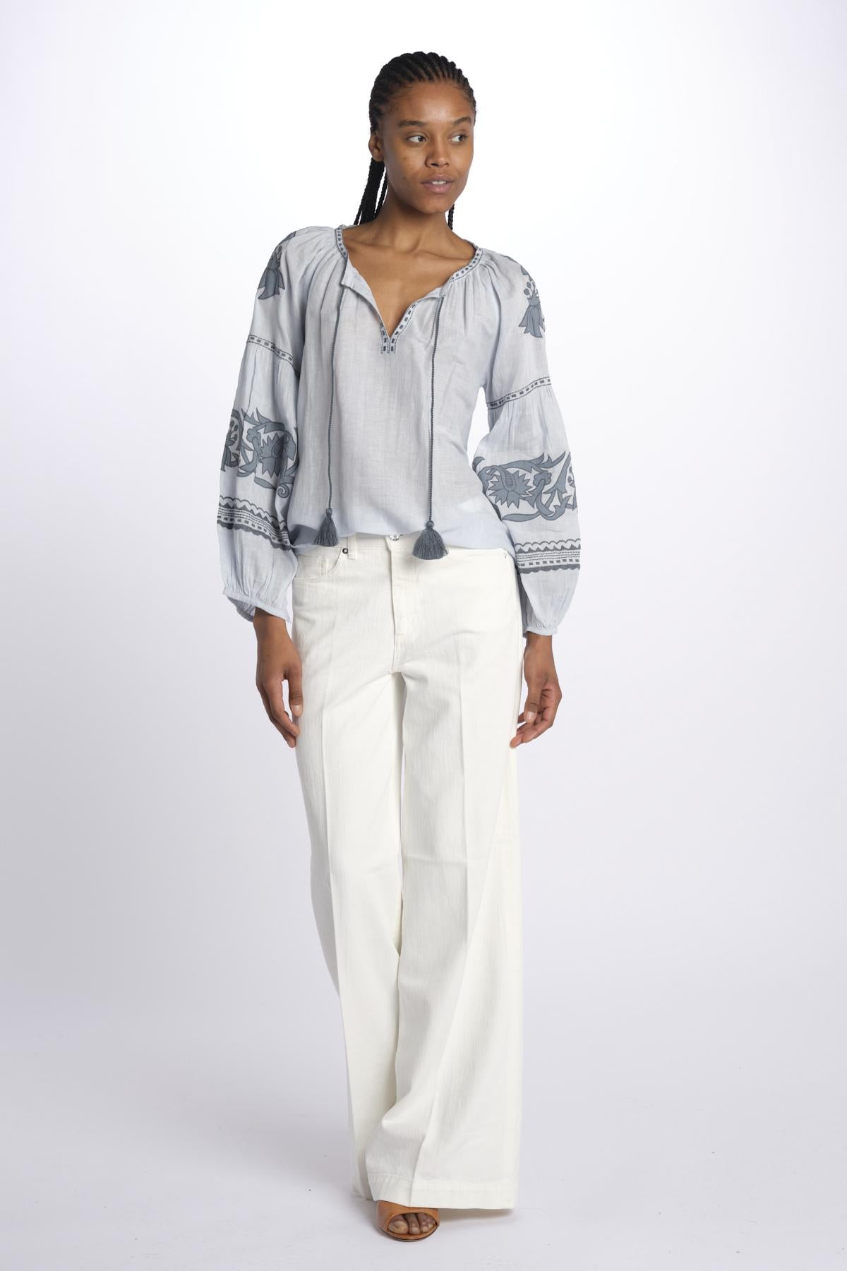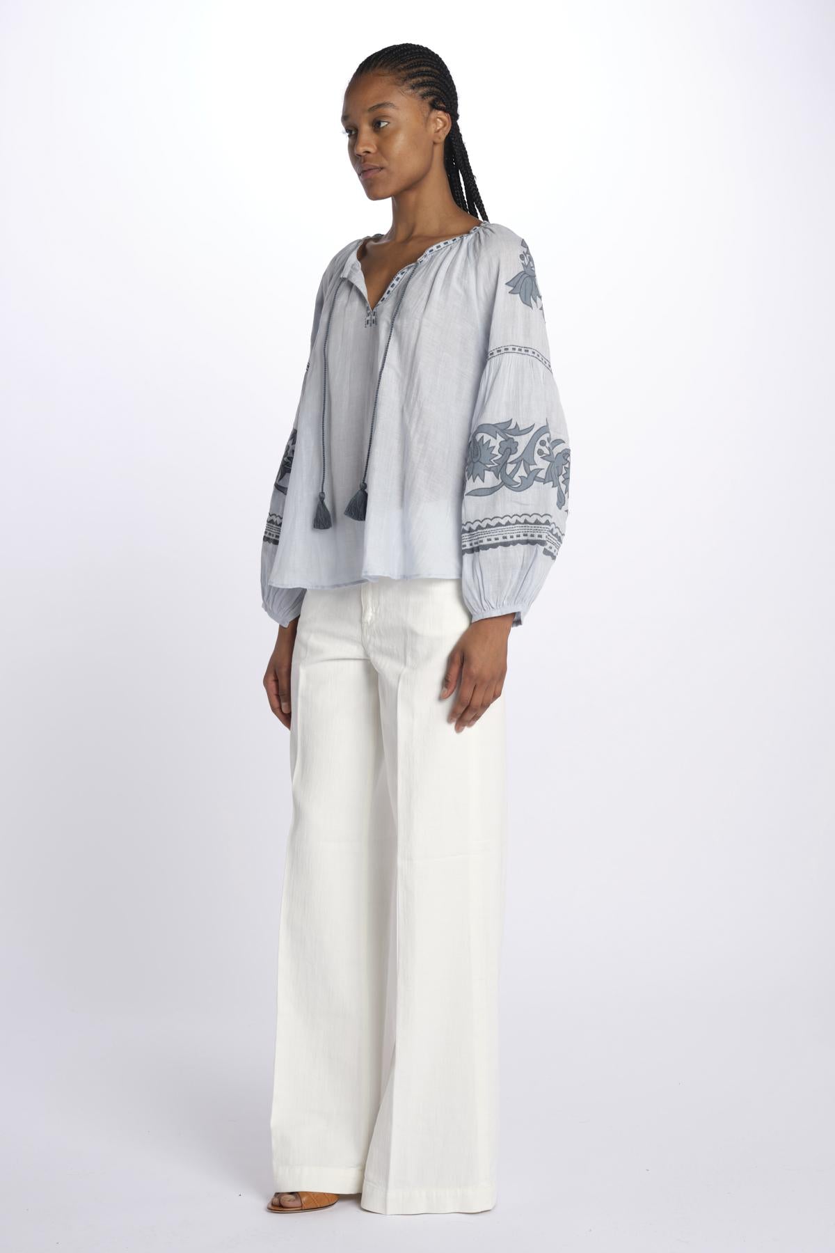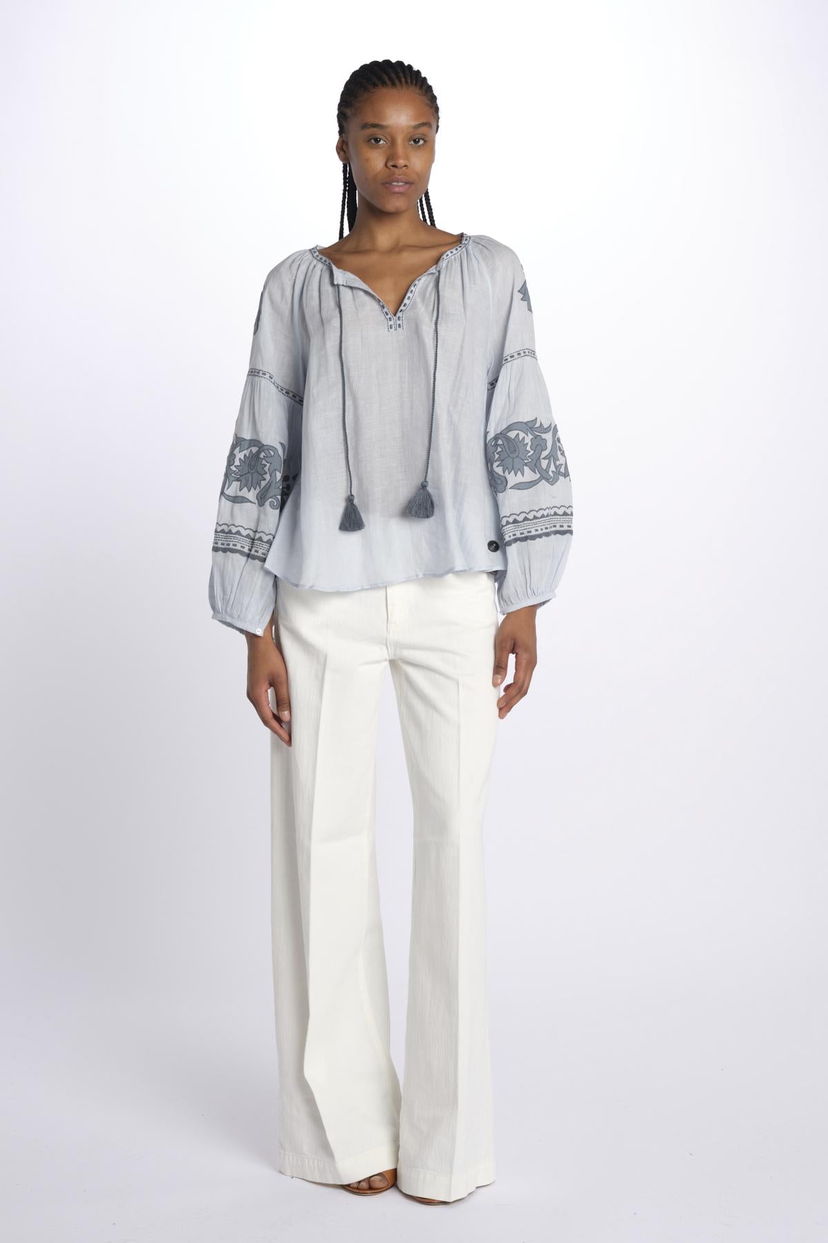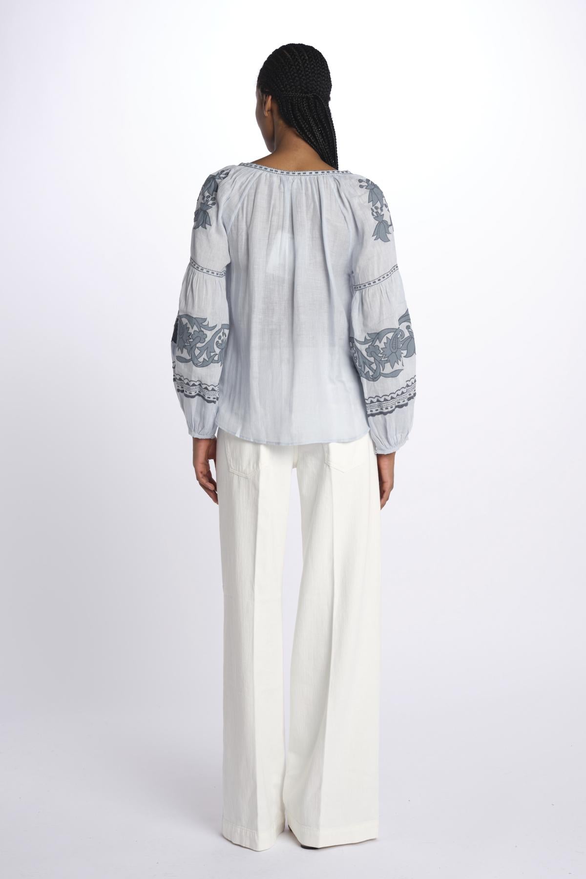 IBIZA camicia con ricami applicati  by milaura. BE24877A PALE BLU ZUCHRO benaras soleil