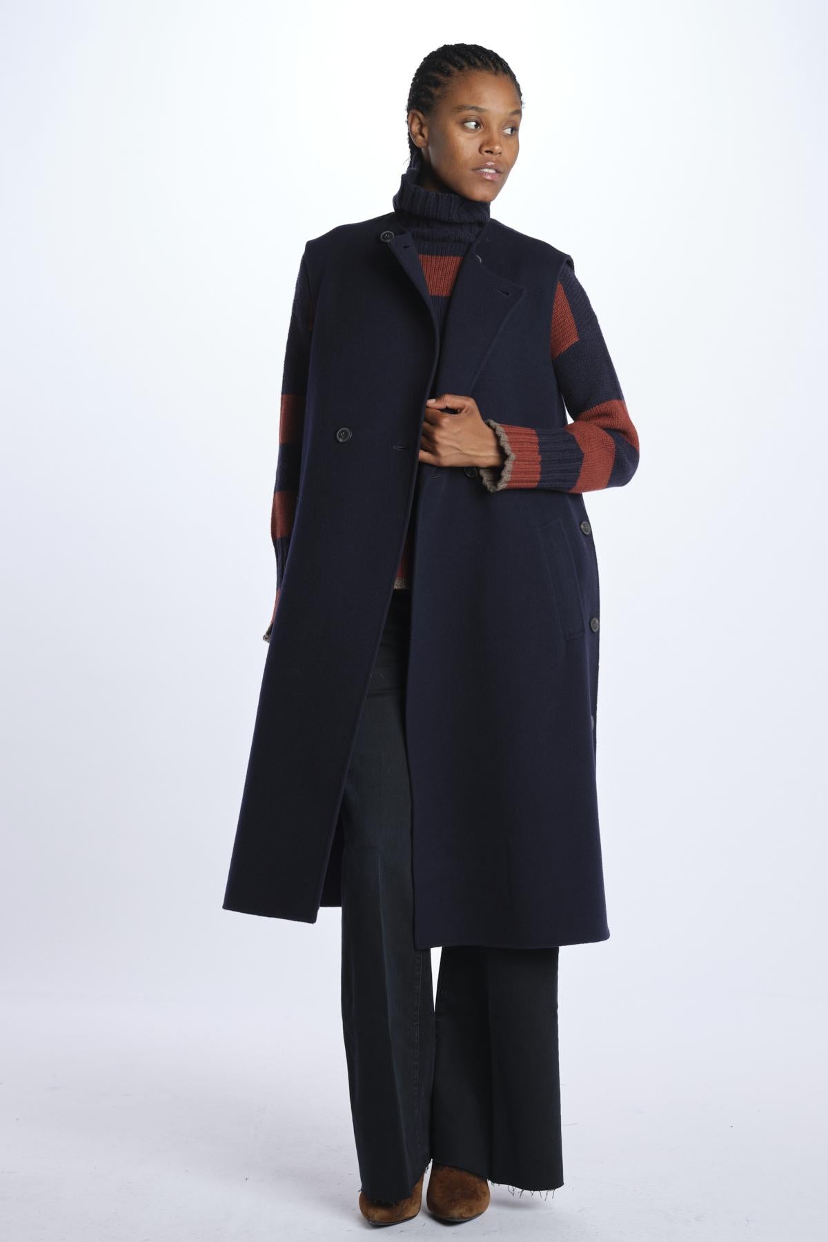Dolcevita by milaura knit large stripe. The model is 174 cm tall and wears a 40. Composition: 100% Cashmere.