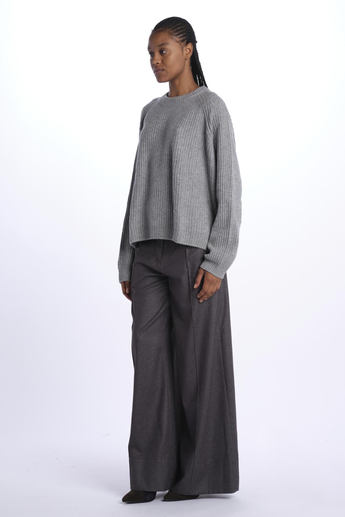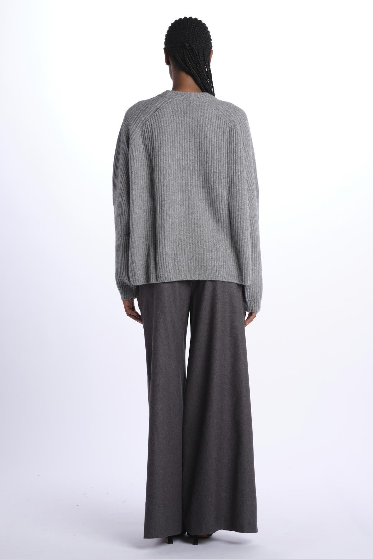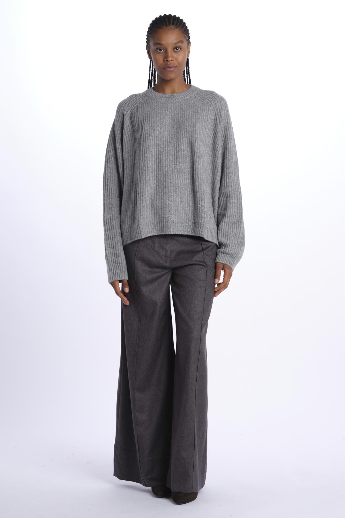 Ribbed oversized crewneck by milaura knit. The model is 174 cm tall and wears a size 0/1. Composition: 100% cashmere.