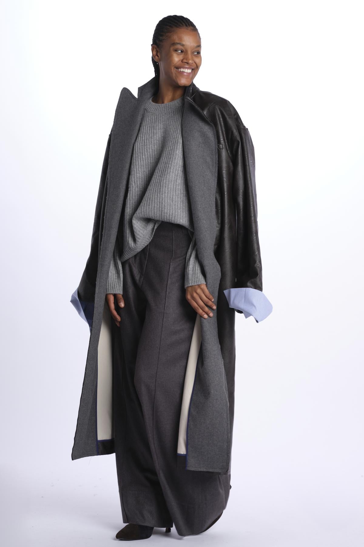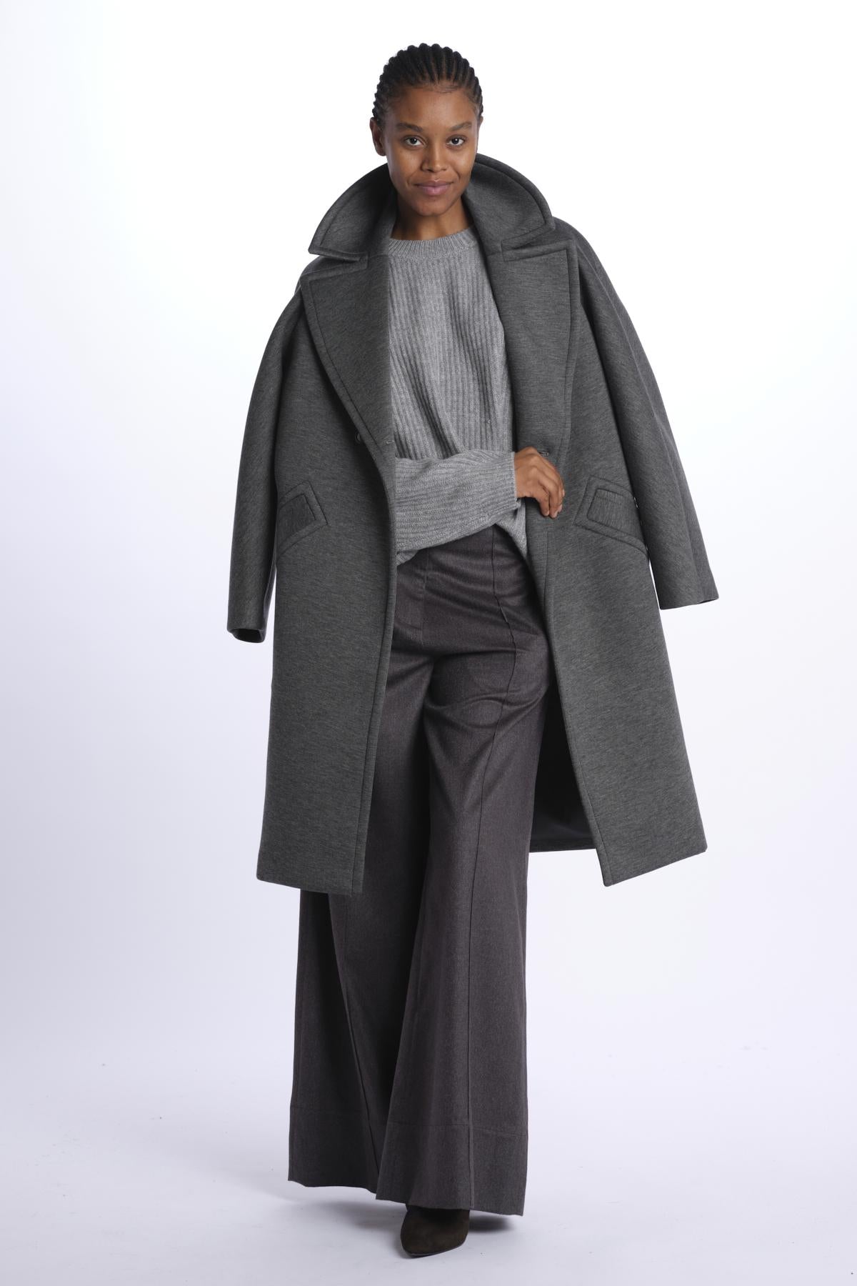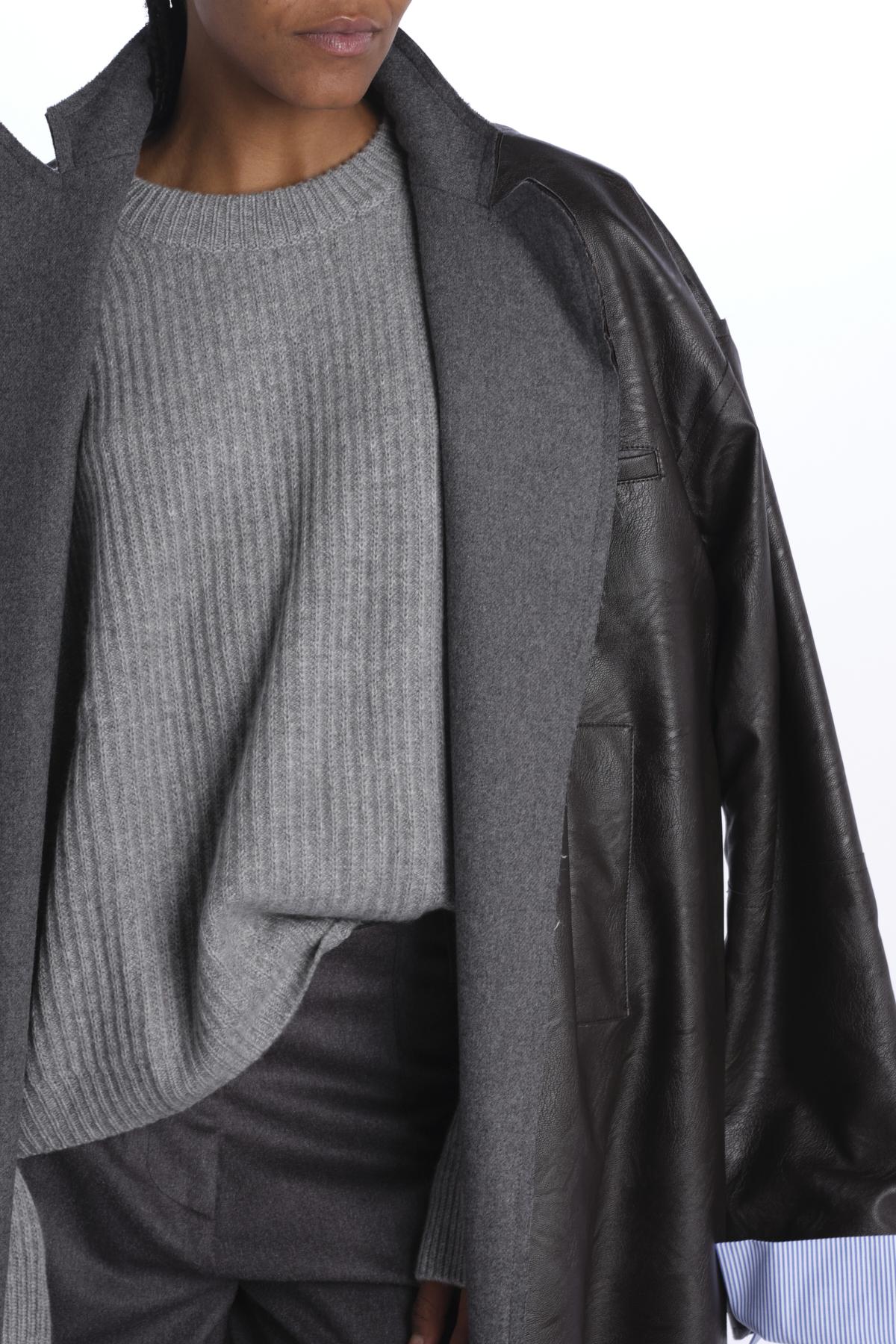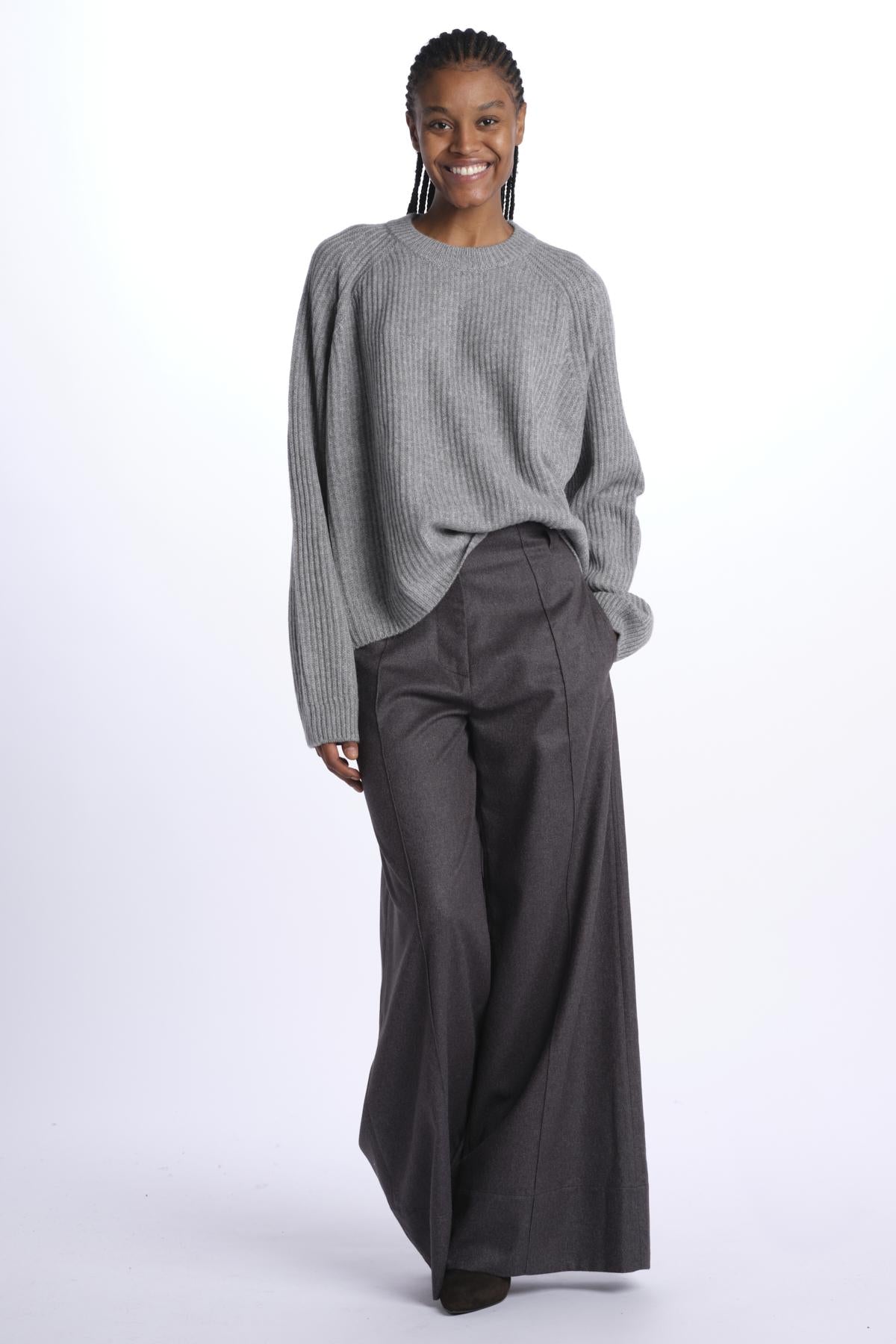 Ribbed oversized crewneck by milaura knit. The model is 174 cm tall and wears a size 0/1. Composition: 100% cashmere.