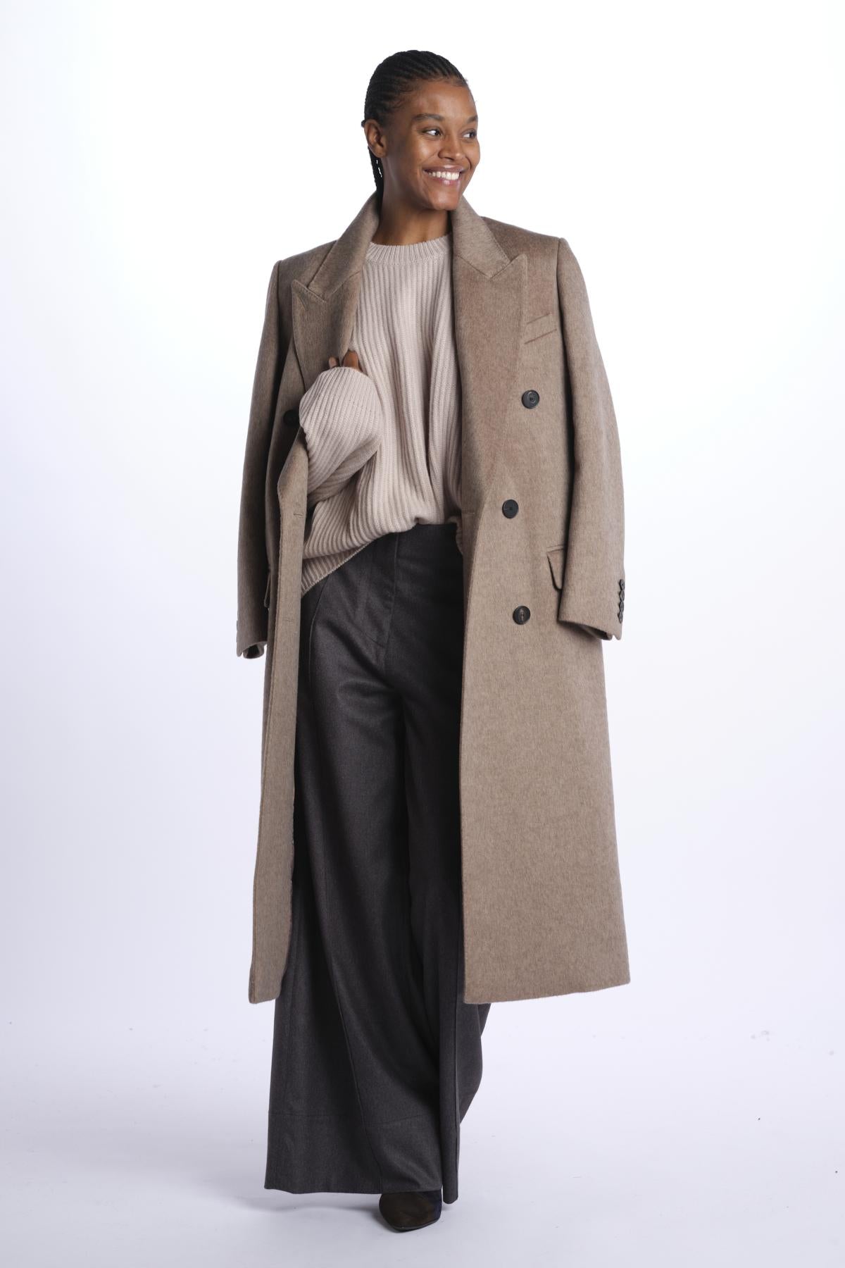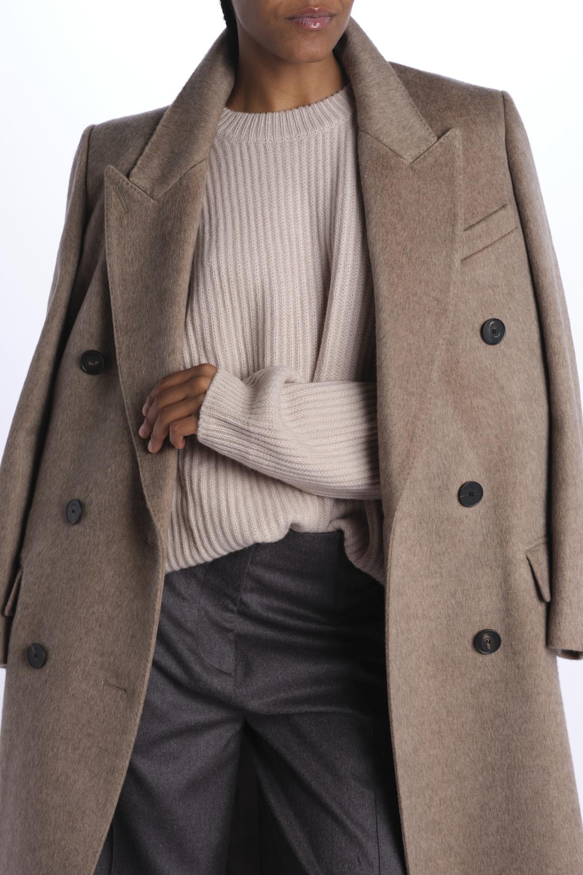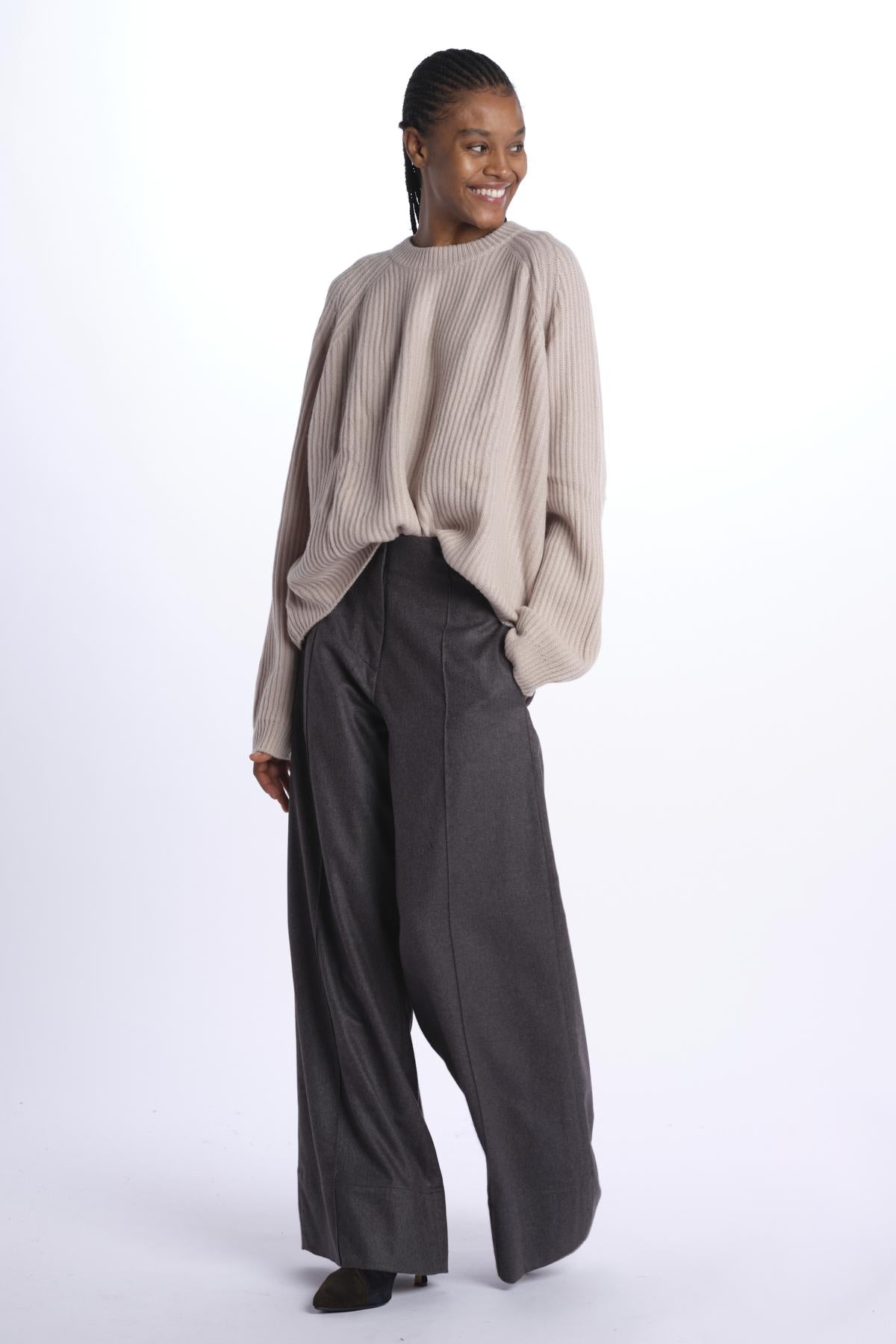 Ribbed oversized crewneck by milaura knit. The model is 174 cm tall and wears a size 0/1. Composition: 100% cashmere.