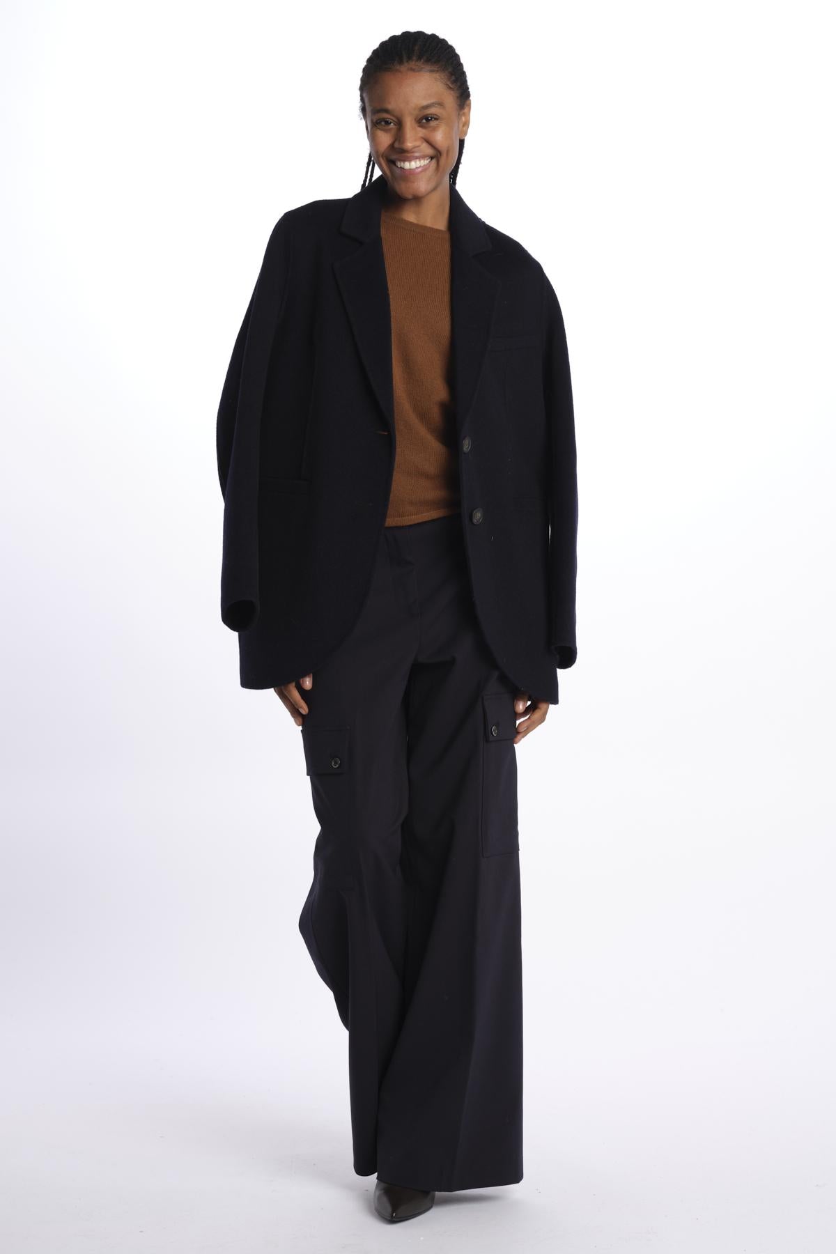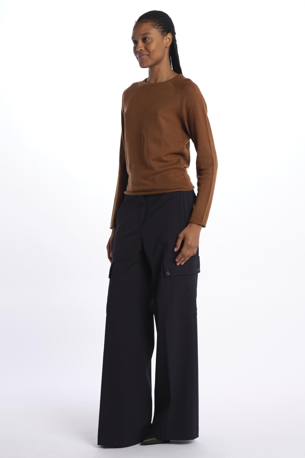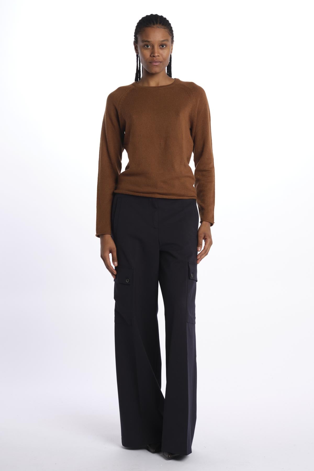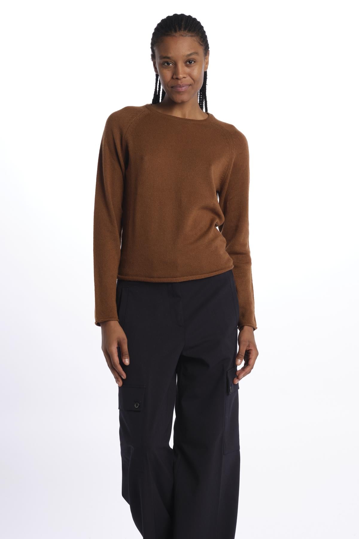 Solid color crewneck by milaura knit. The model is 174 cm tall and wears a size S. Composition: 100% cashmere.