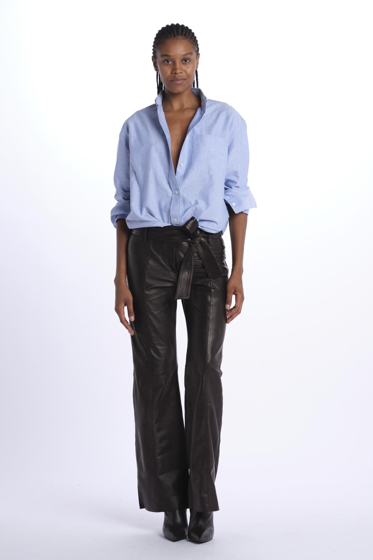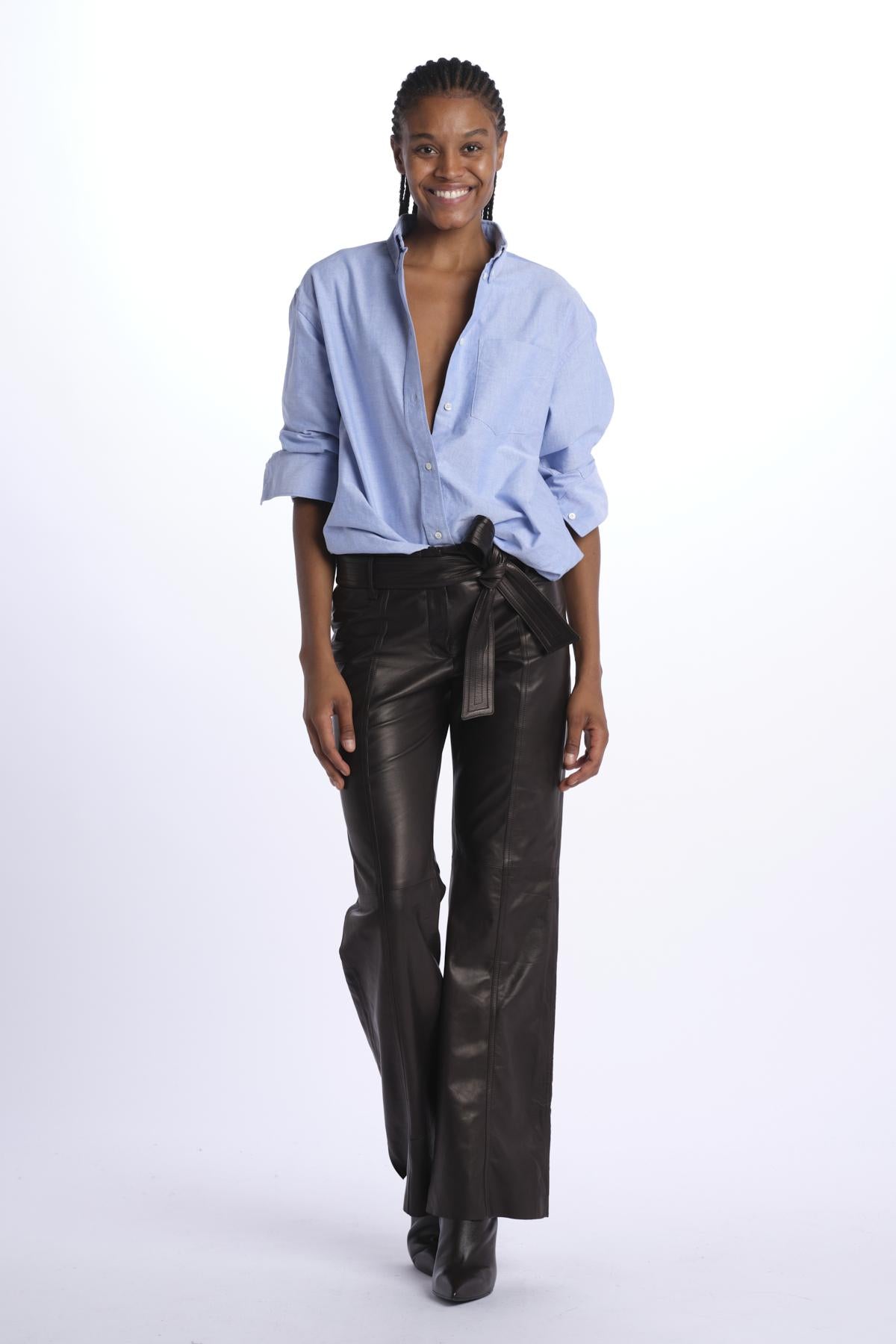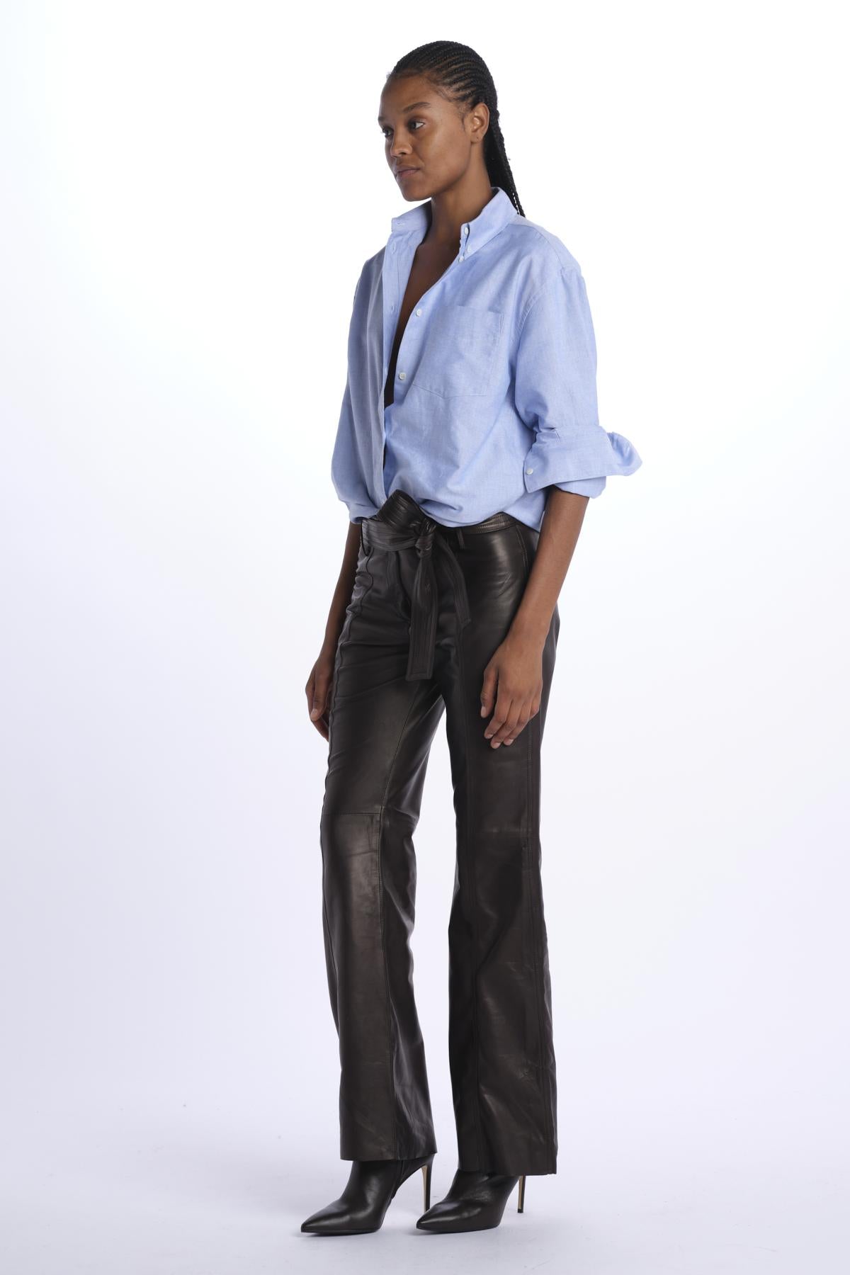 Belted trousers by milaura leather. The model is 174 cm tall and wears a 38. Composition: 100% lambskin.