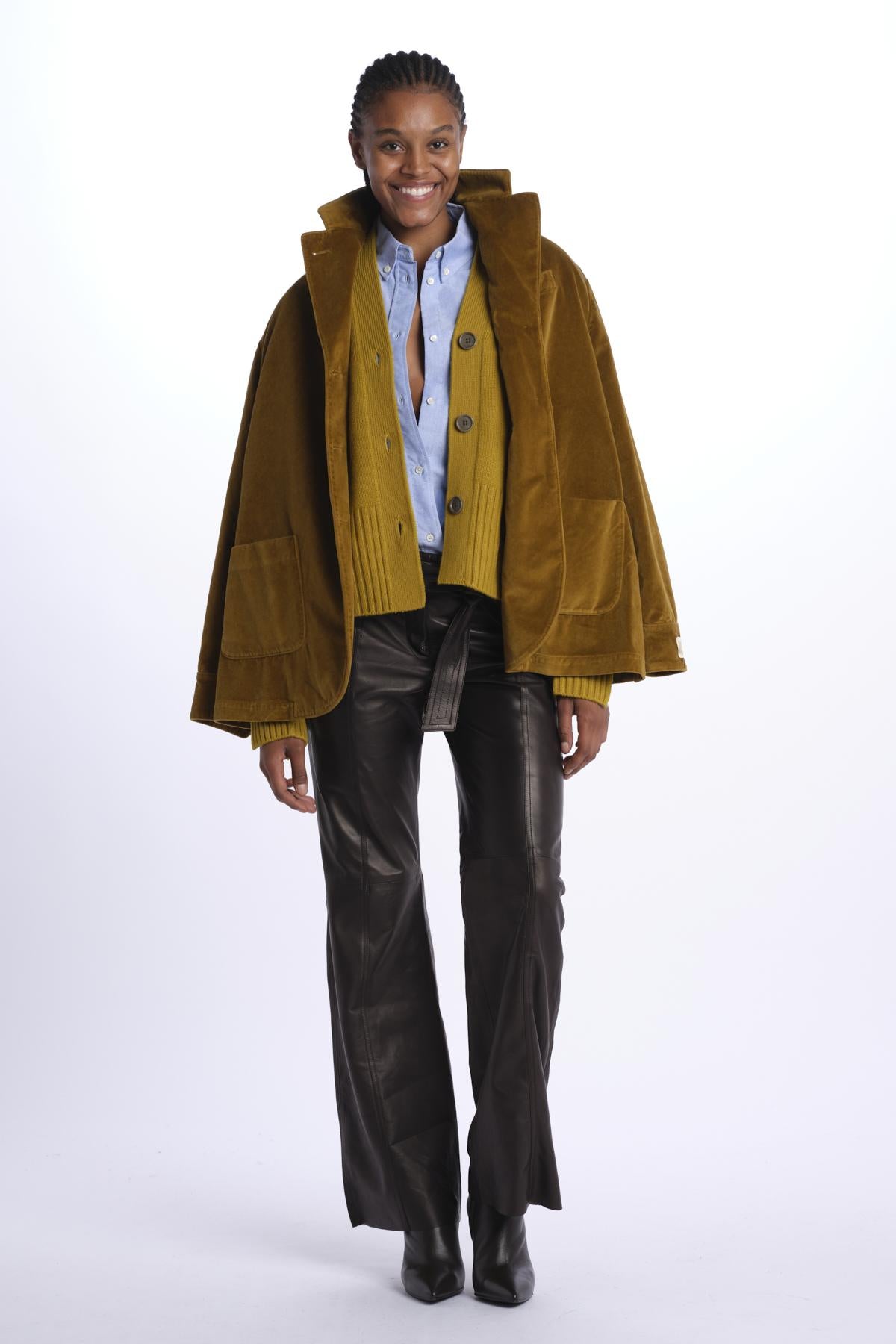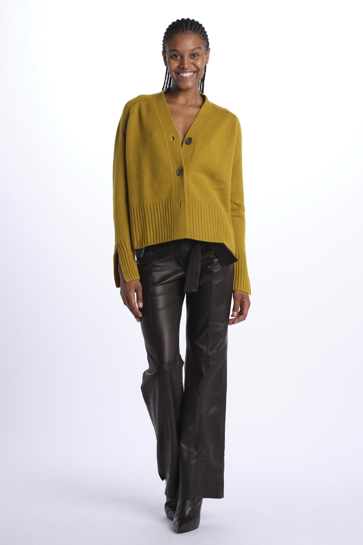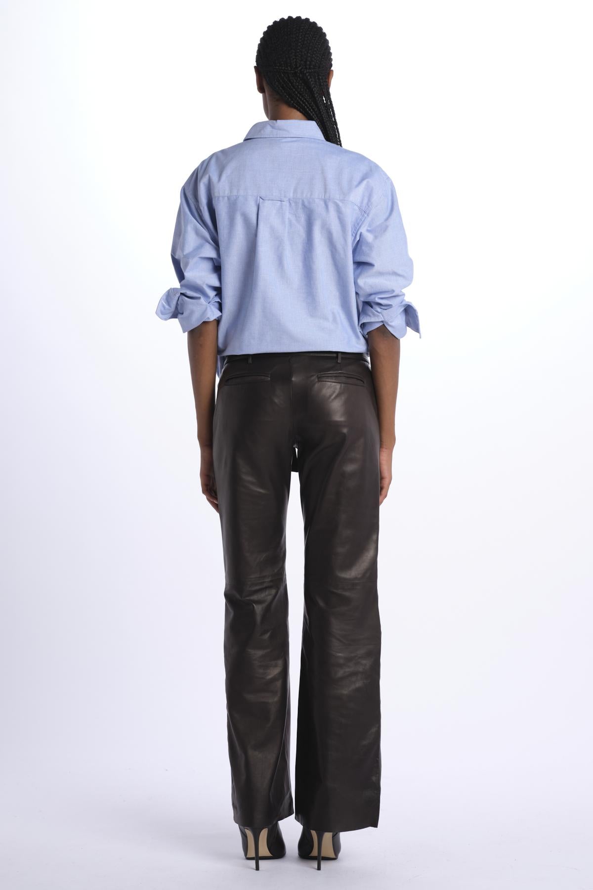 Belted trousers by milaura leather. The model is 174 cm tall and wears a 38. Composition: 100% lambskin.