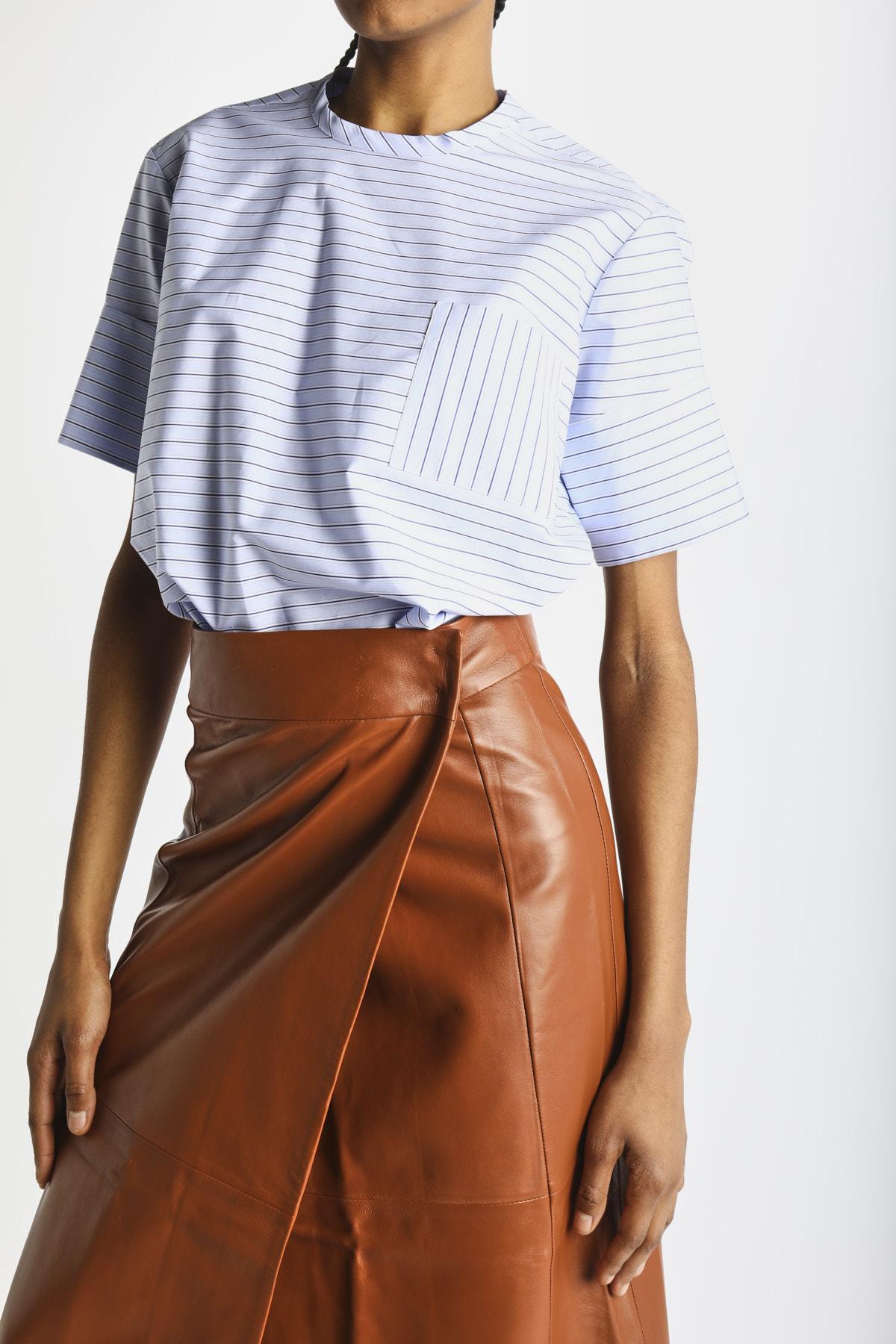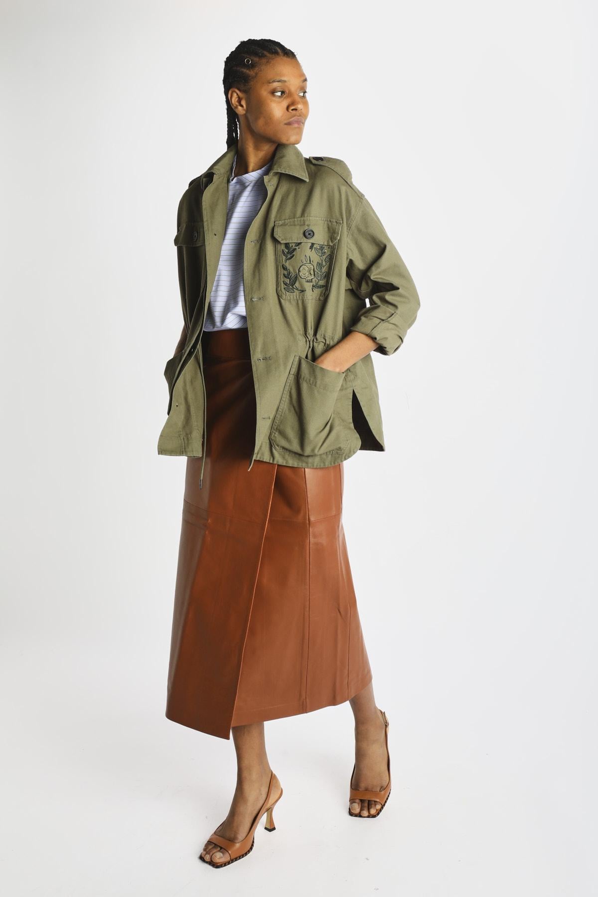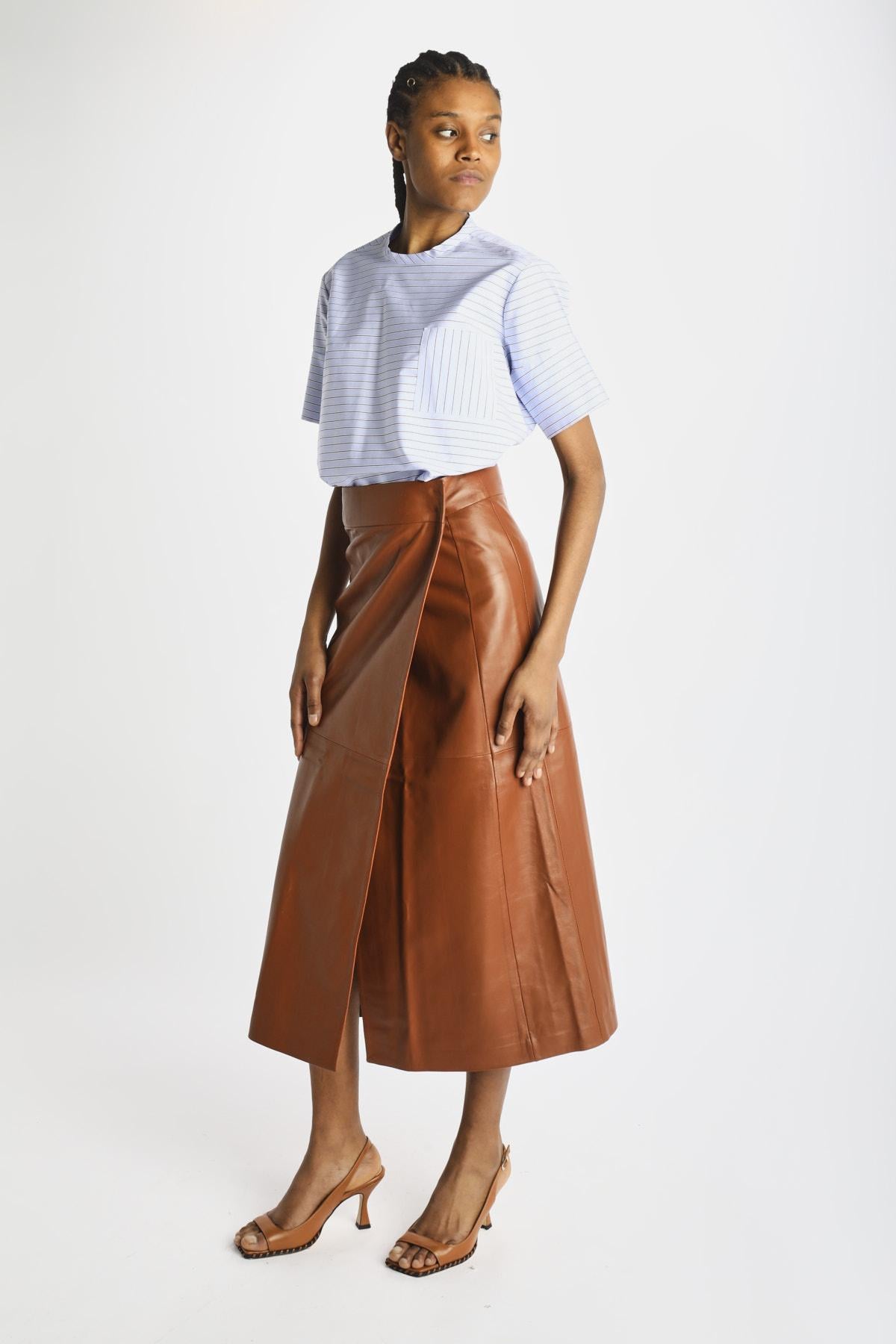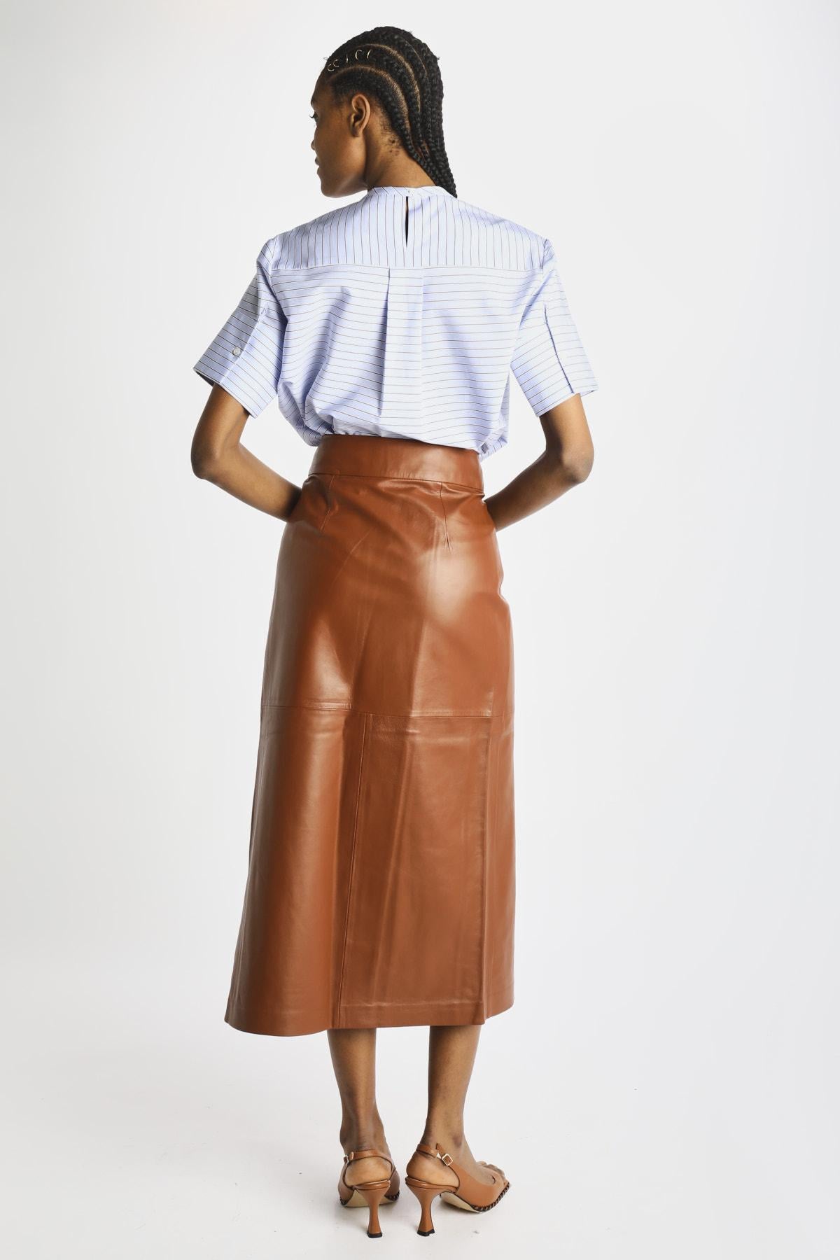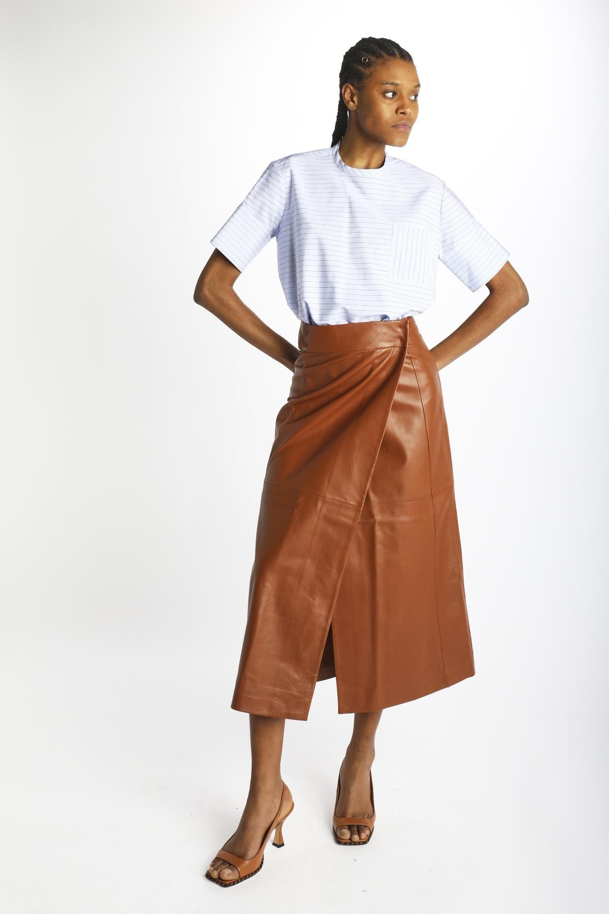 Skirt by Milaura long leather. The model is 174 cm tall and wears size 38. Composition: 100% Lambskin.