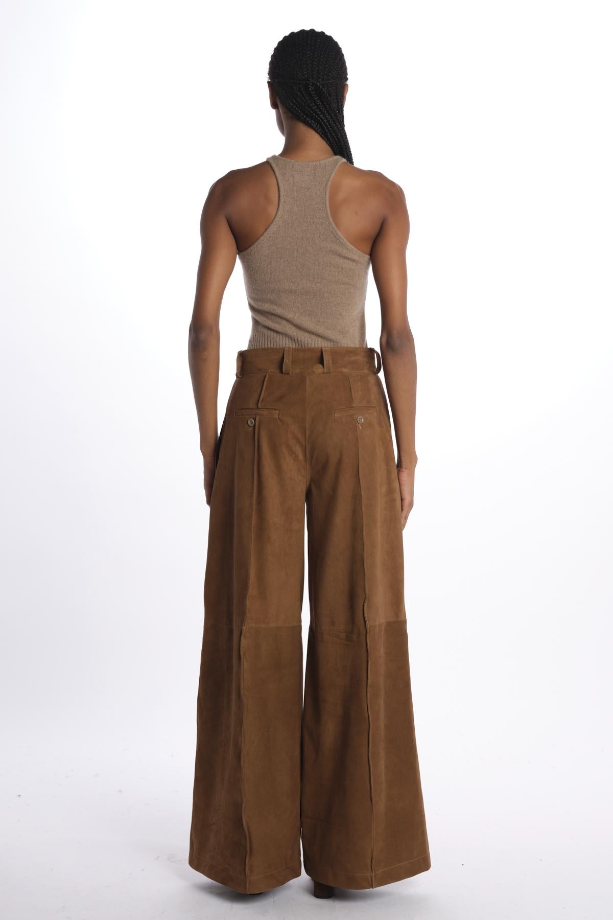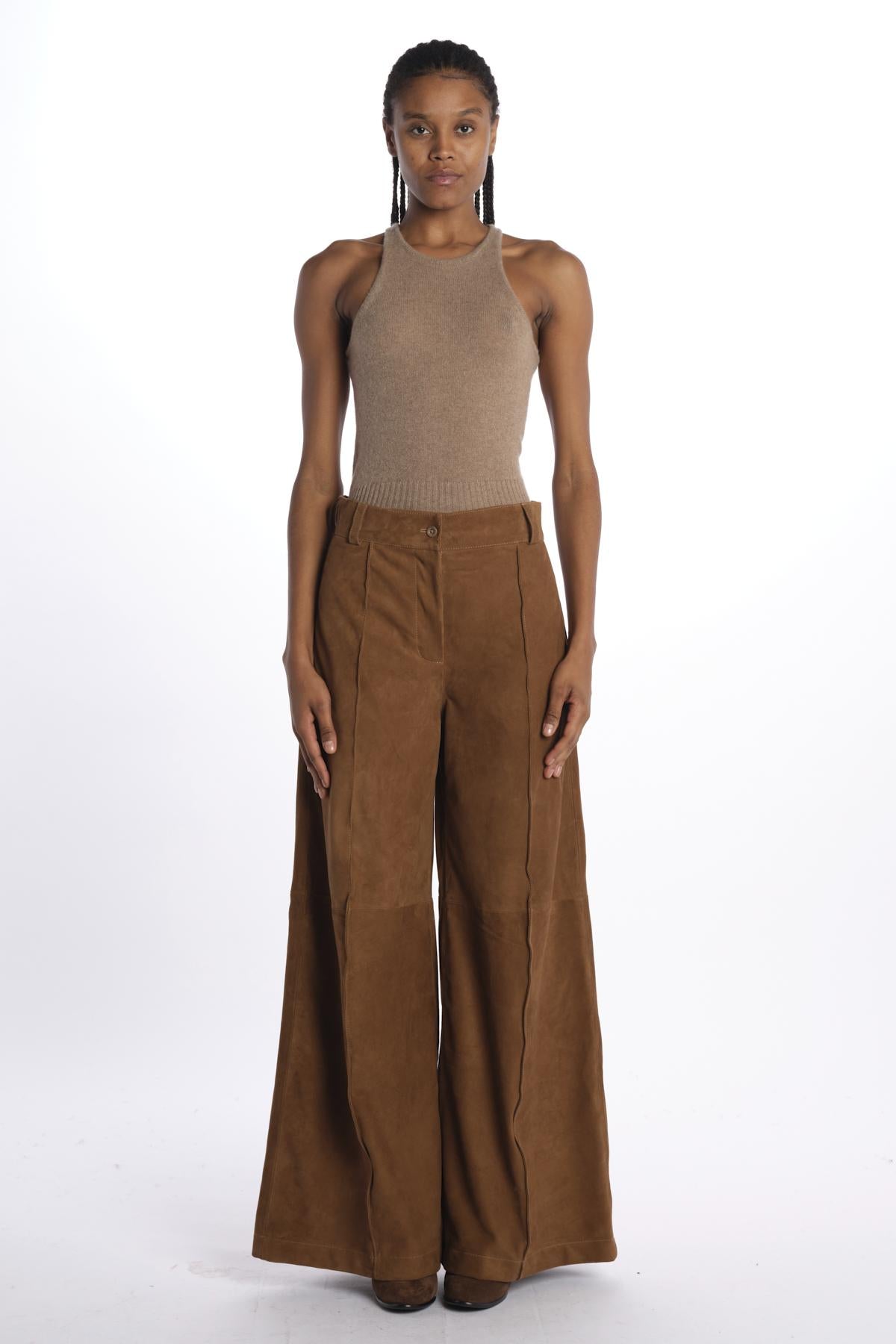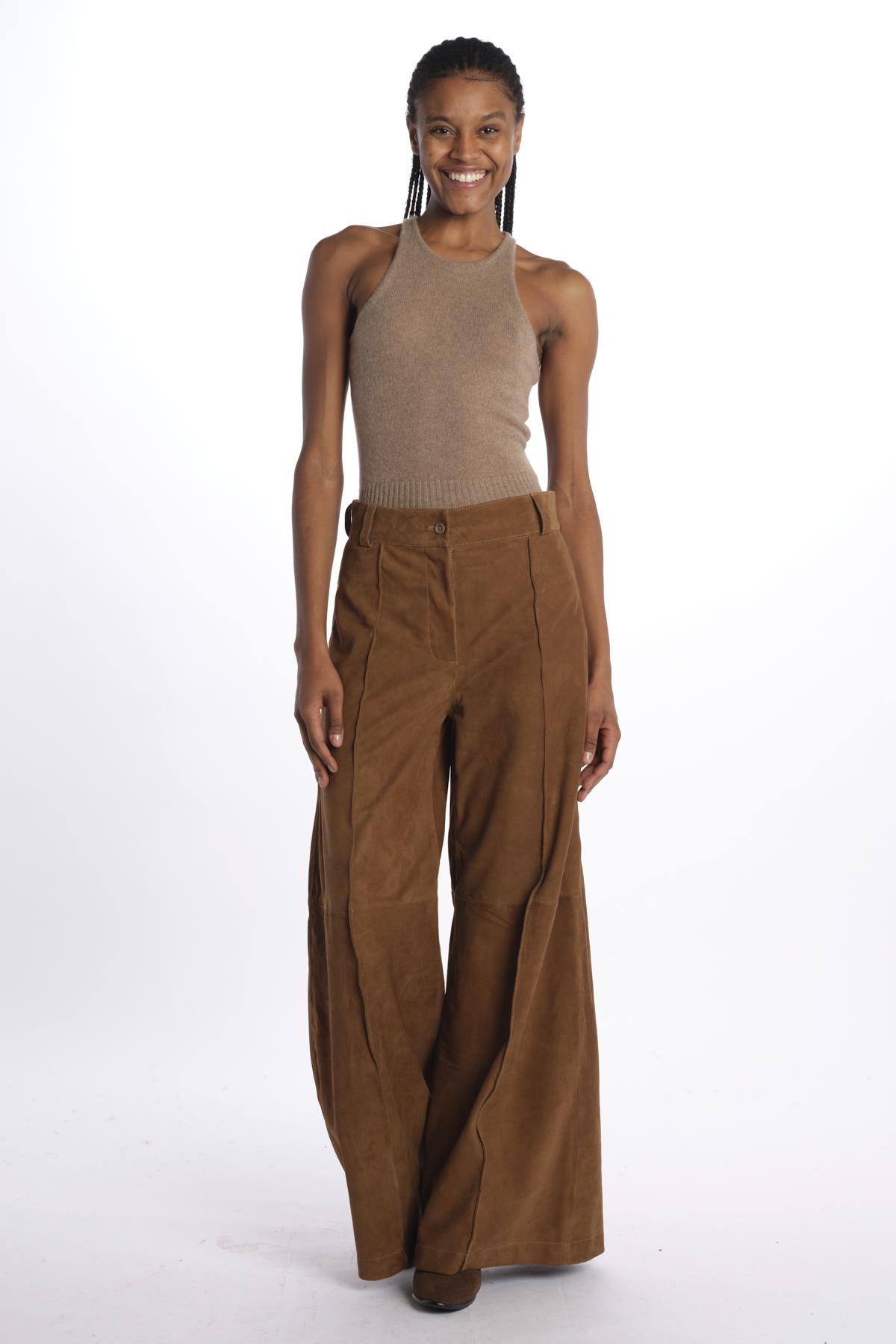 Oversized ribbed trousers by milaura leather. The model is 174 cm tall and wears a size 38. Composition: 100% lambskin.