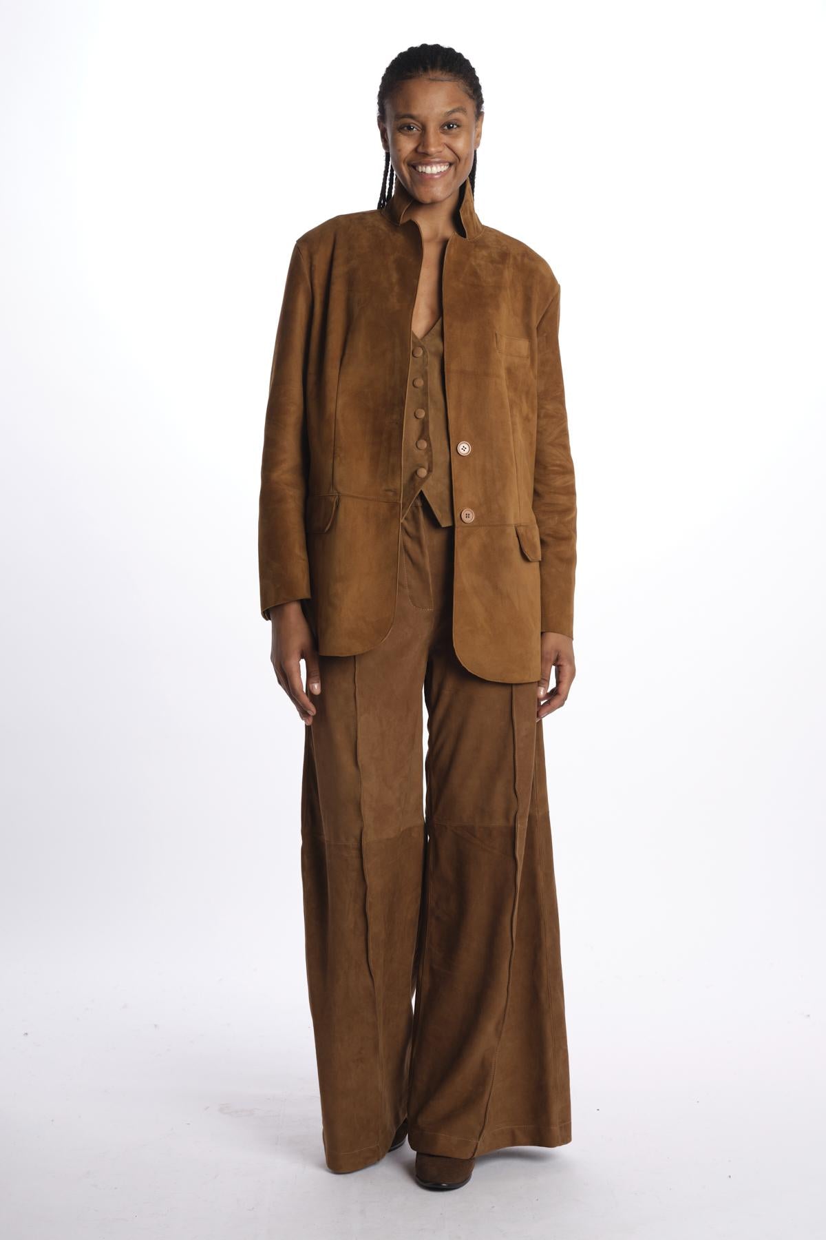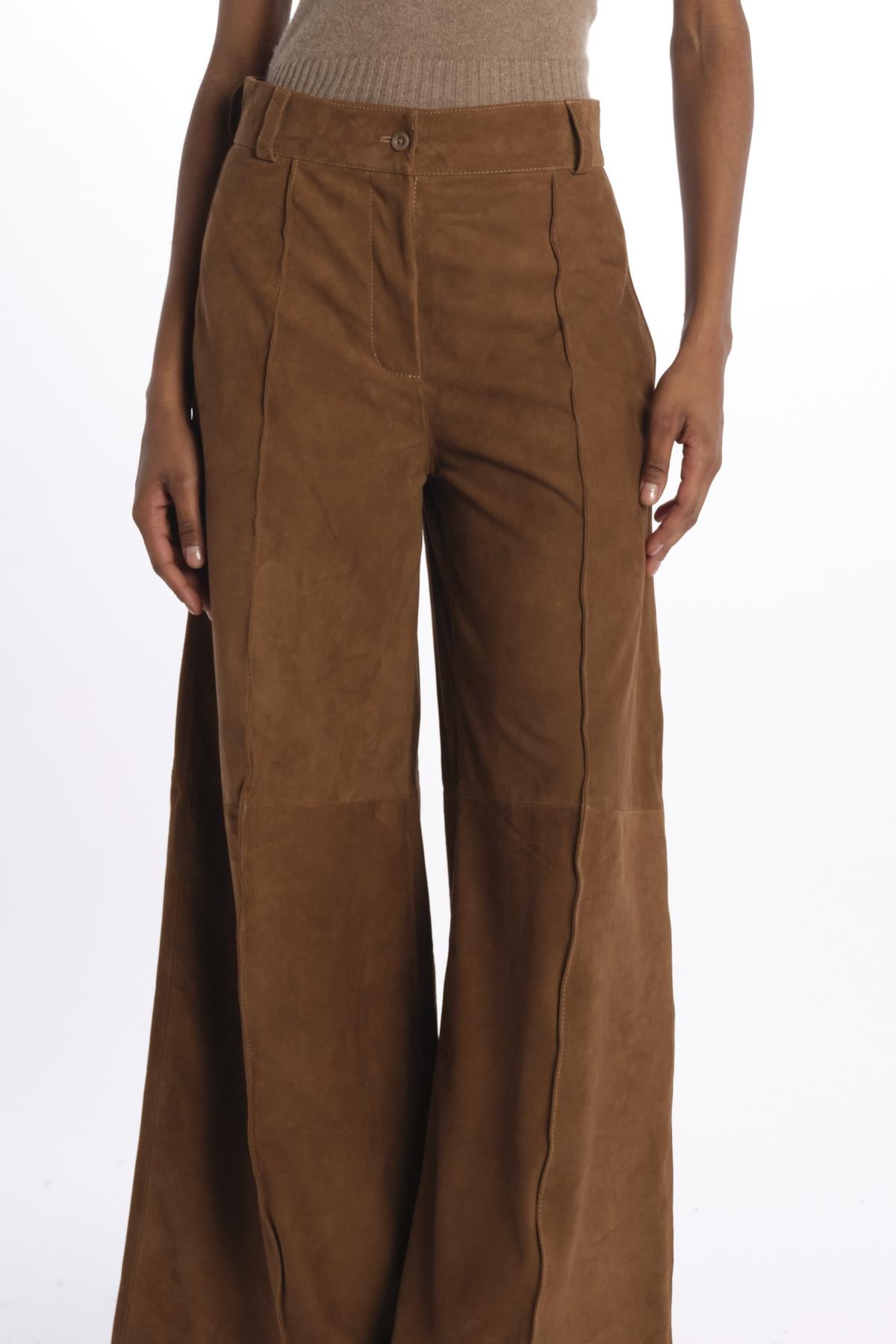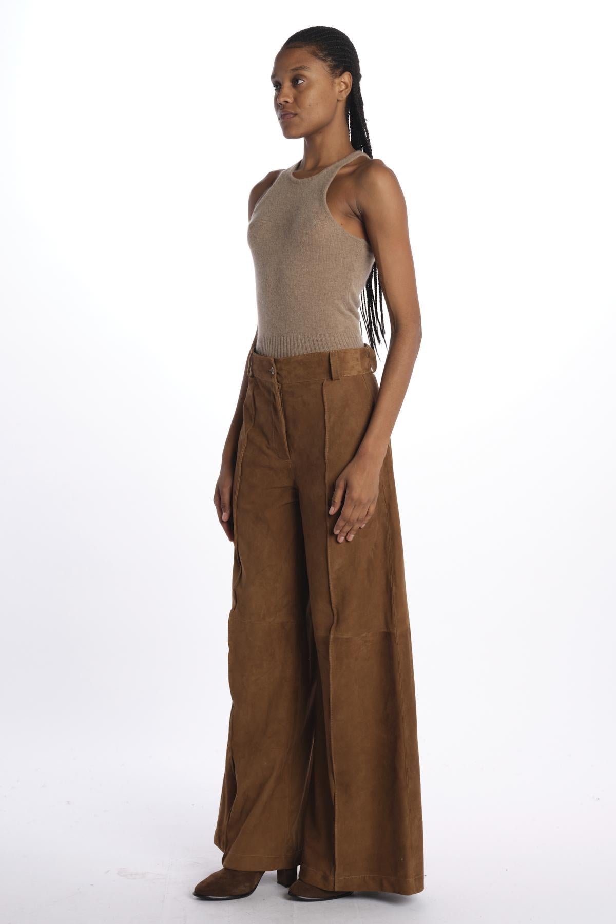 Oversized ribbed trousers by milaura leather. The model is 174 cm tall and wears a size 38. Composition: 100% lambskin.