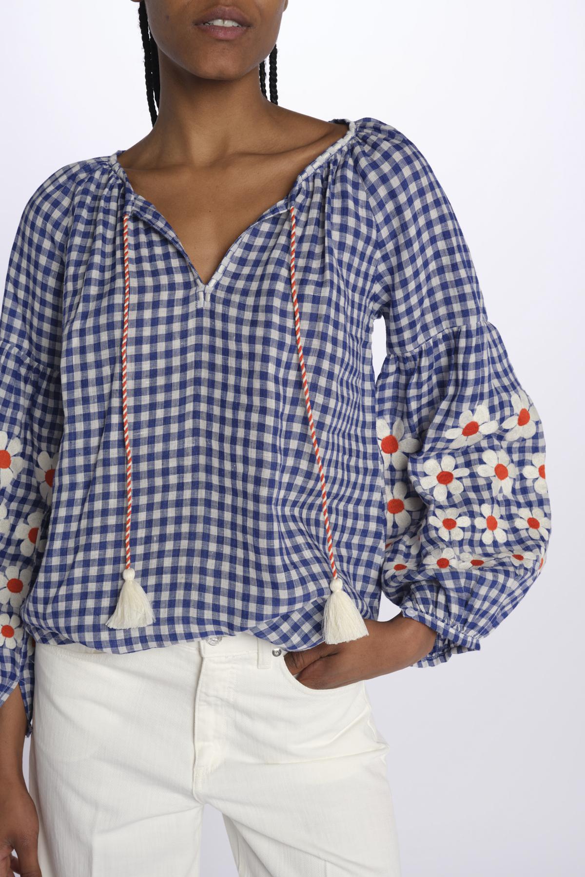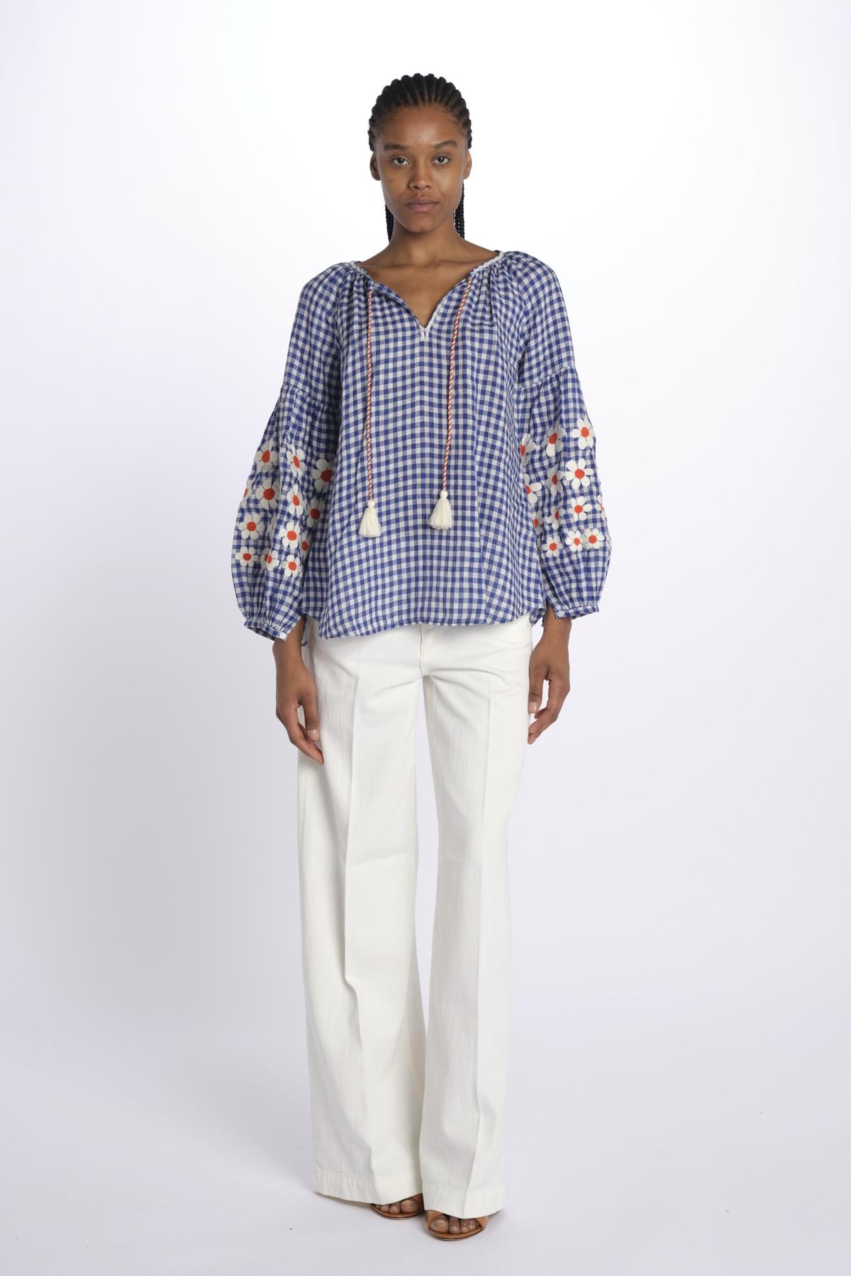 MANDAVILLA CHECKED shirt with embroidered flowers on the sleeve by milaura.