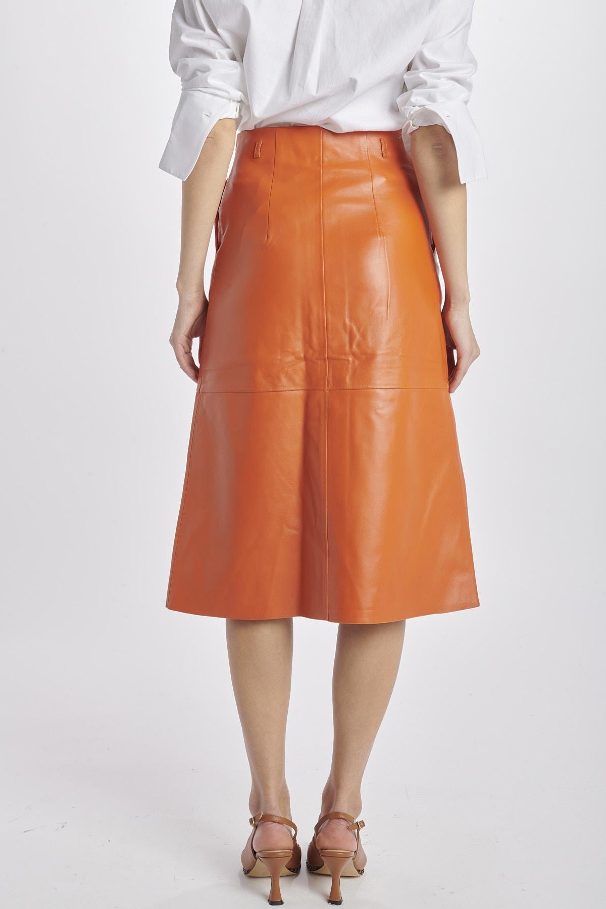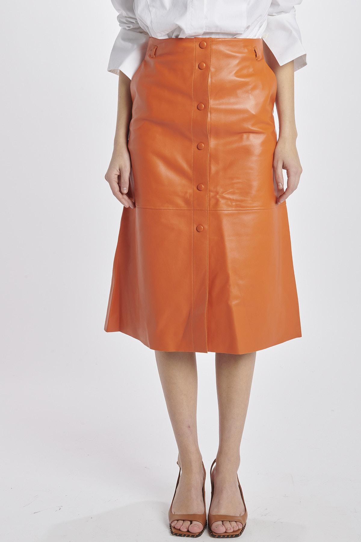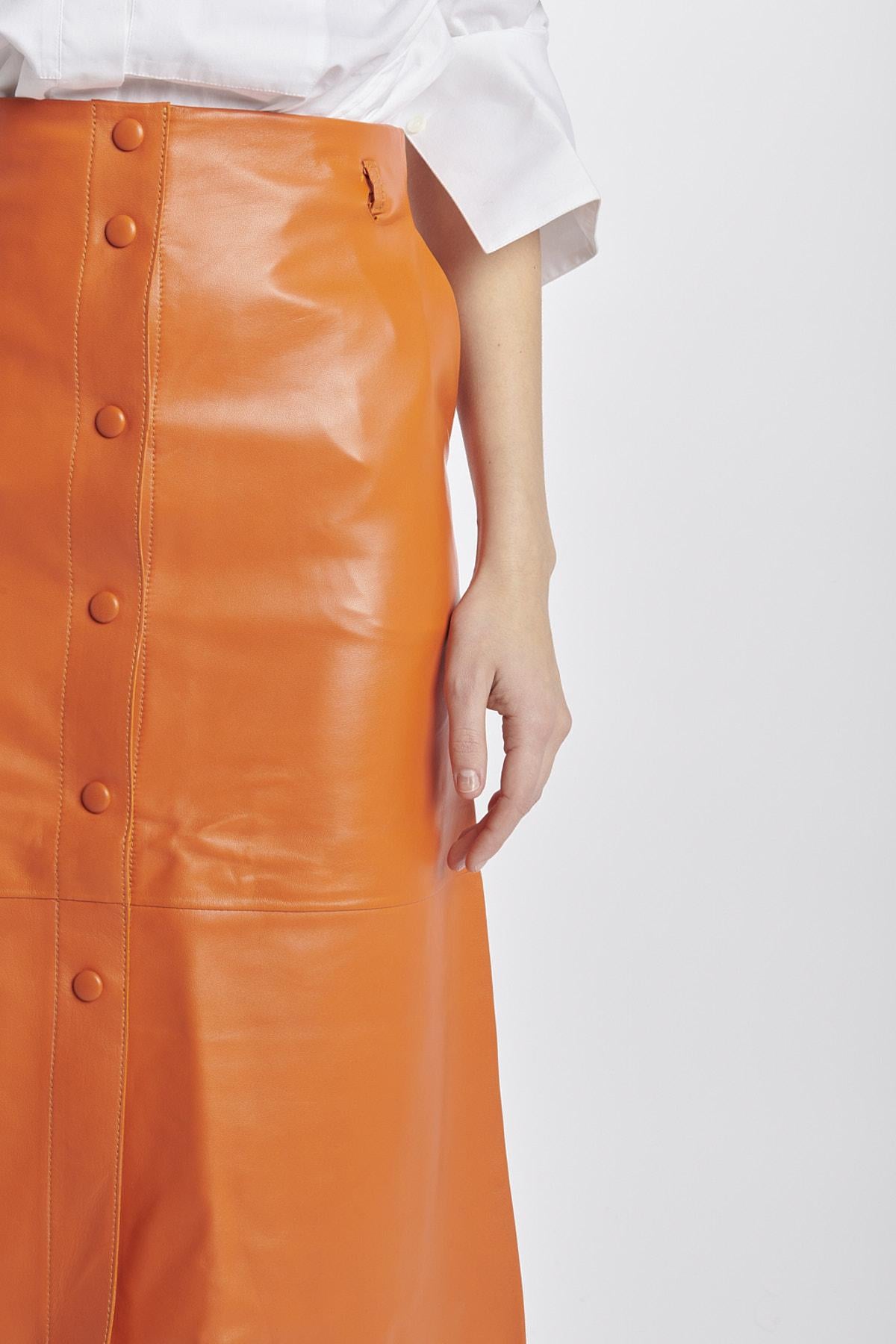 Skirt by Milaura in leather with button detail, The model is 174 cm tall and wears size 38, Composition: 100% Lambskin