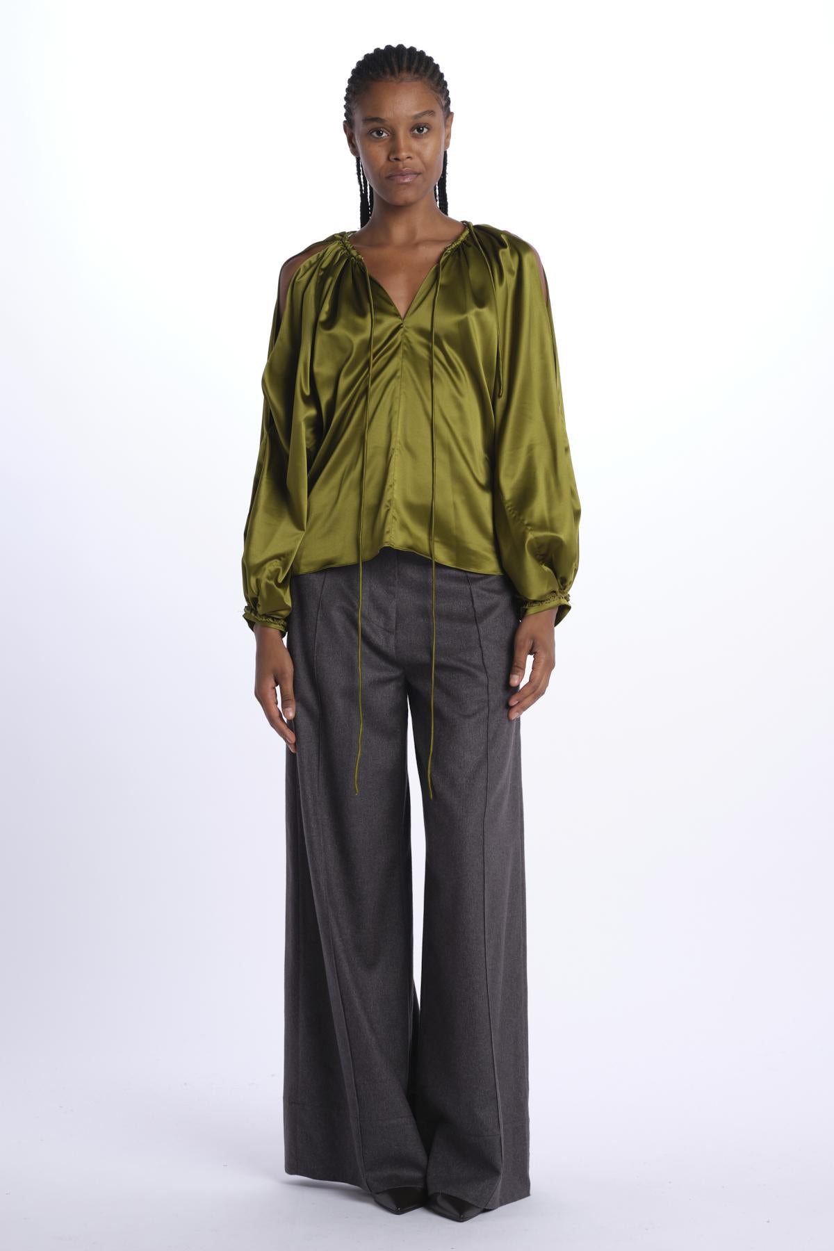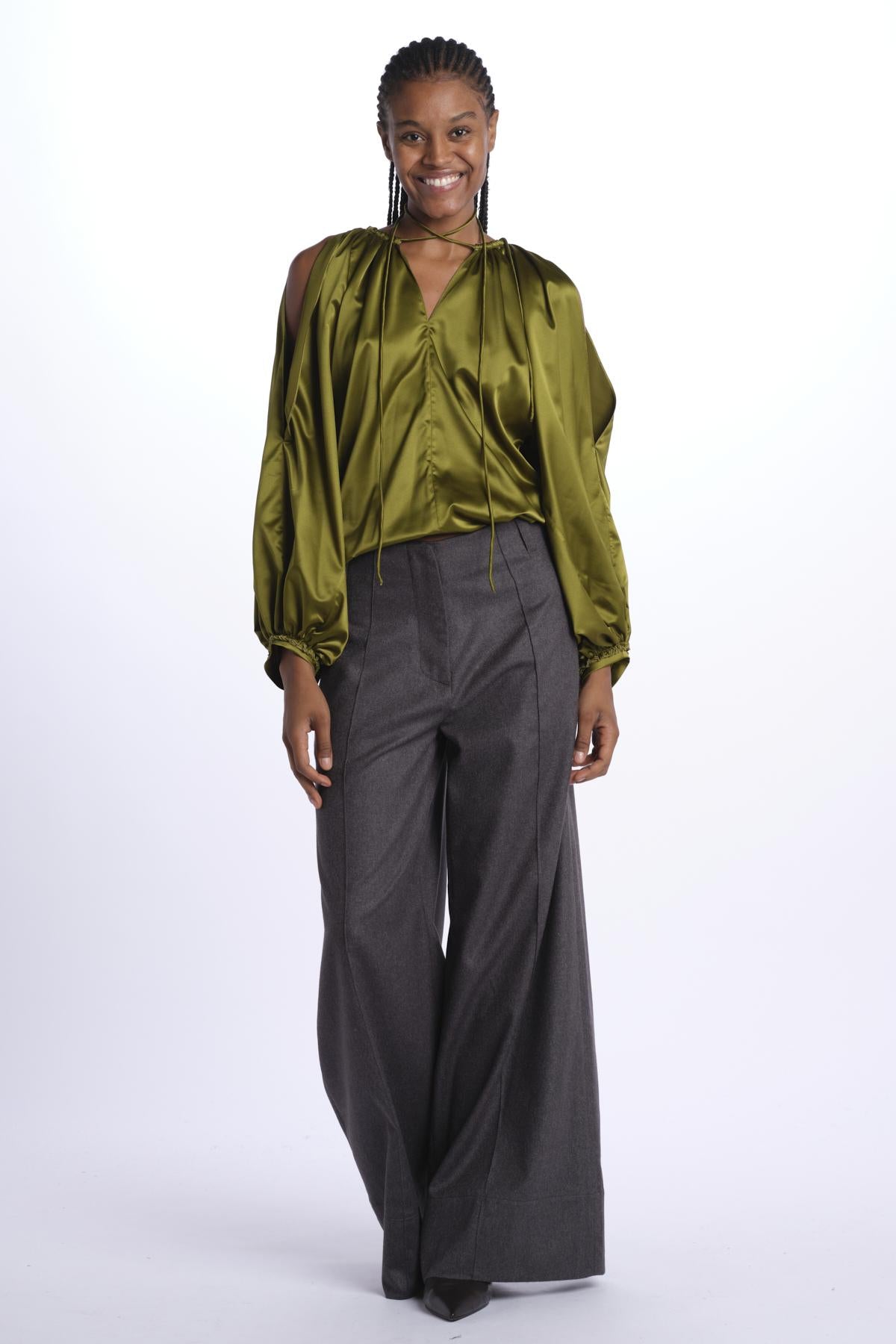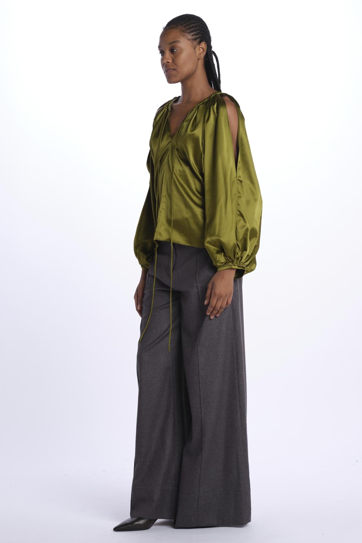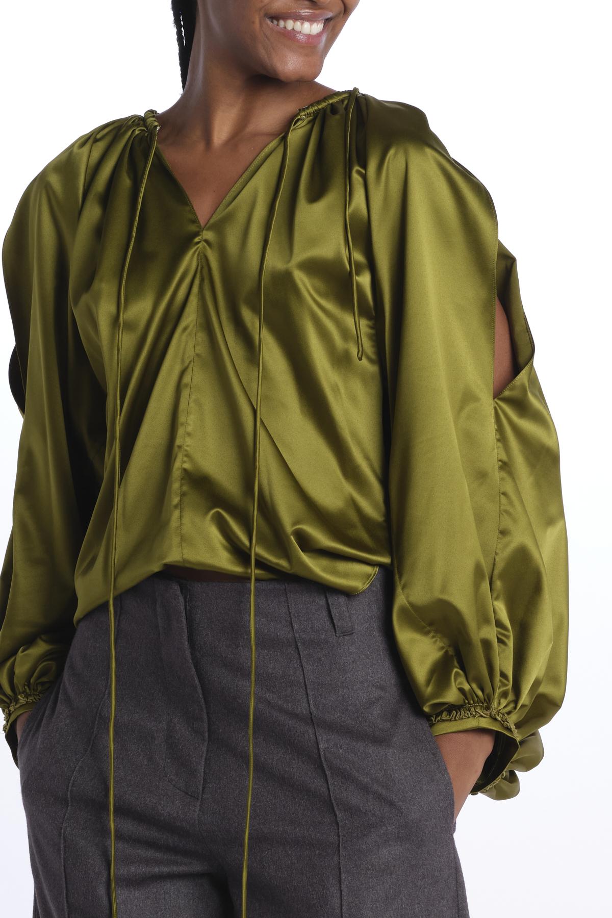 Oversized puffed shirt by milaura. The model is 174 cm tall and wears a 38. Composition: 97% polyester, 3% elastane.