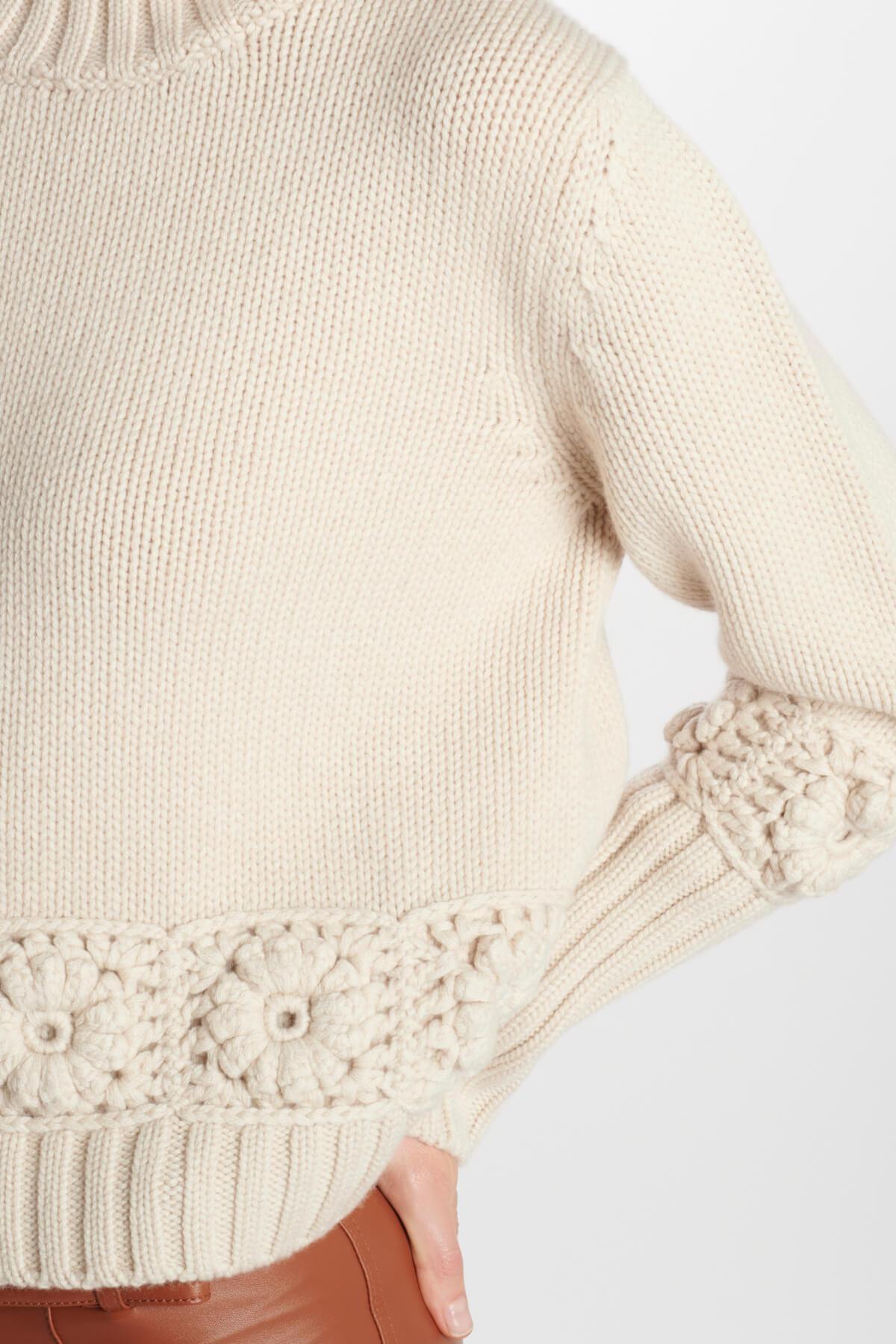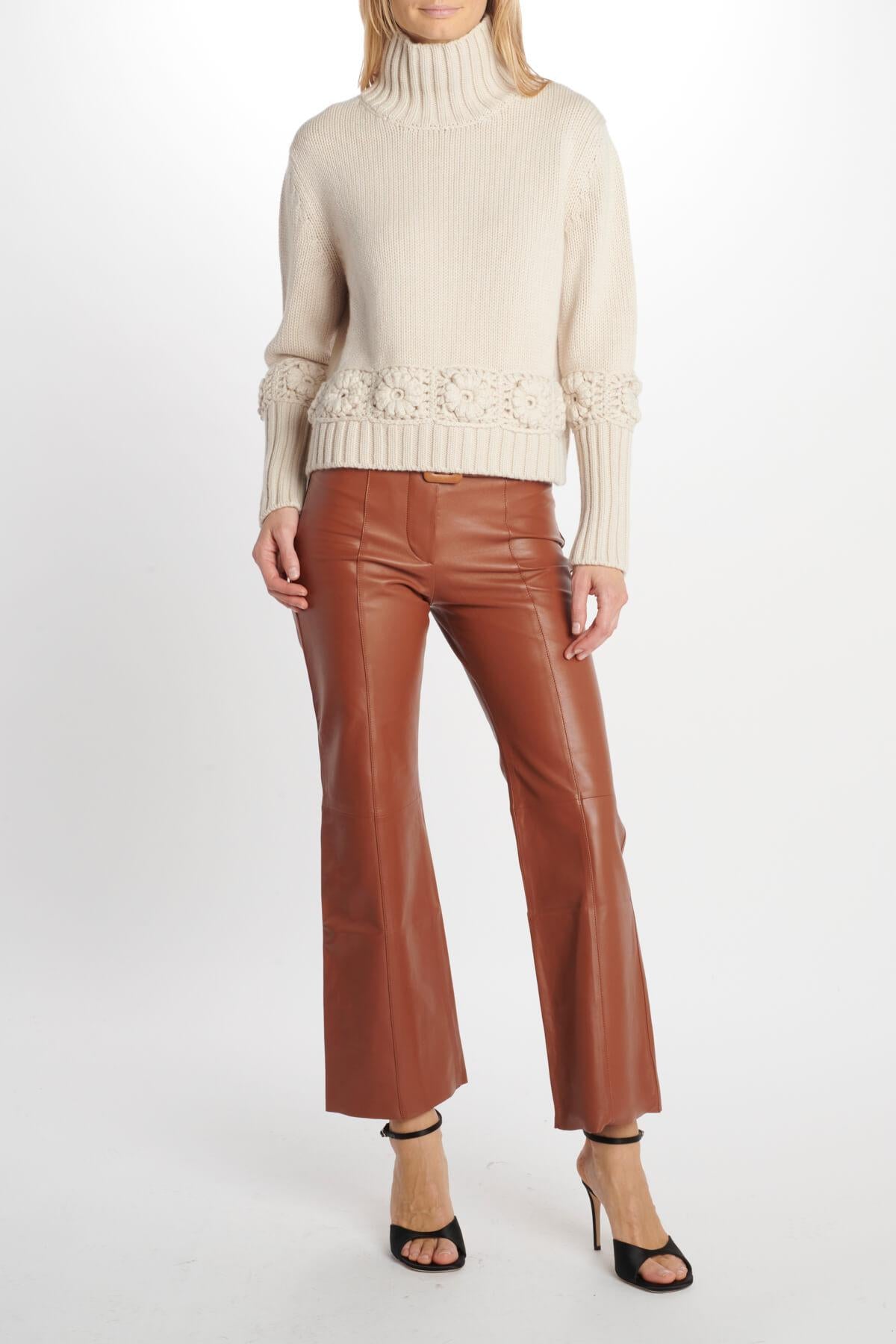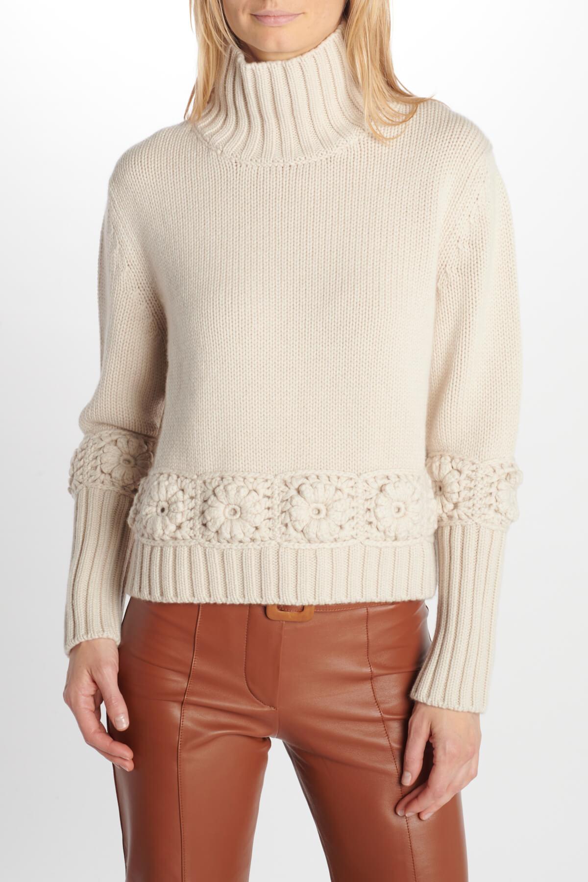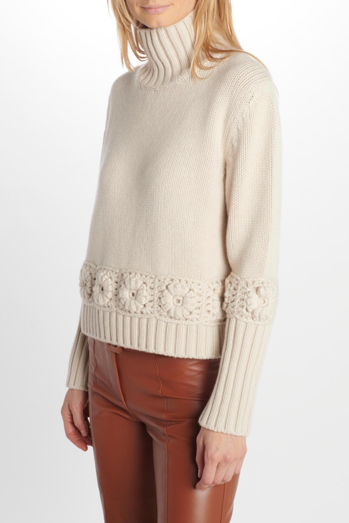 Milaura Cashmere Sweater with Floral Details. The model is 1.77m tall and wears size S. Composition: 100% Cashmere