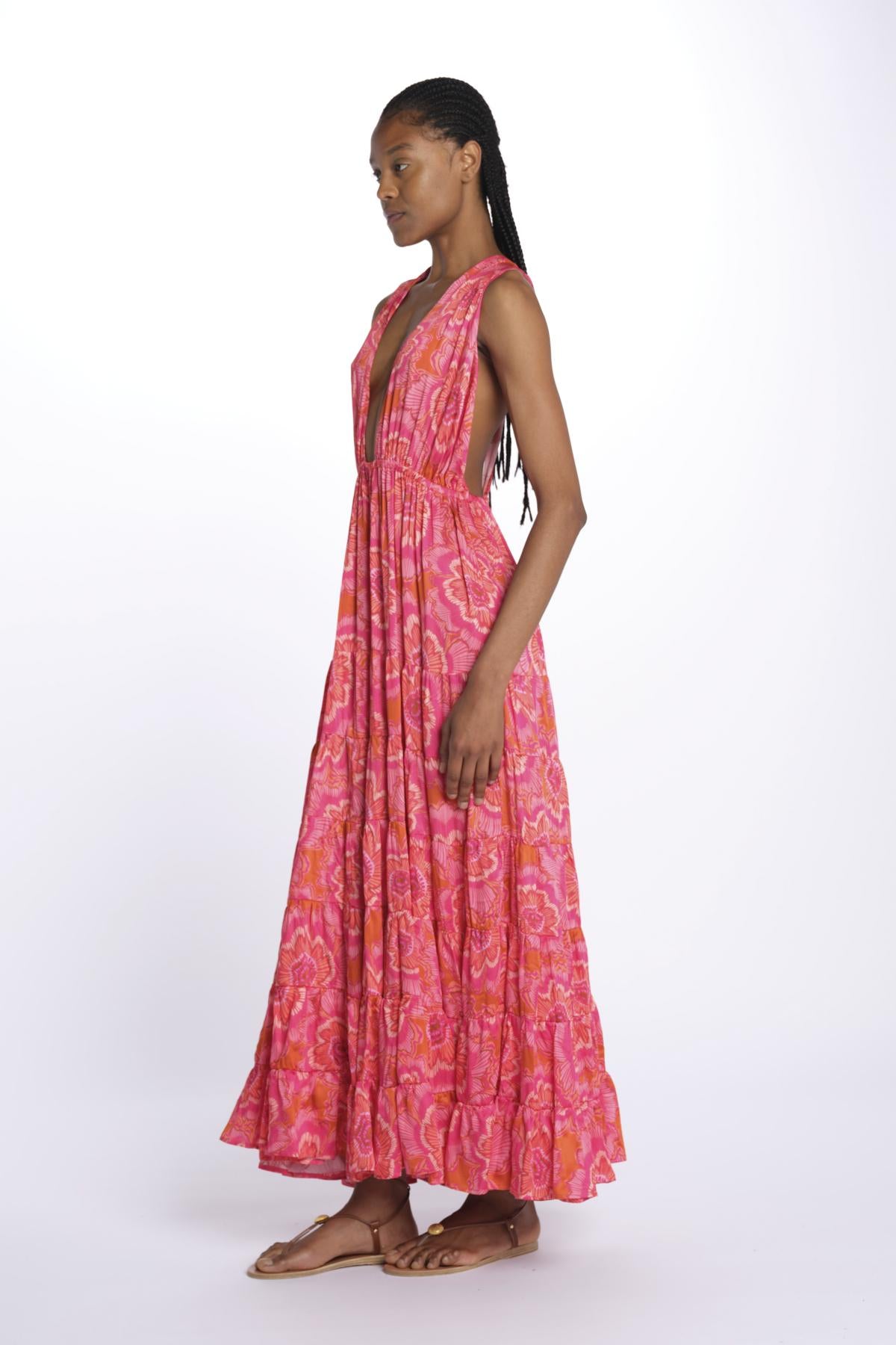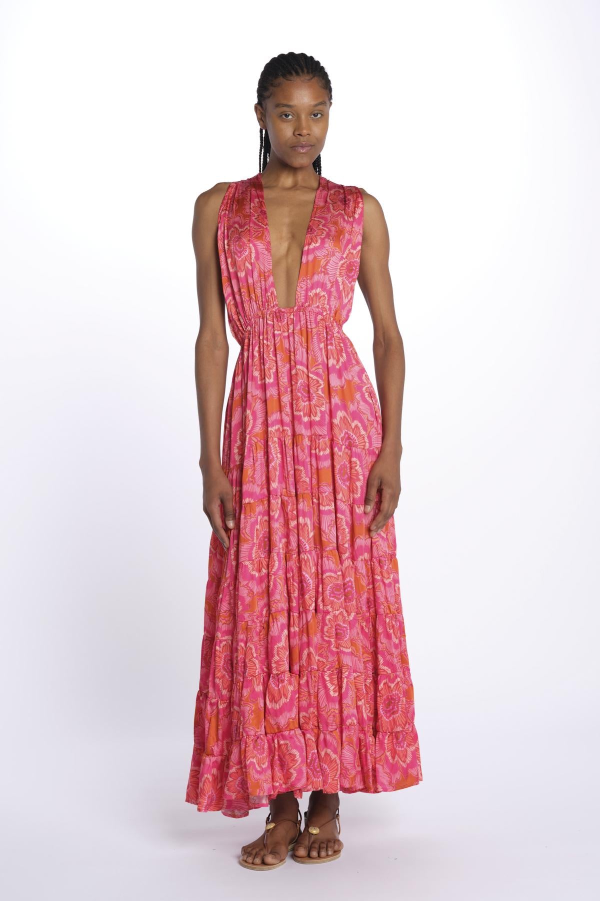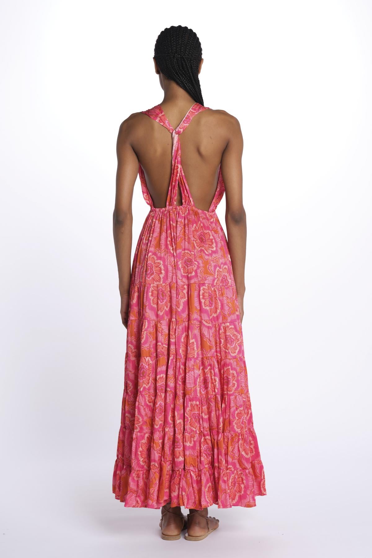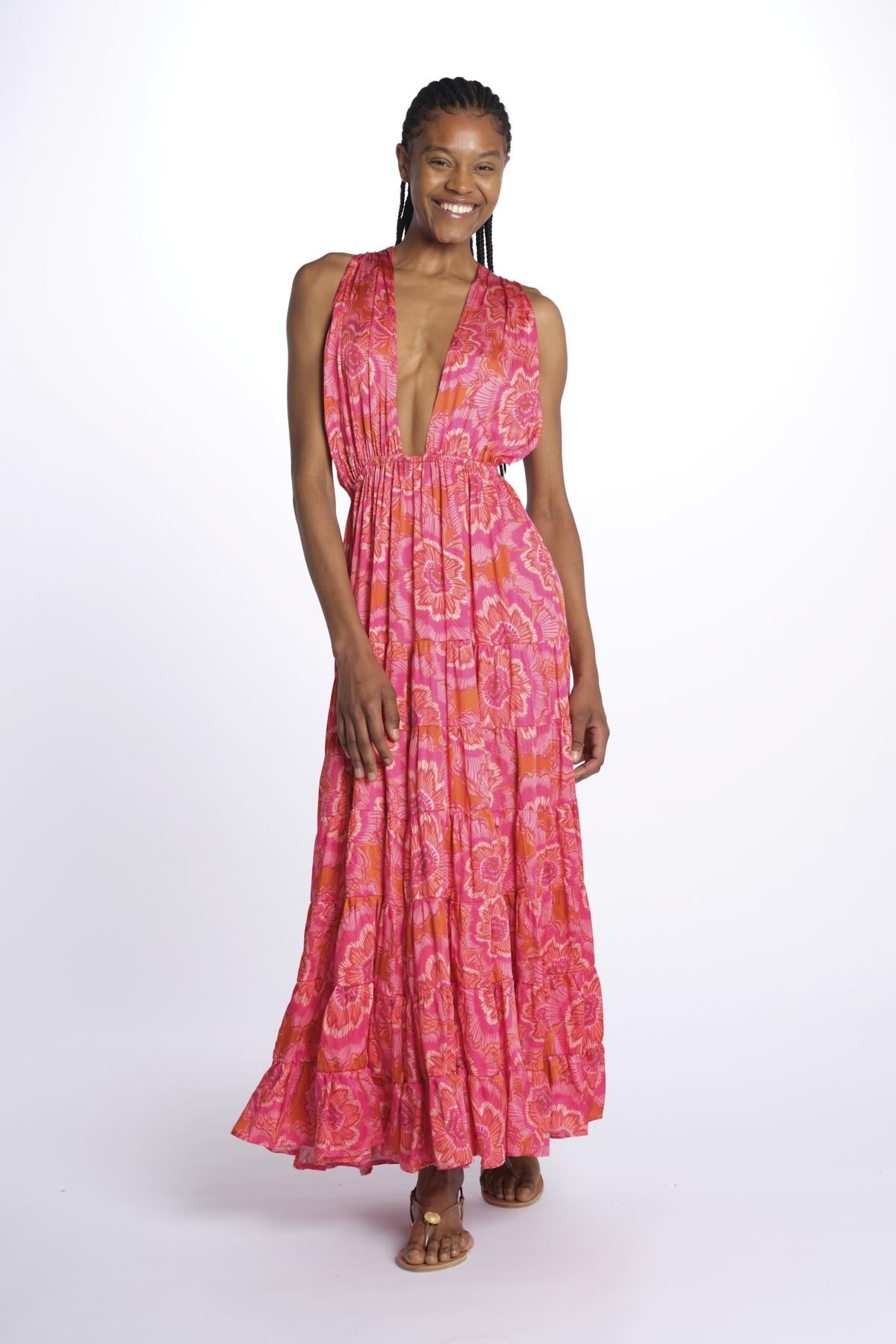 SUZIE mini dress with crossover neckline and flower embroidery by sundress. The model is 174 cm tall and wears a size S. Composition: 65% cupro, 35% modal.