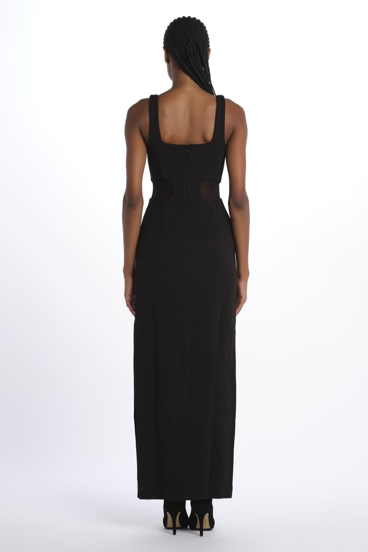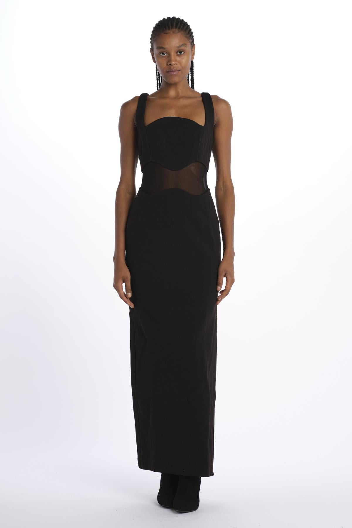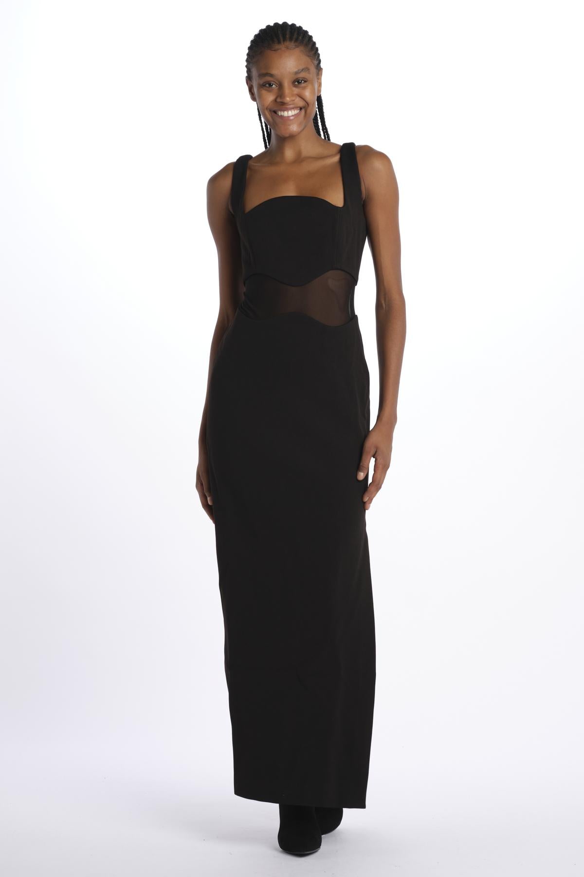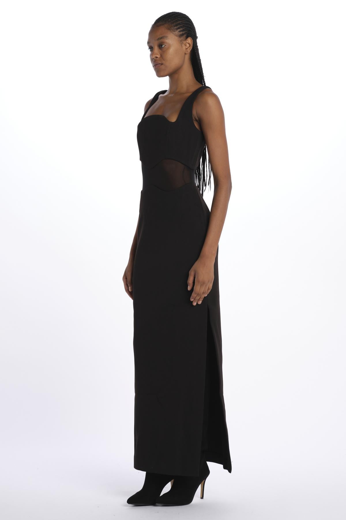 DAMITA long dress with tulle insert by misha. The model is 174 cm tall and wears a size S. Composition: 95% polyester, 5% elastane.