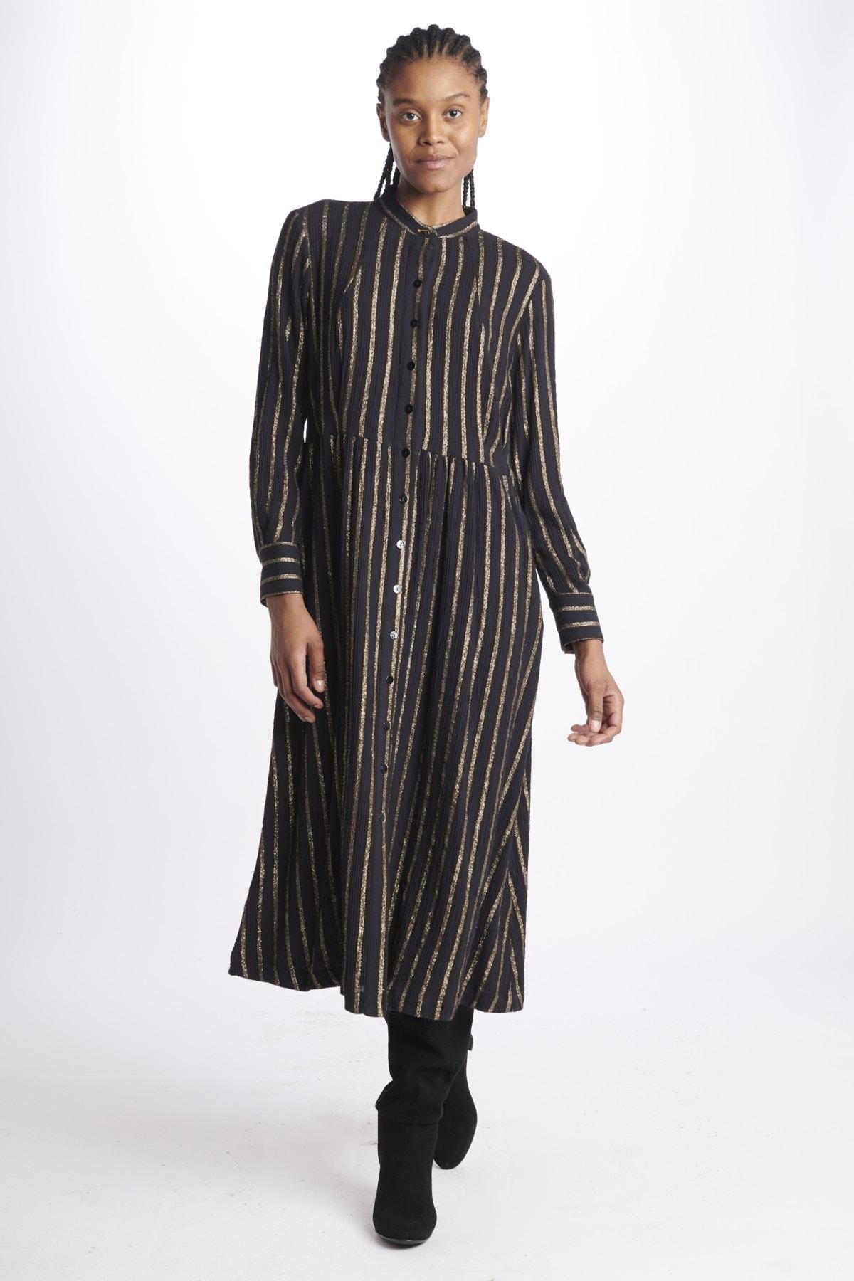 Gold Striped Longuette Dress