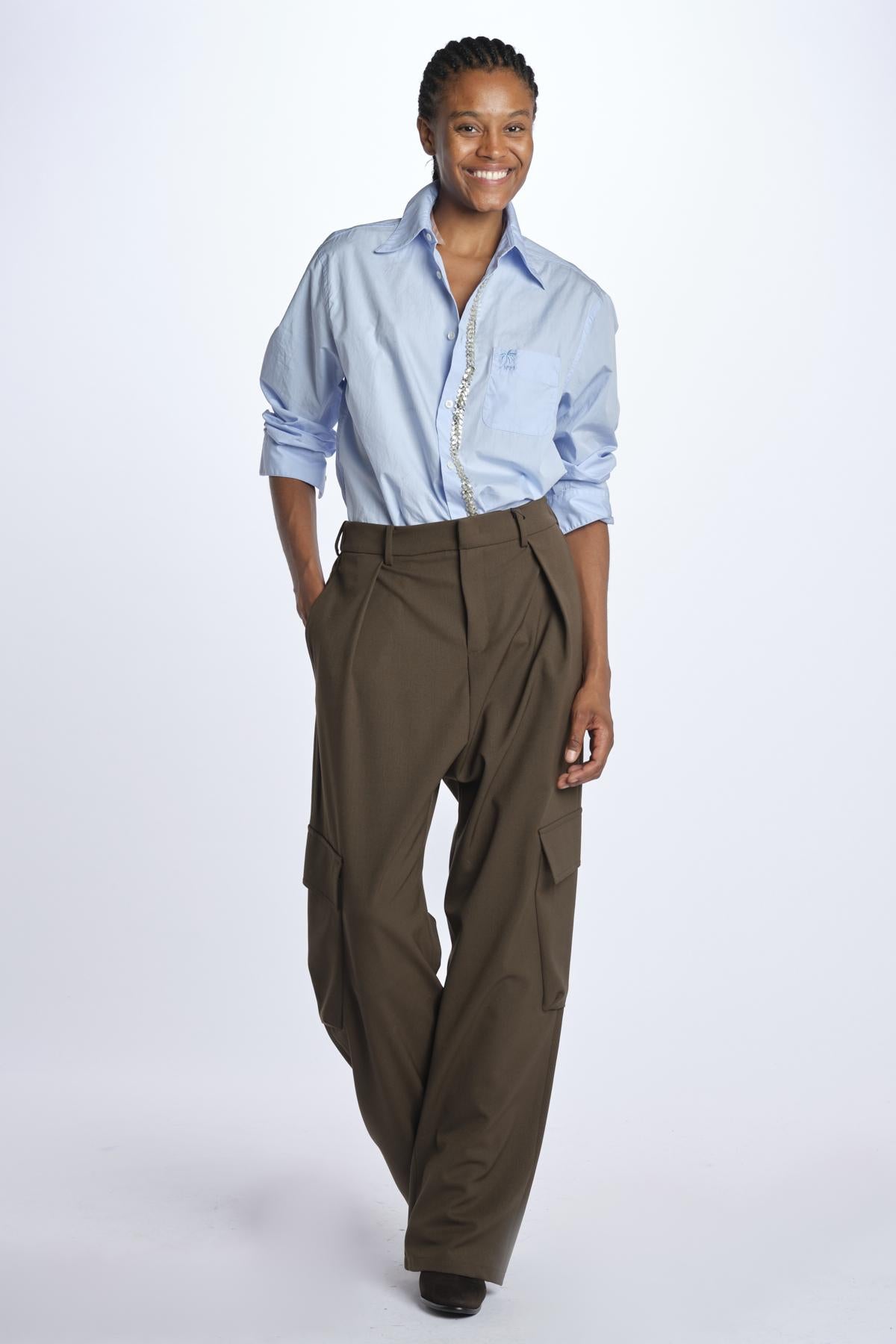 Trousers by n21 with pockets. The model is 174 cm tall and wears a 38. Composition: 53% polyester, 43% wool, 4% elastane.