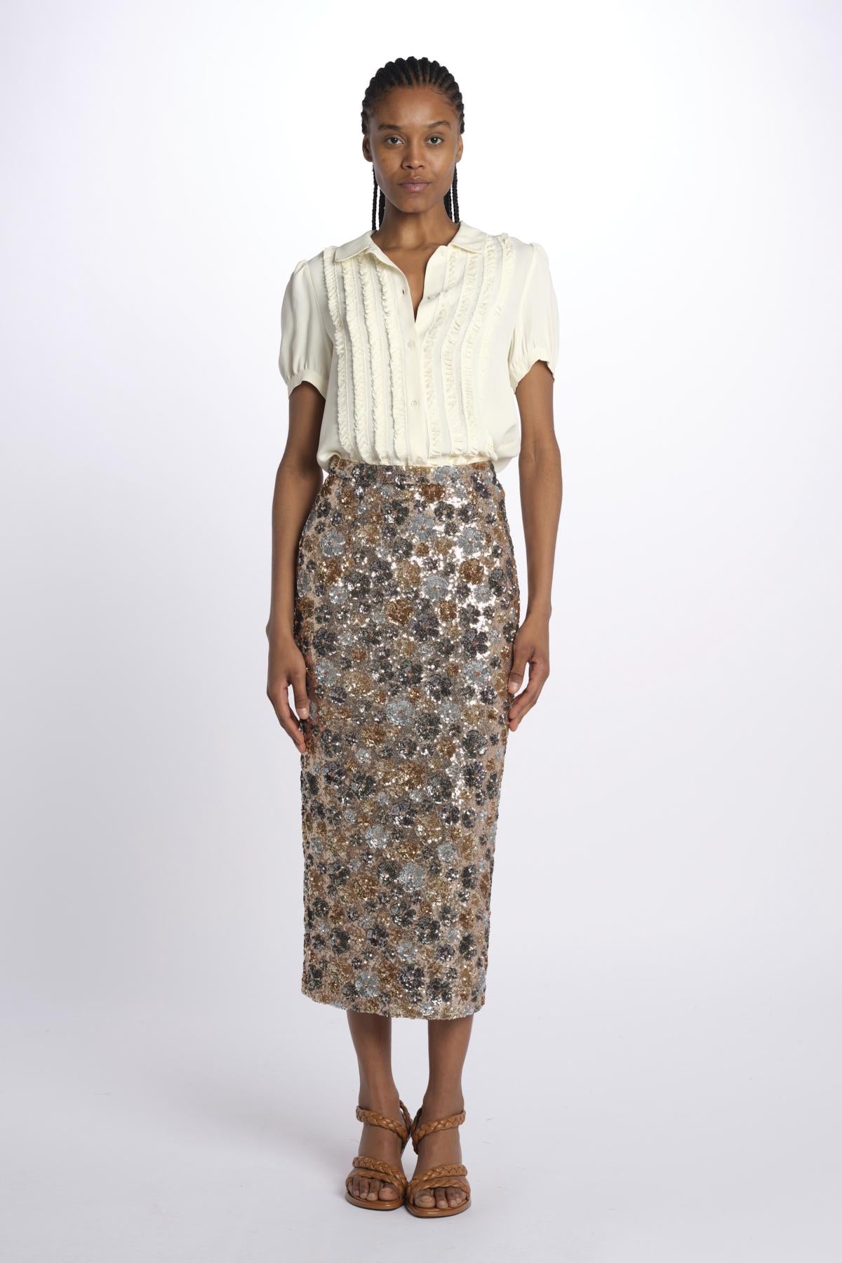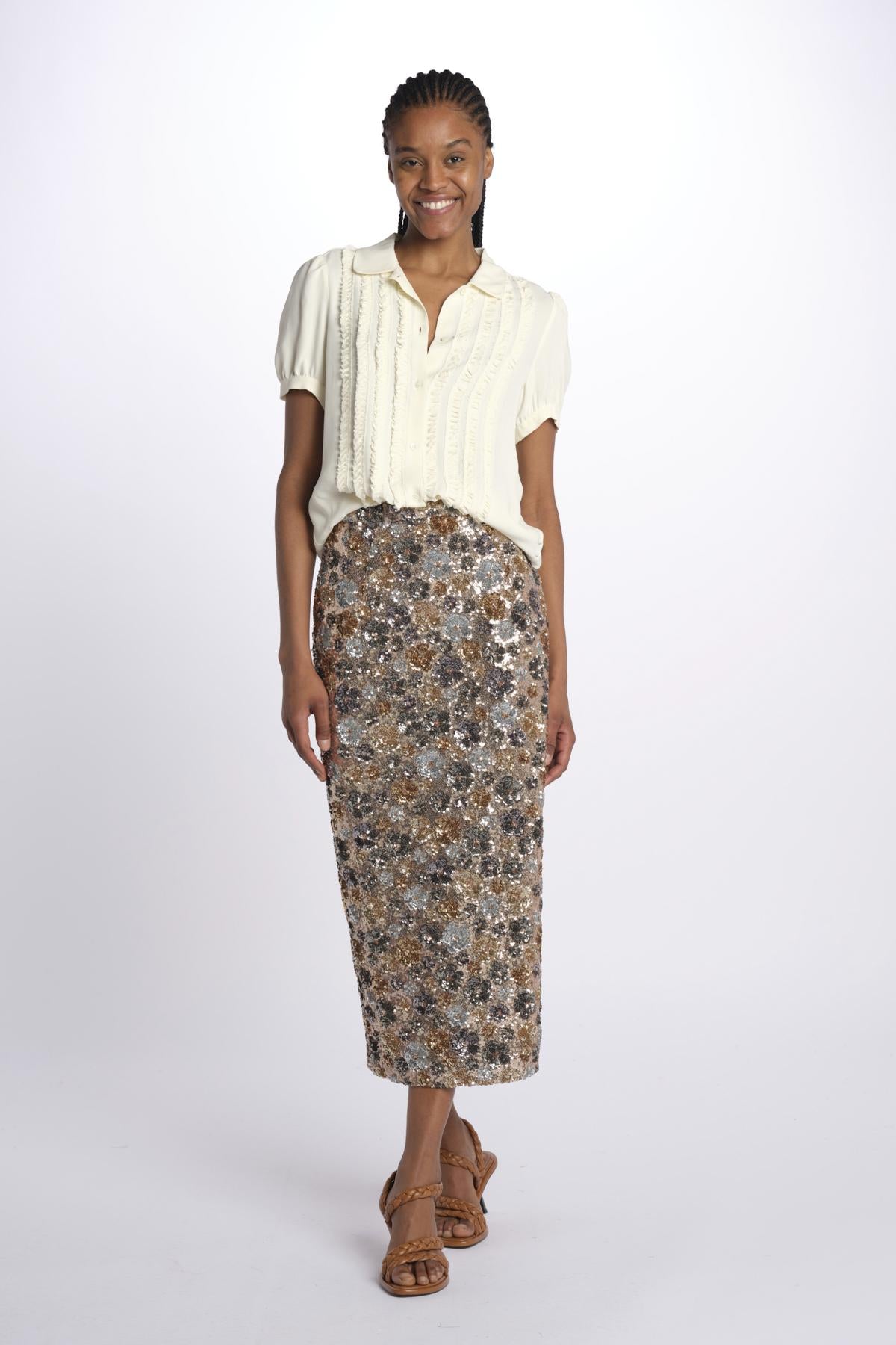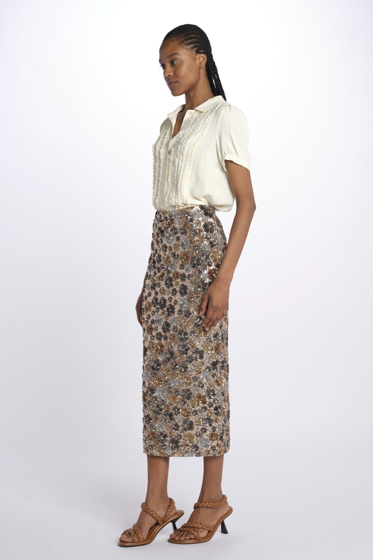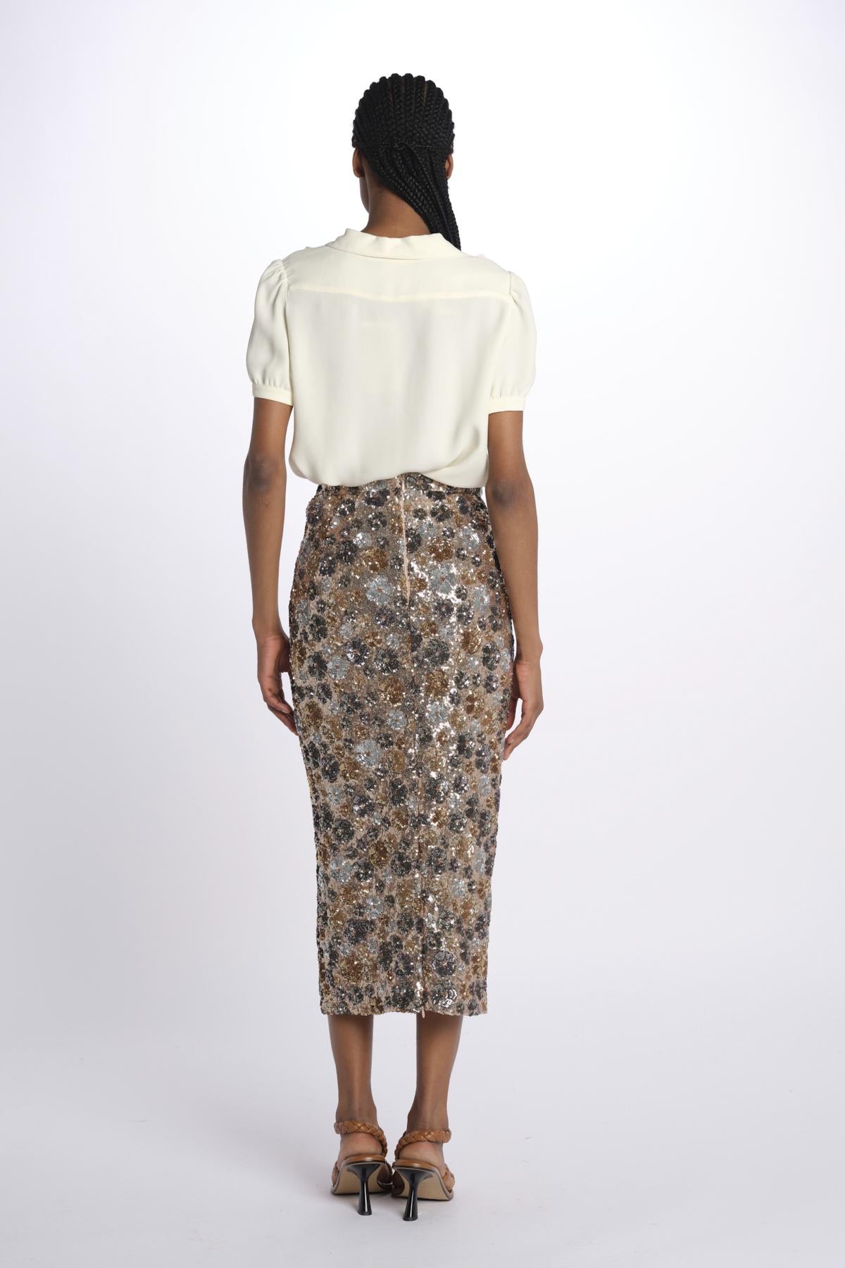 Sequined lounge skirt by N21. The model is 174 cm tall and wears a size 40. Composition: 100% polyester.