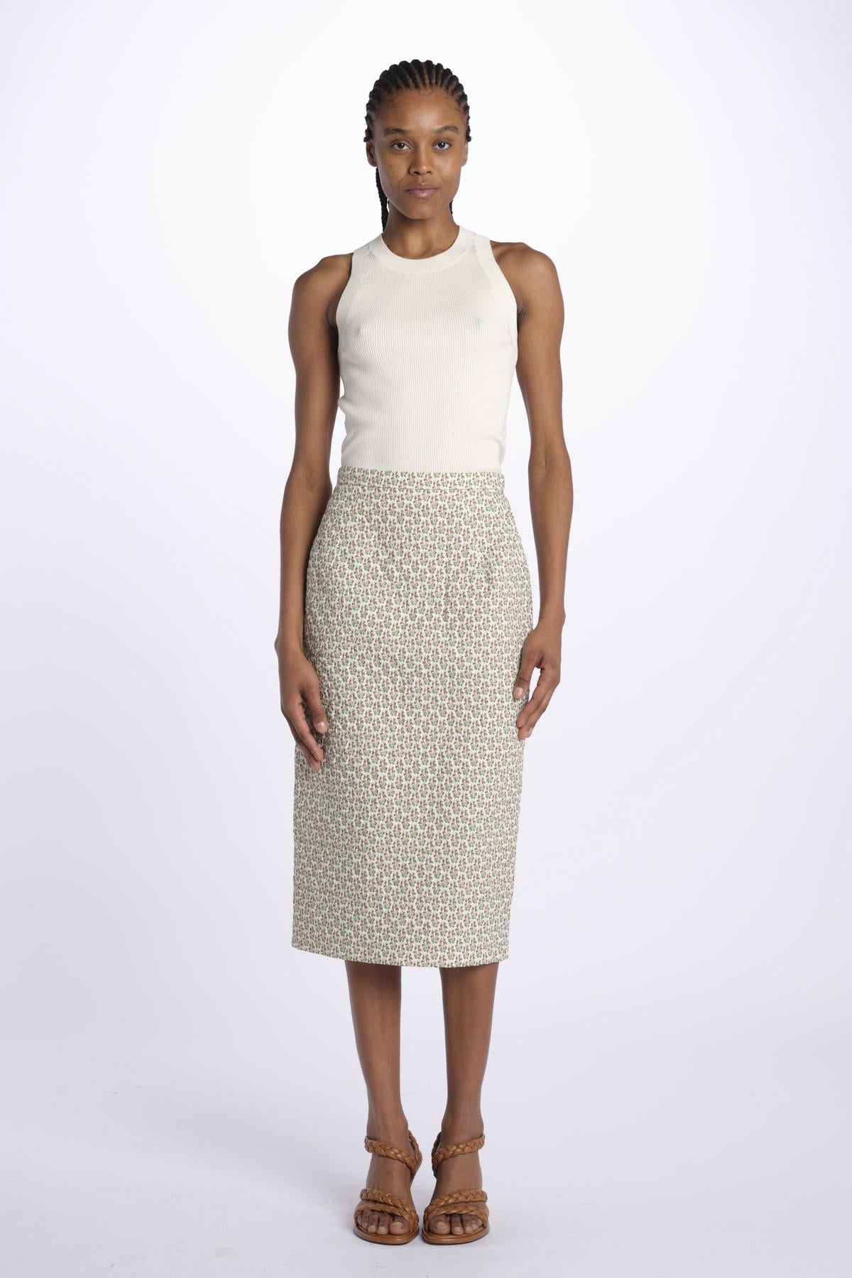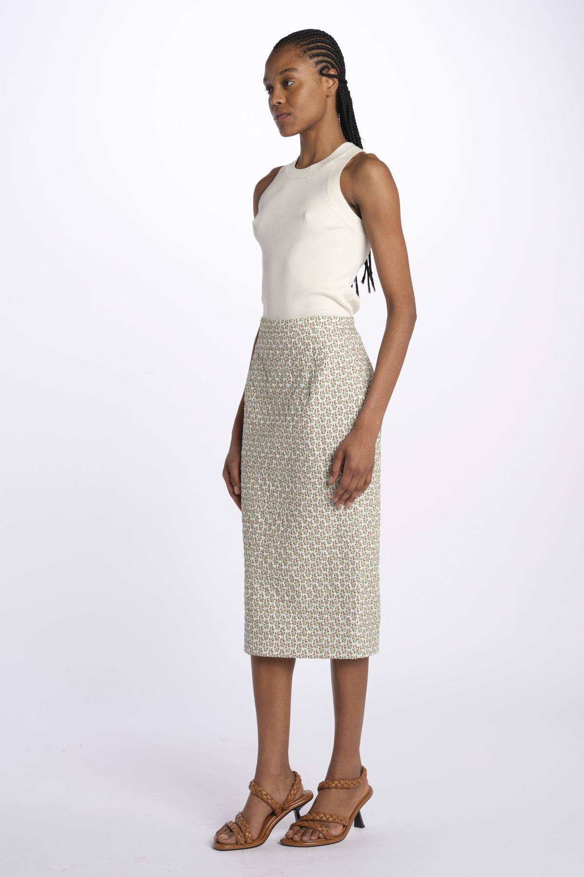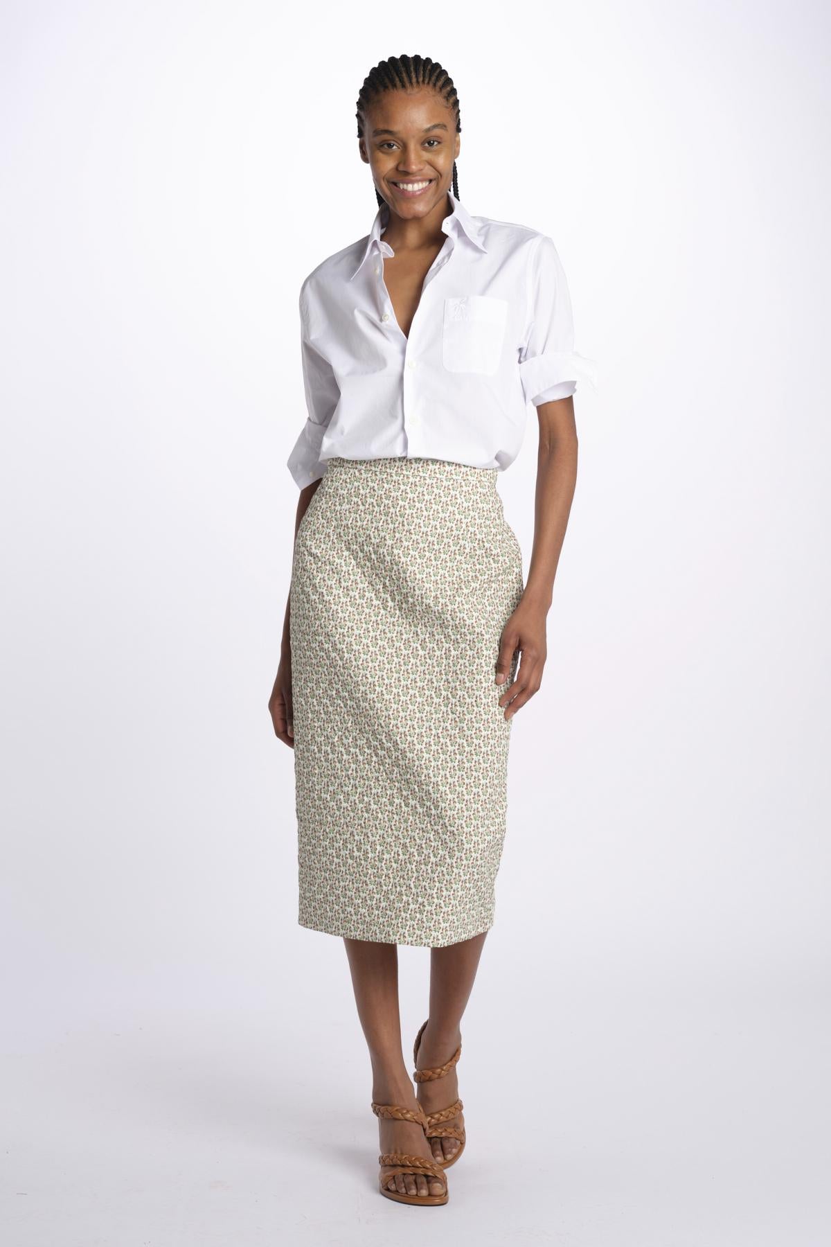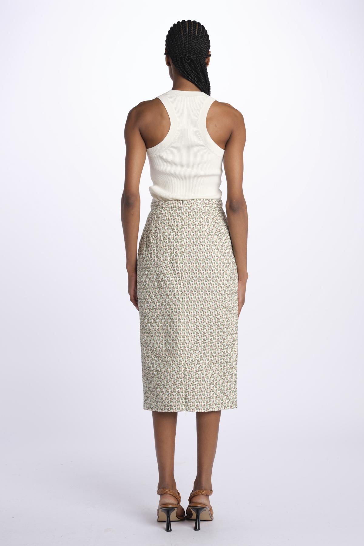 Liberty print skirt by N21. The model is 174 cm tall and wears a size 38. Composition: 100% cotton.