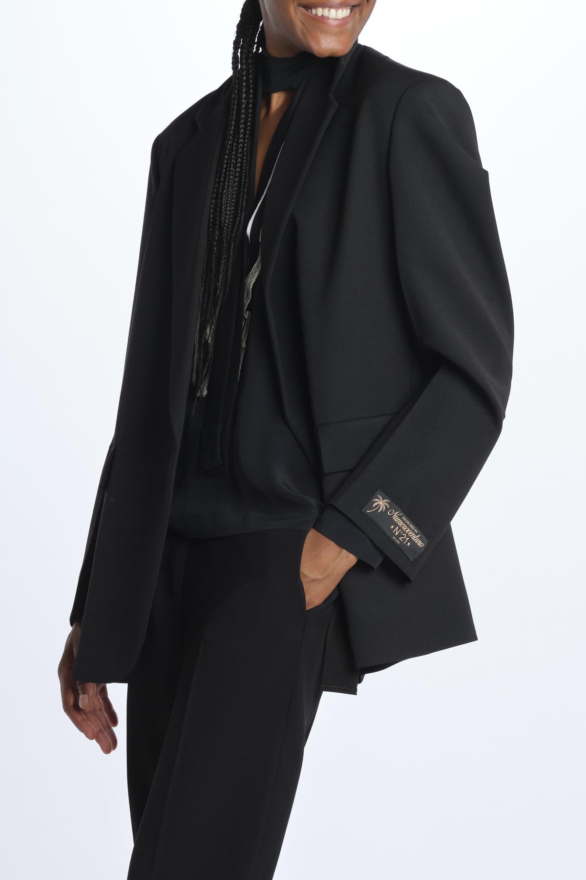 Oversized jacket by n21 single-breasted. The model is 174 cm tall and wears a 38. Composition: 53% polyester, 43% wool, 4% elastane.