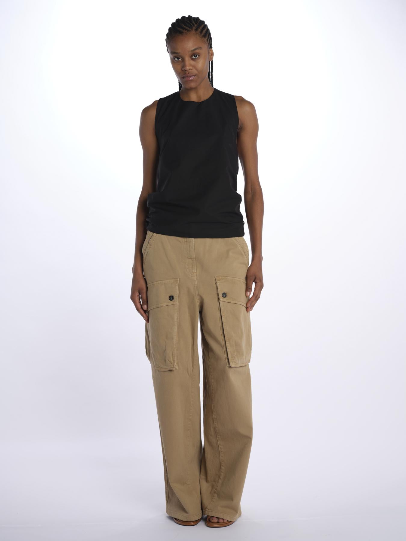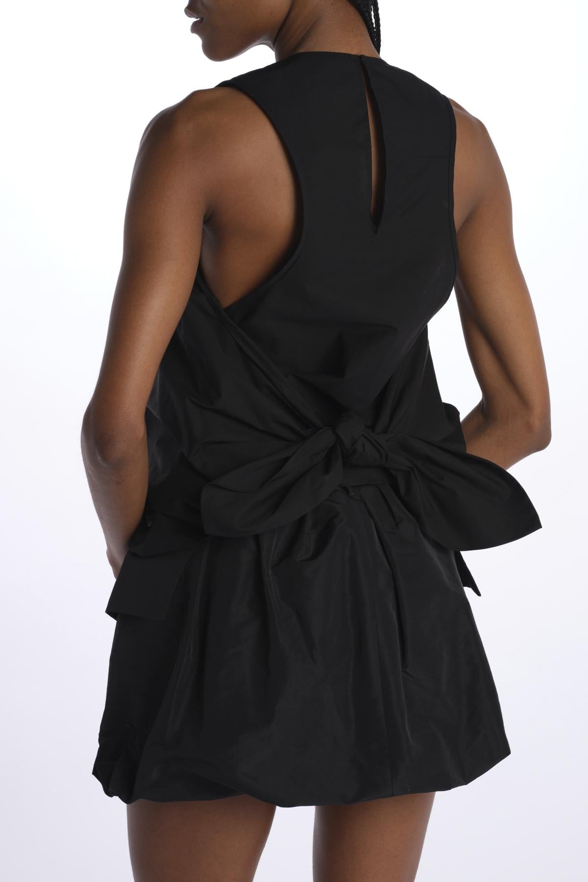 Black poplin top with knot by N21. The model is 174 cm tall and wears a size S. Composition: 100% cotton.