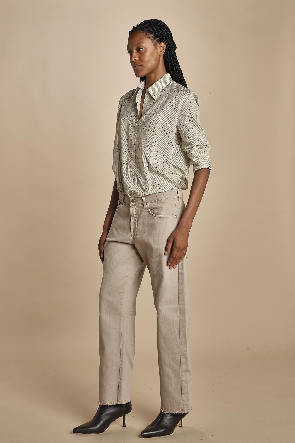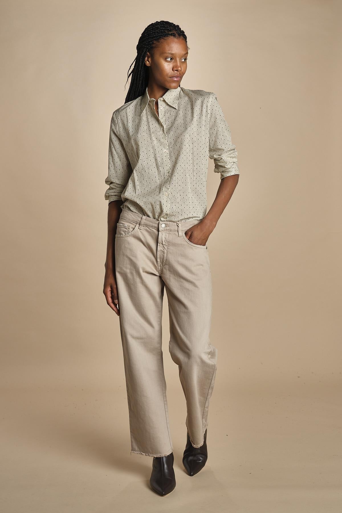 denim cinque tasche by massimo alba. La modella è alta 174 cm e indossa una taglia S. Composizione: 98%cotone, 2%elastan.