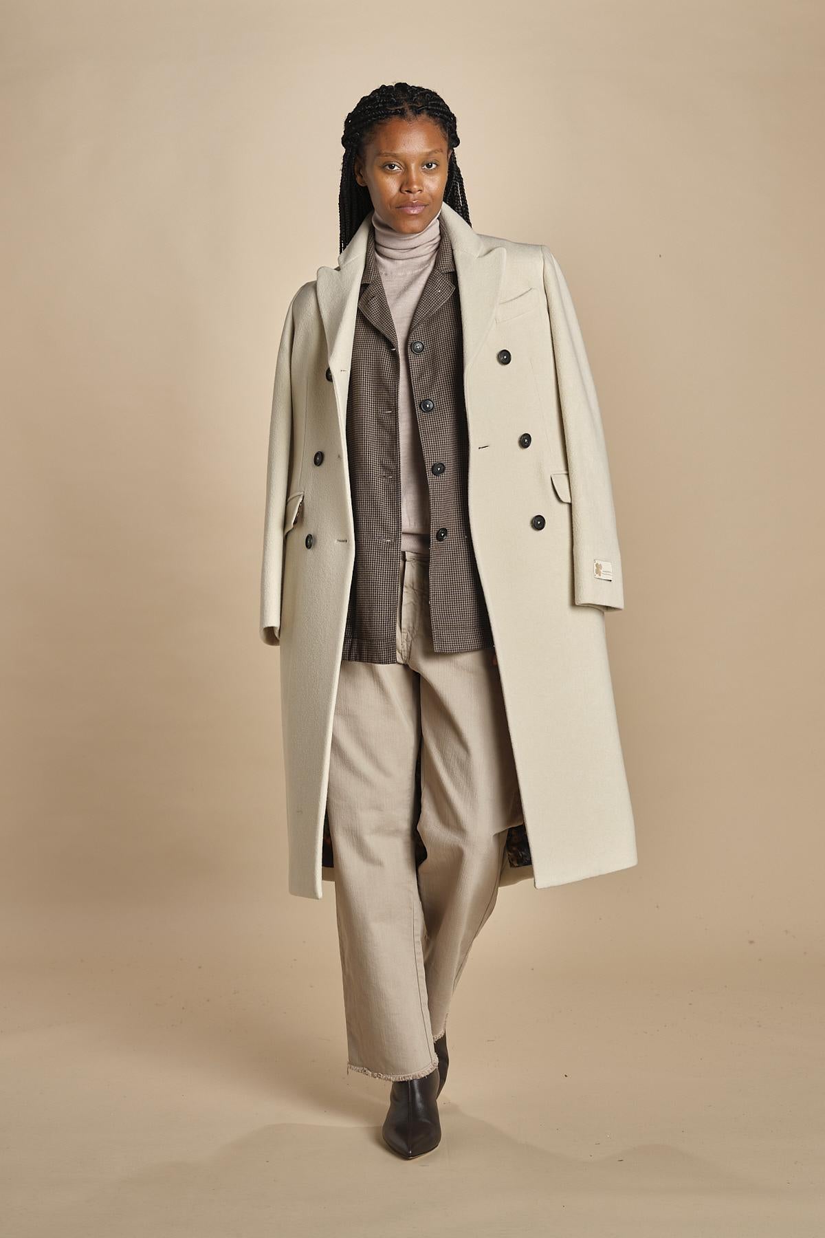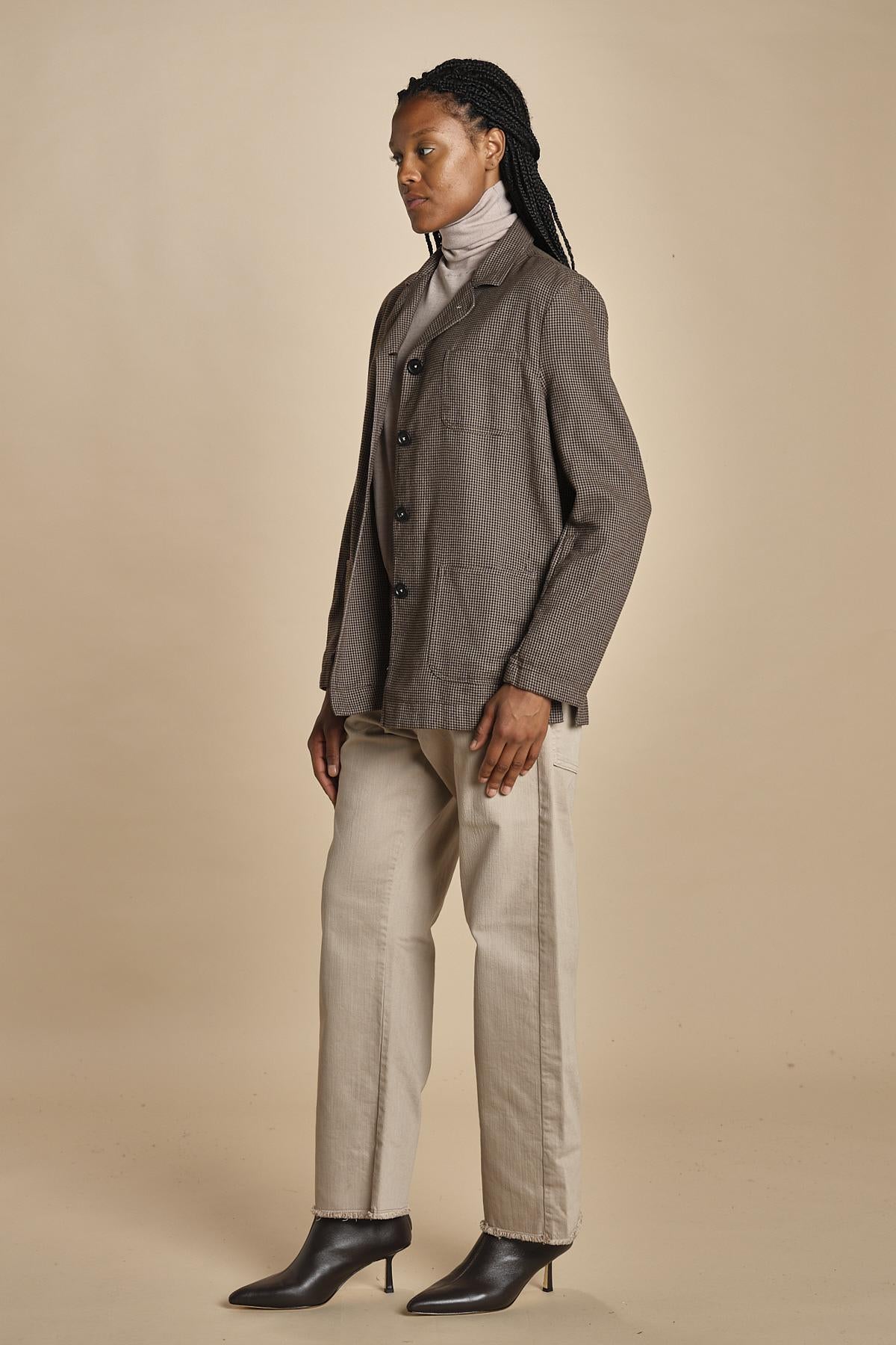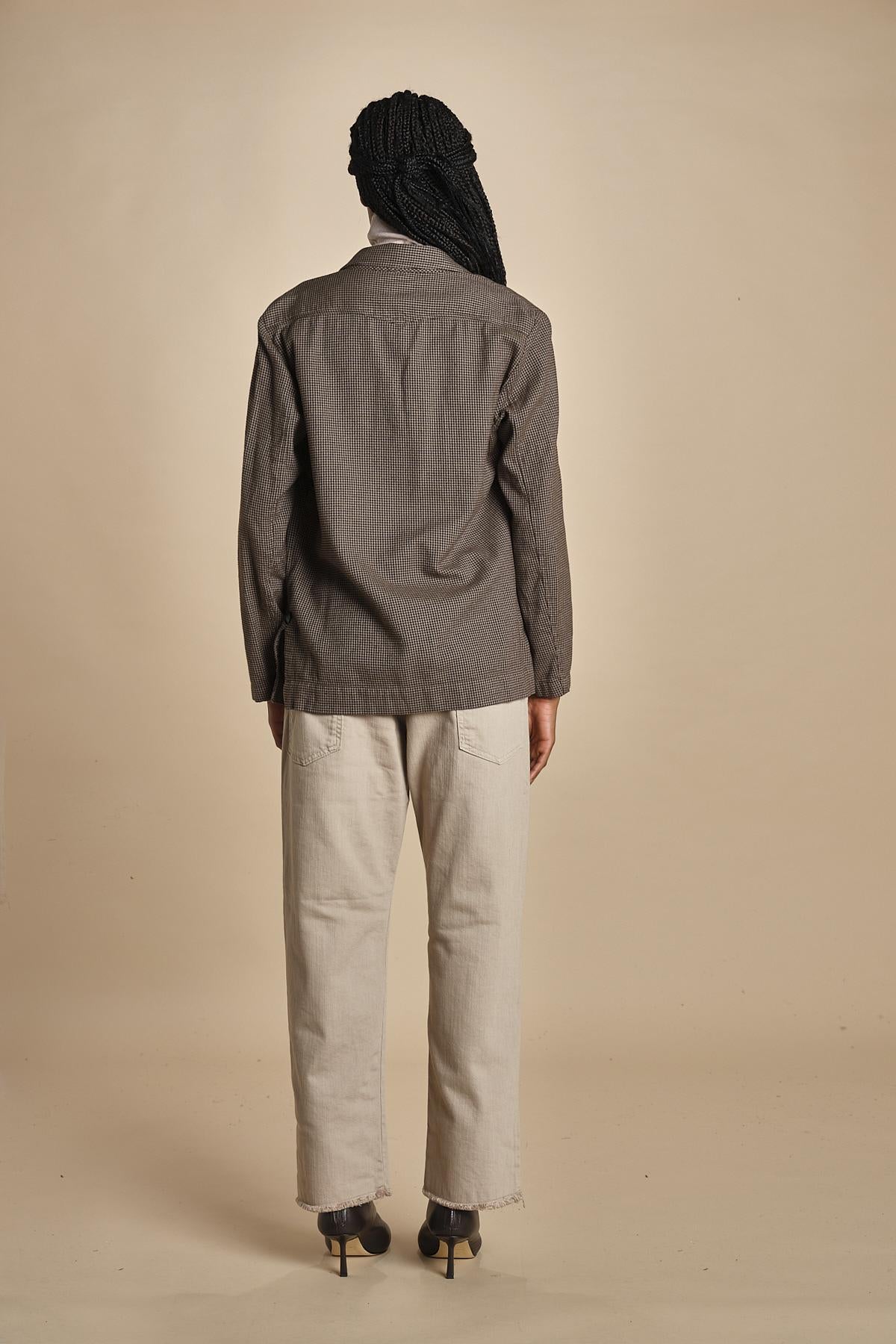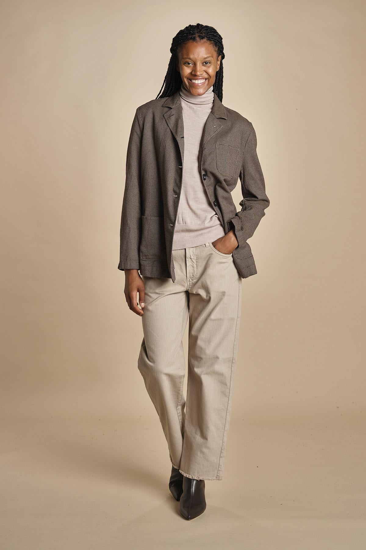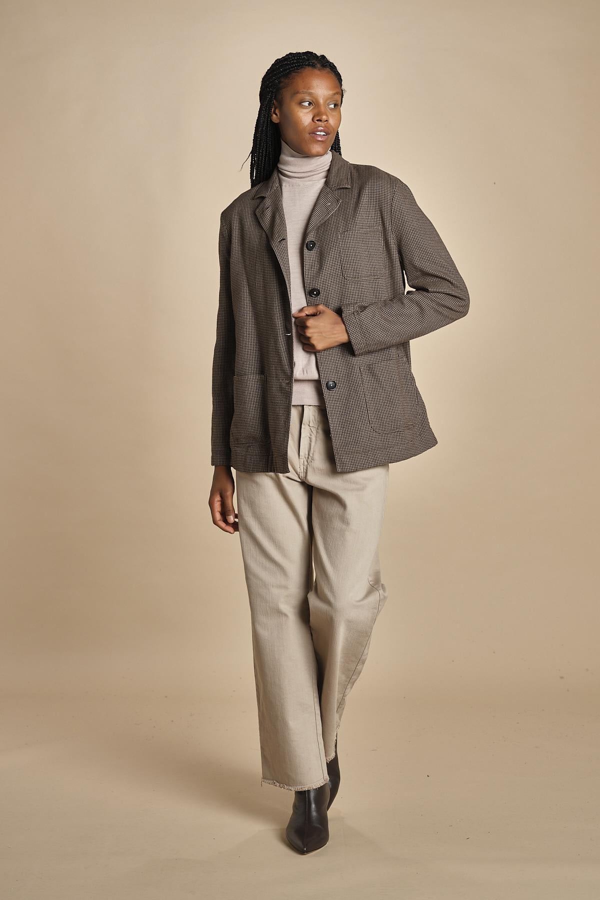 Giacca over in cachemire a quadretti by massimo alba. La modella è alta 174 cm e indossa una taglia S. Composizione: 100% cotone.
