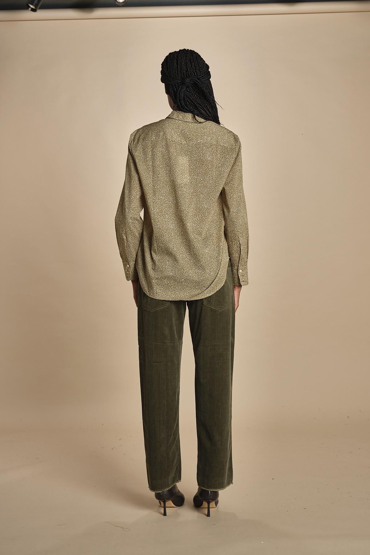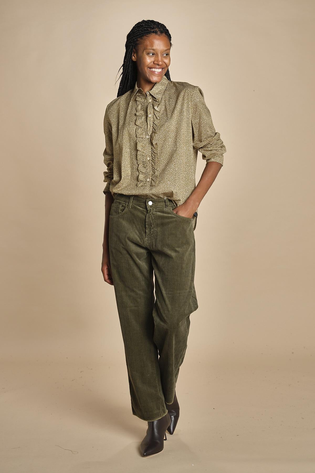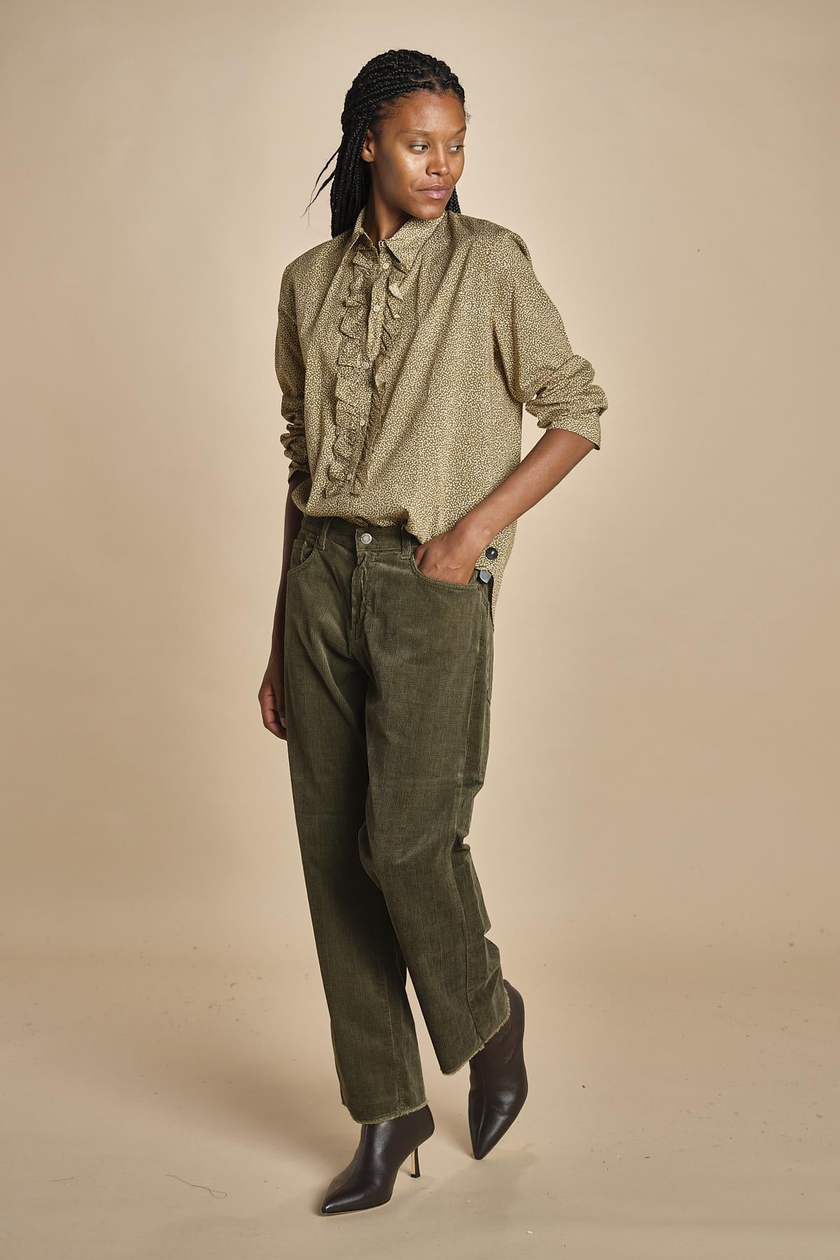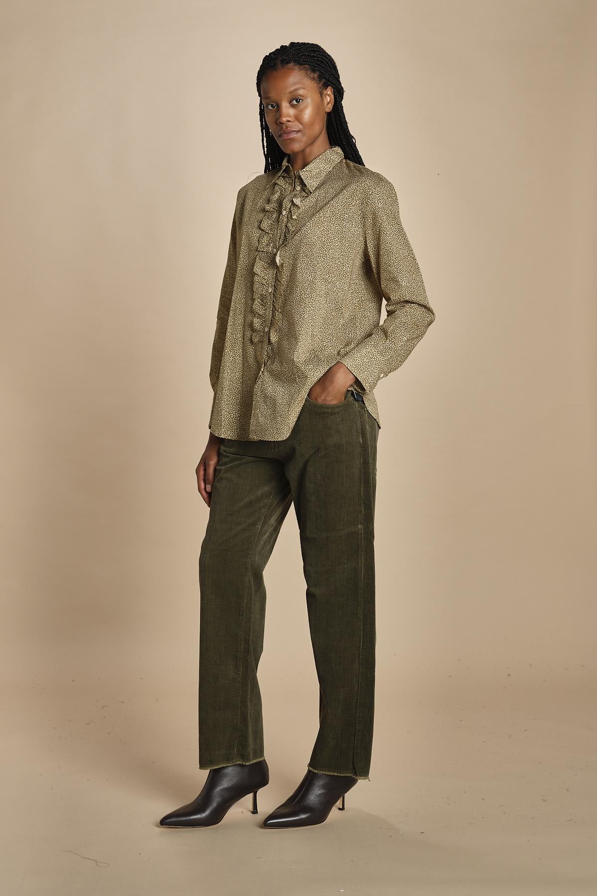 Camicia con rouches e micropois by massimo alba. La modella è alta 174 cm e indossa una taglia S. Composizione: 100% cotone.