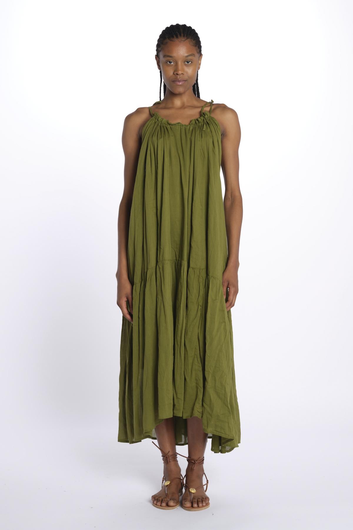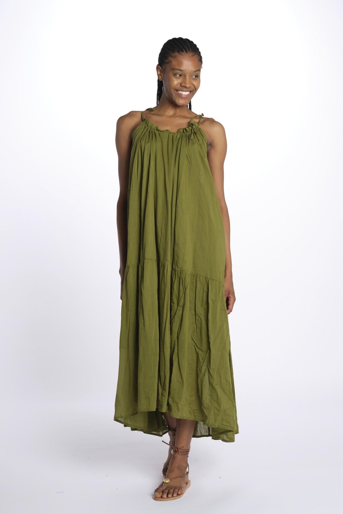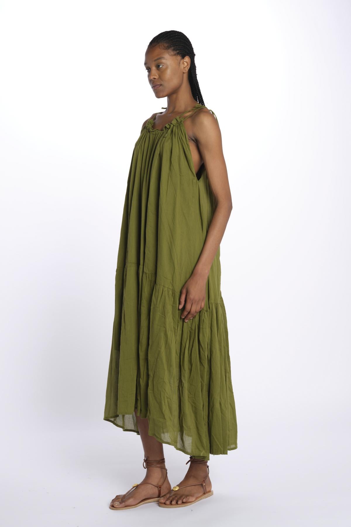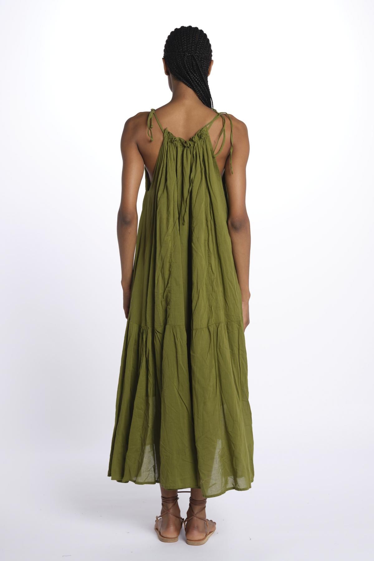 PALOMA abito lungo con balze e spalline sottili PALOM BASILIC laraethnics