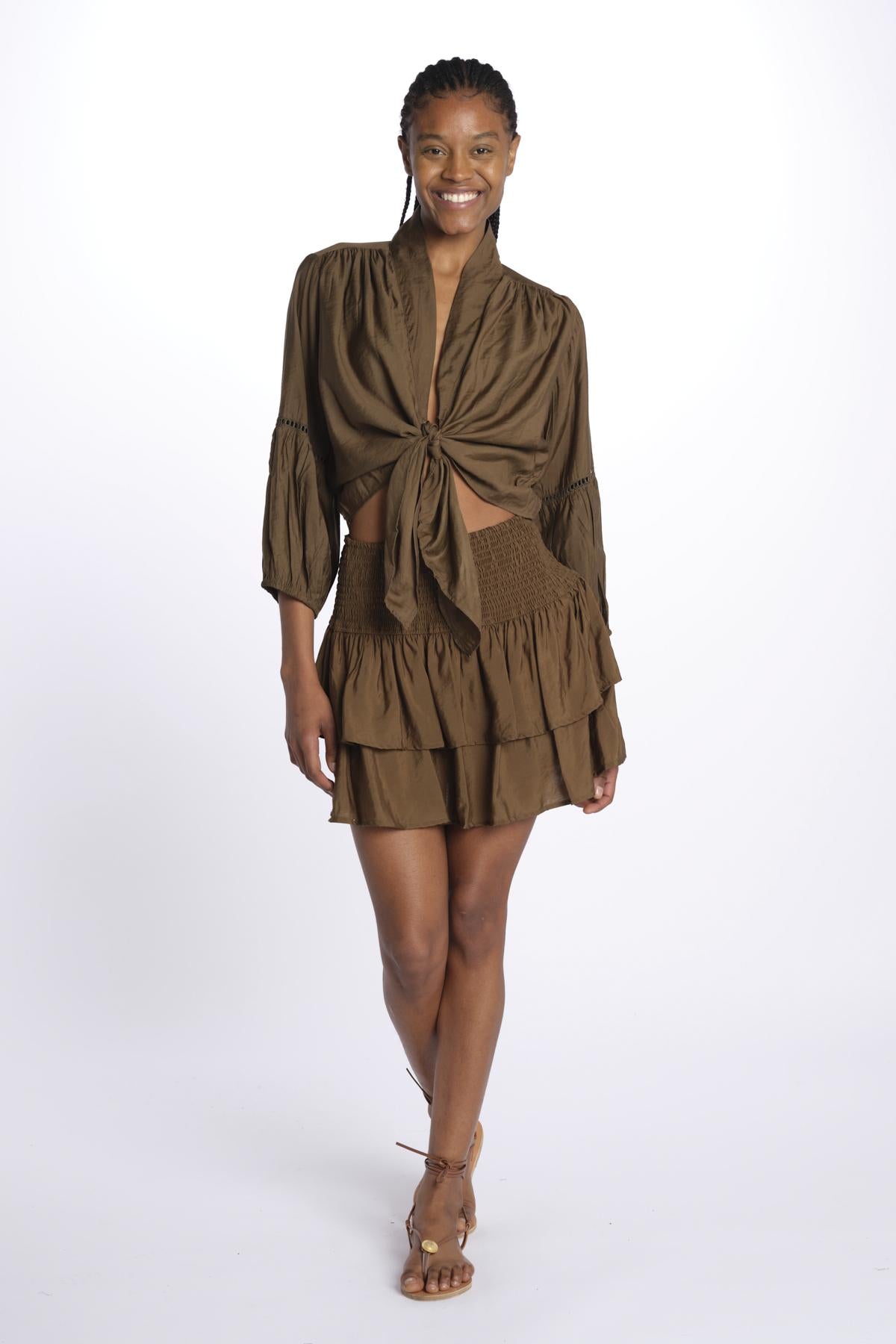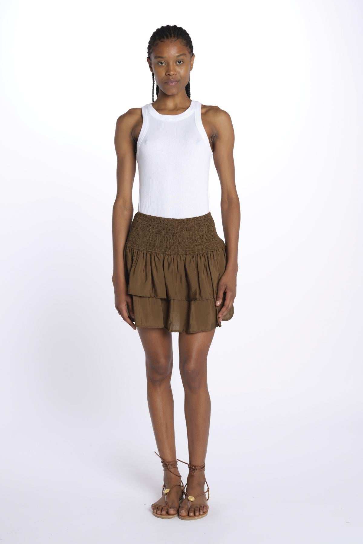 PANOLI flounce miniskirt by laraethnics. The model is 174 cm tall and wears a ONE size. Composition: 82% viscose, 18% nylon.